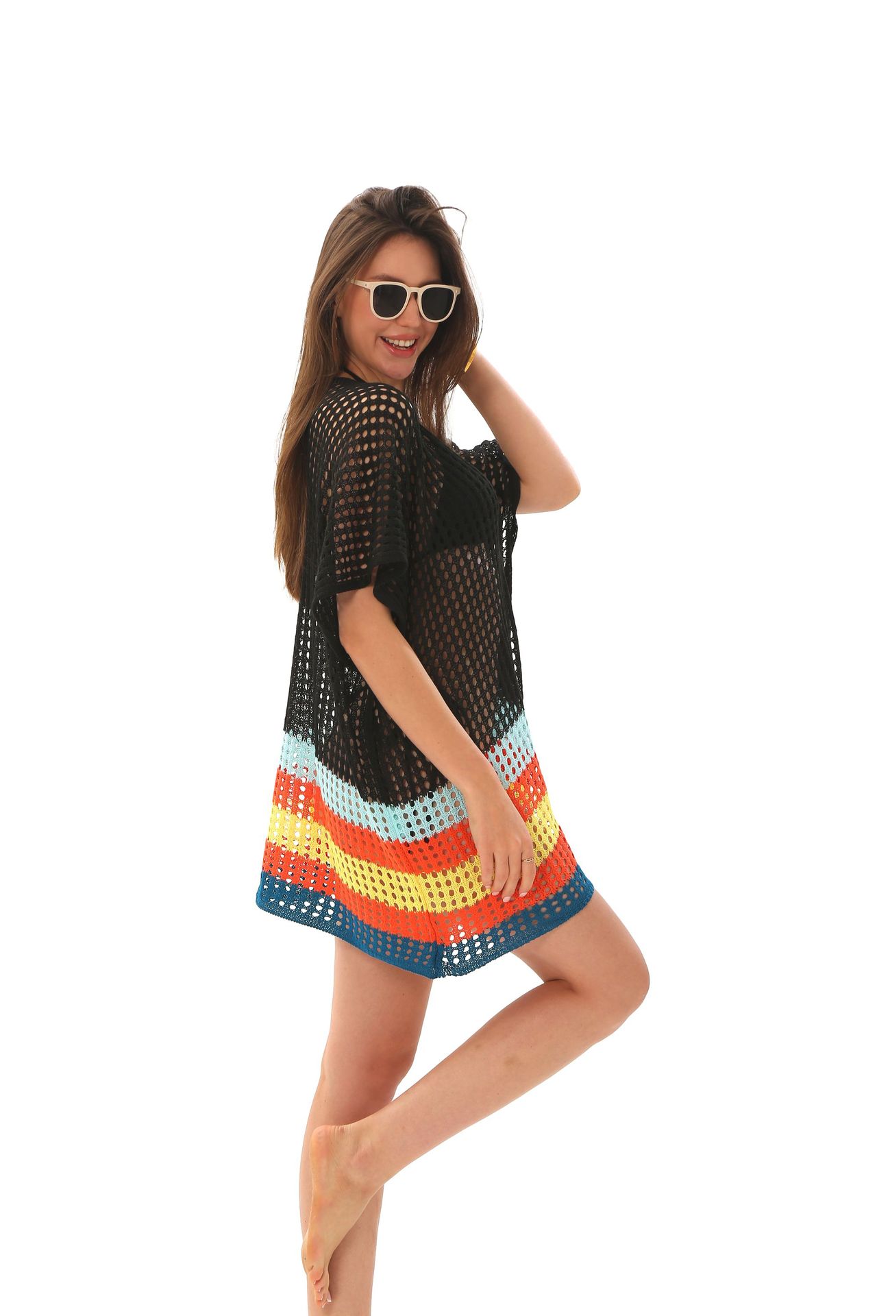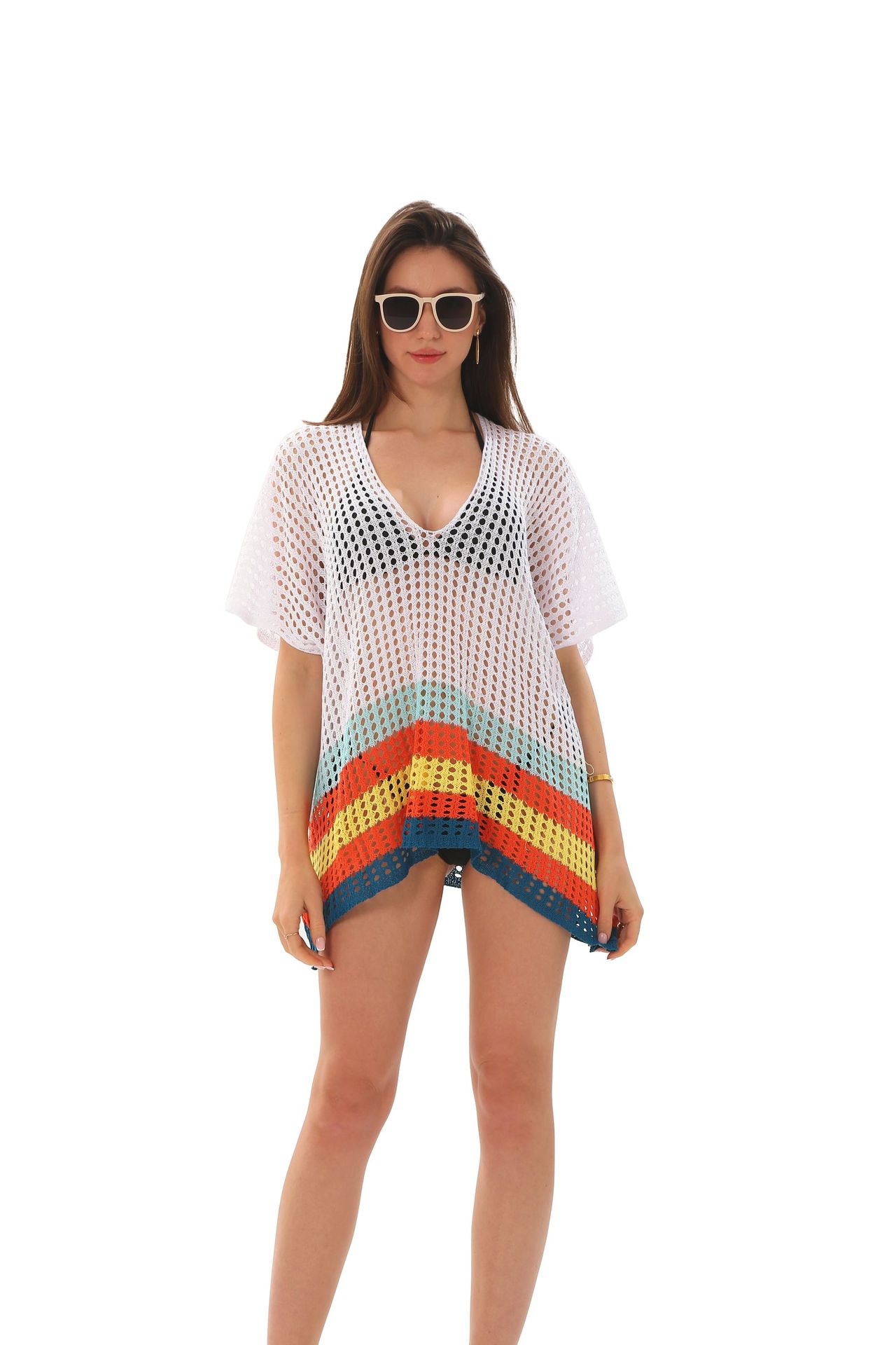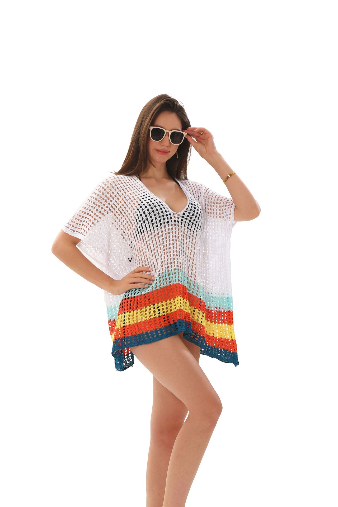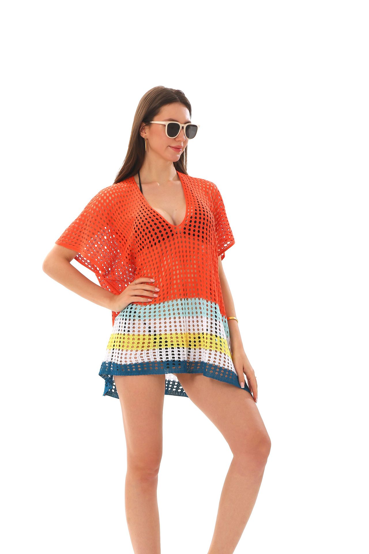 새로운 비치 블라우스 바닥 줄무늬 니트 자외선 차단제 블라우스 유럽과 미국의 섹시한 비키니 블라우스 국경 도매스토어 가기