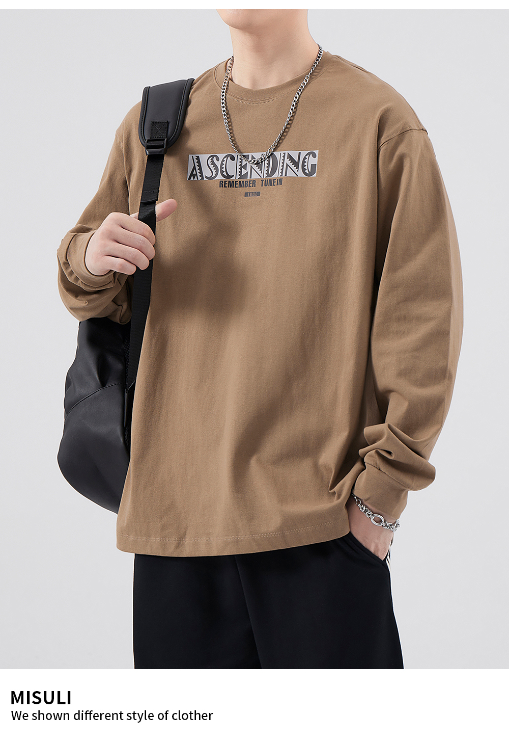 미국 무거운 긴팔 티셔츠 남자 봄과 가을 2024 새로운 패션 브랜드 십대 내베이스 셔츠 남자스토어 가기