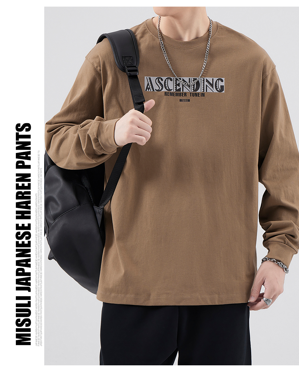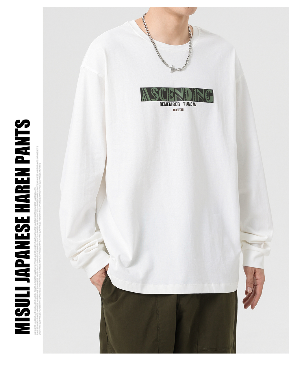 미국 무거운 긴팔 티셔츠 남자 봄과 가을 2024 새로운 패션 브랜드 십대 내베이스 셔츠 남자