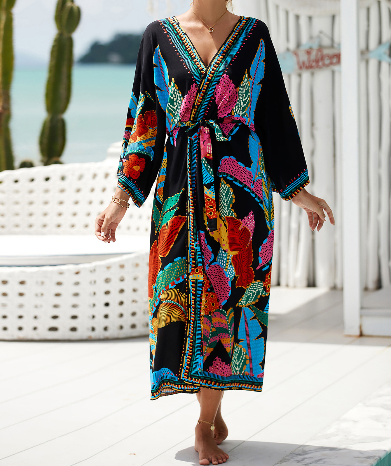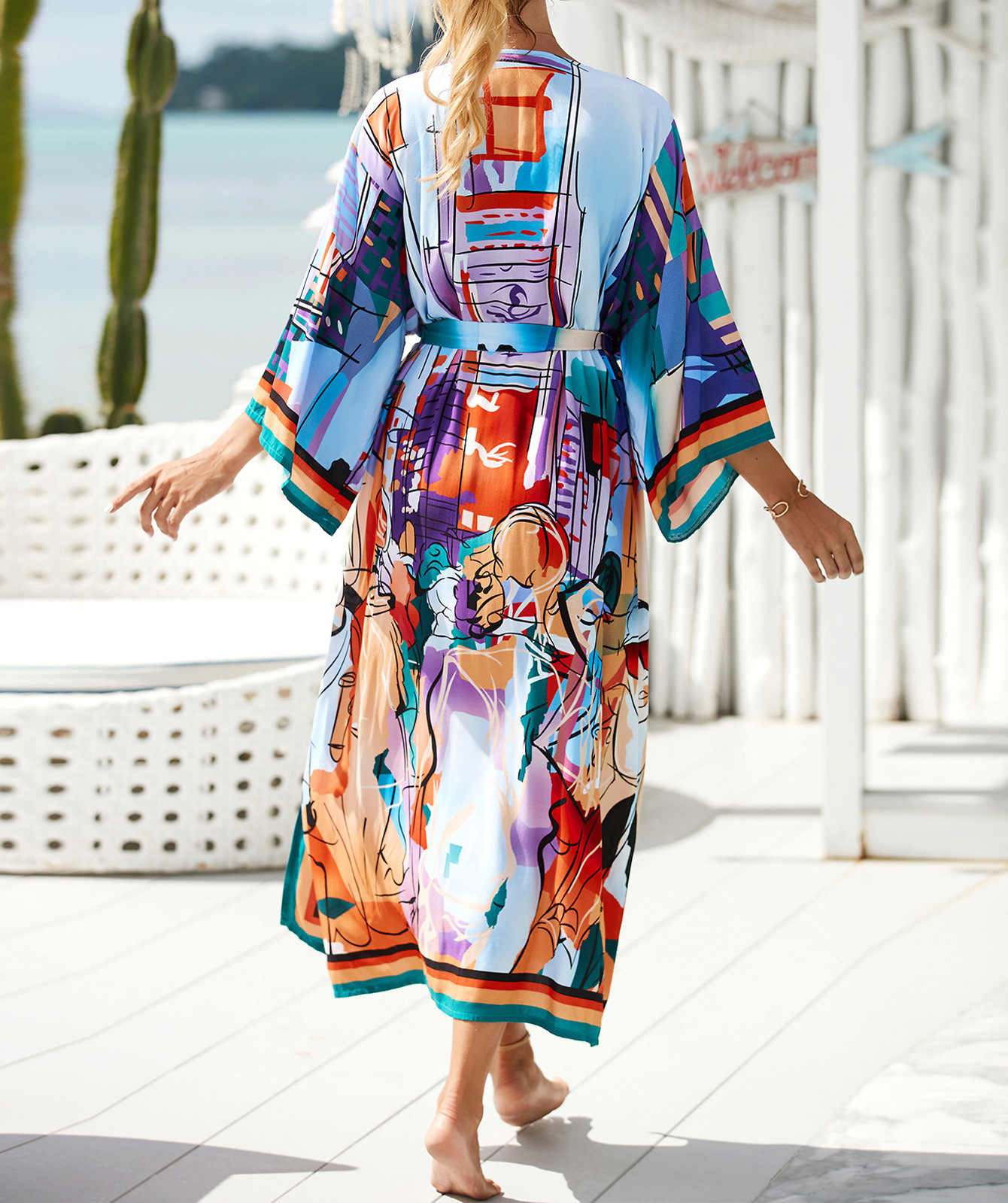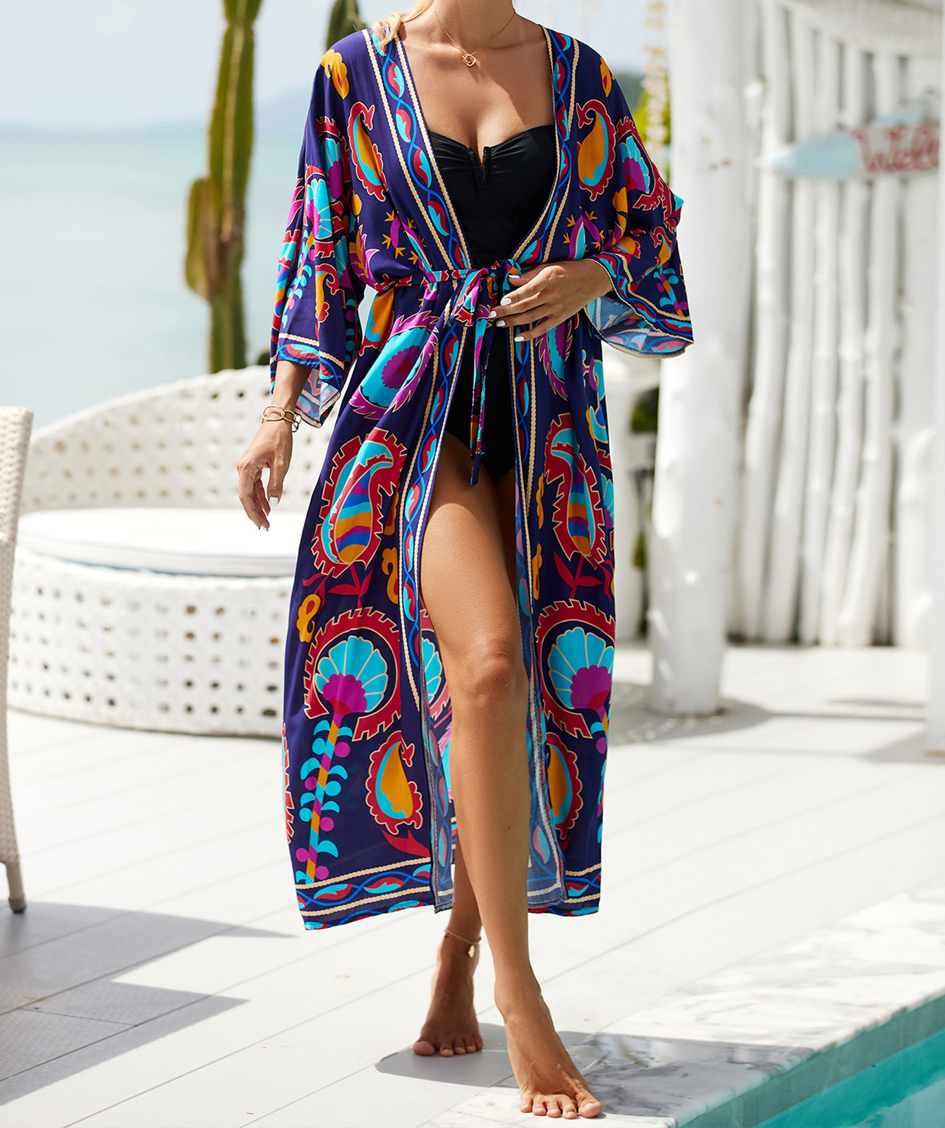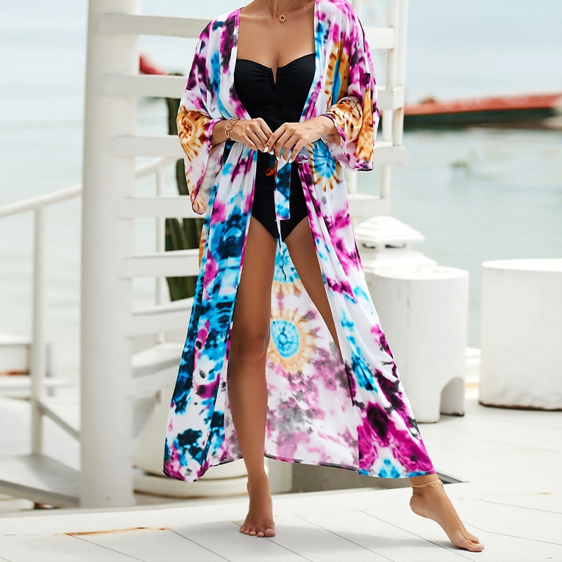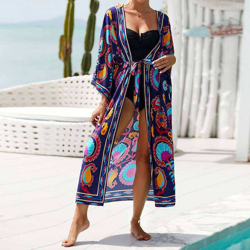 비치 블라우스 레이온 포지셔닝 카디건 휴일 자외선 차단제 국경 아마존 원피스 프린트
