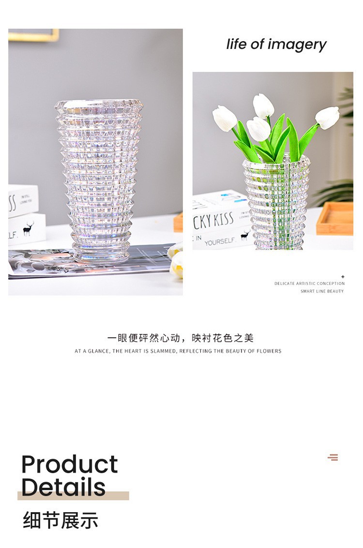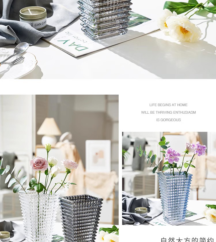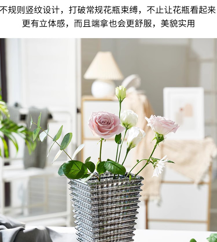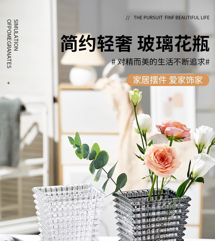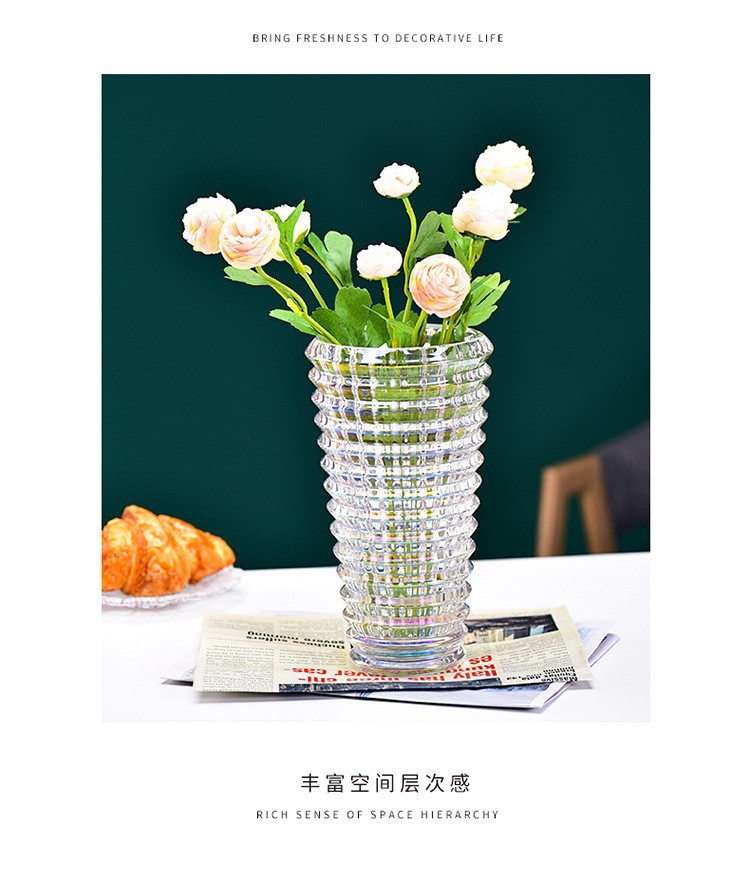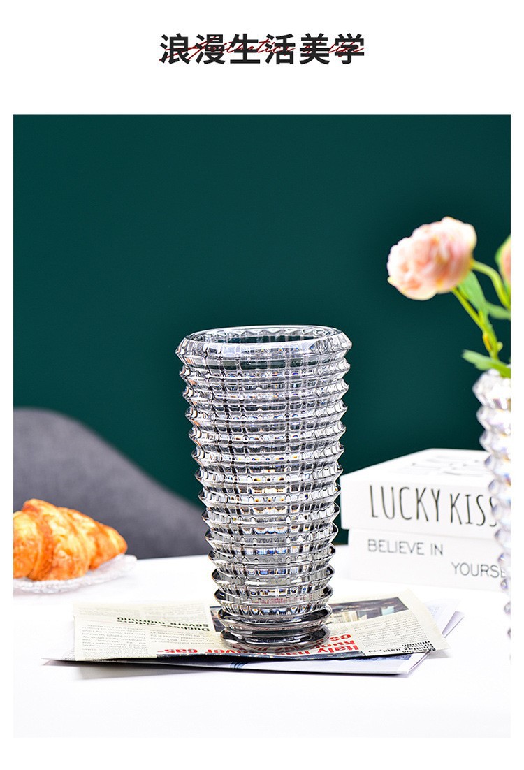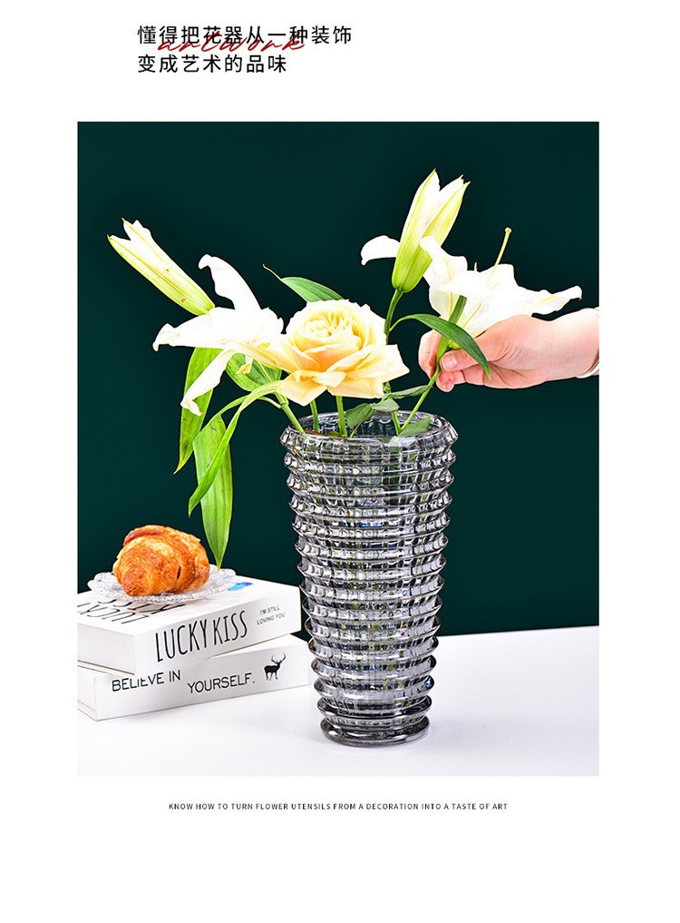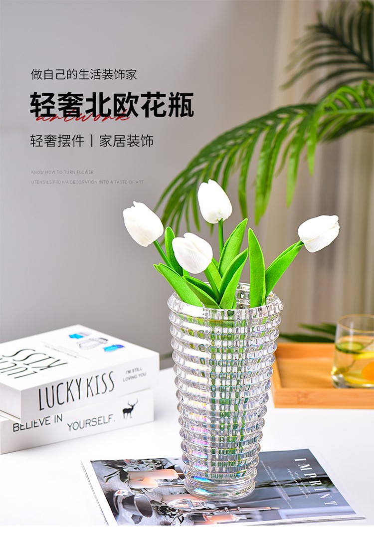 가벼운 고급 꽃병 장식품, 유리 투명, 고급 수경 재배 꽃, 장미와 백합, 거실 스타일 꽃꽂이스토어 가기
