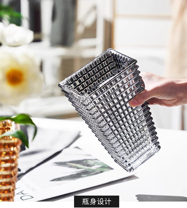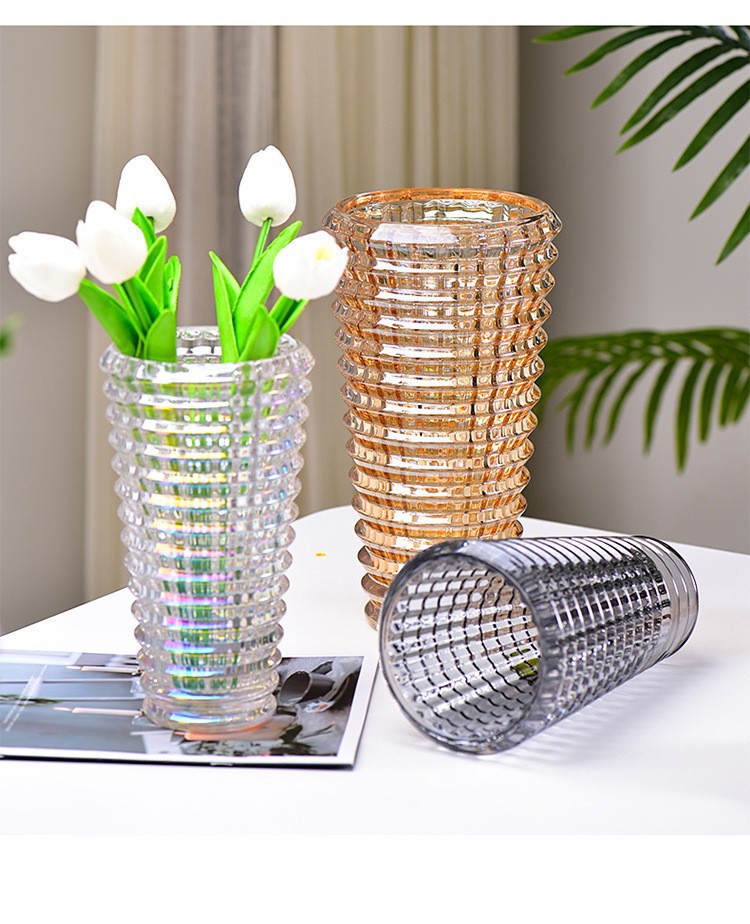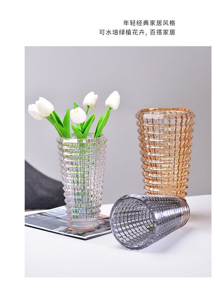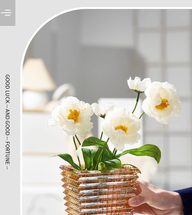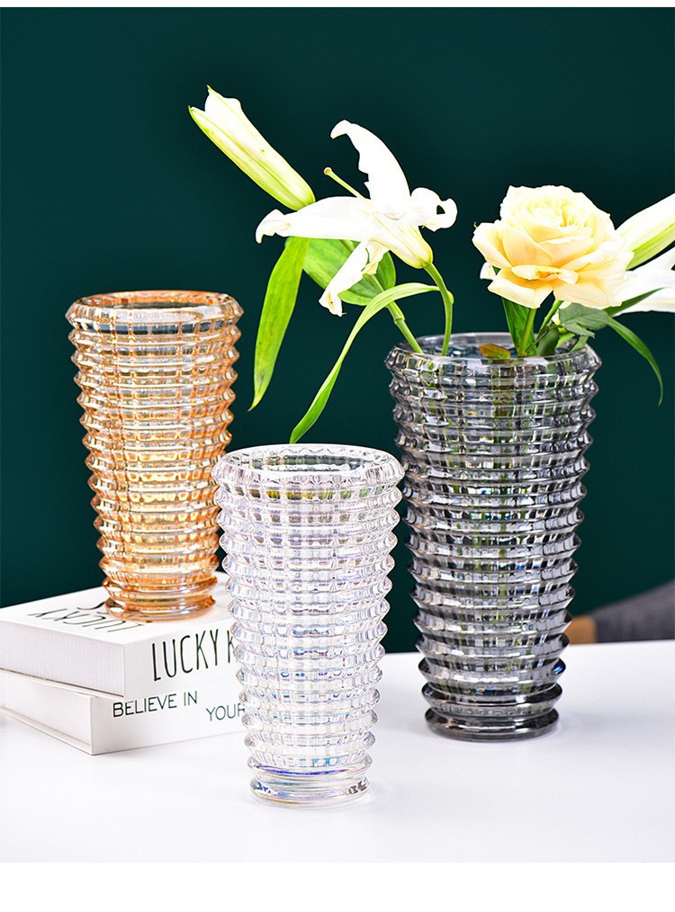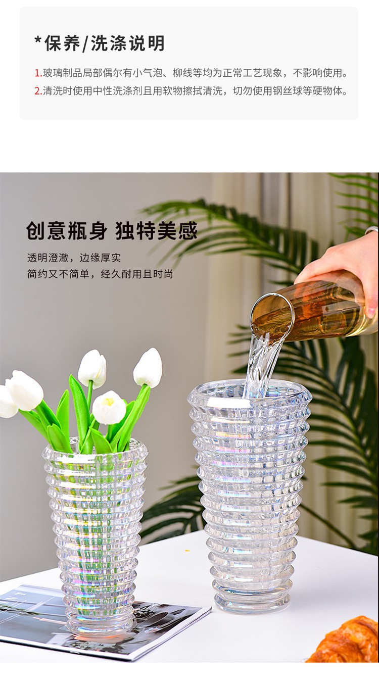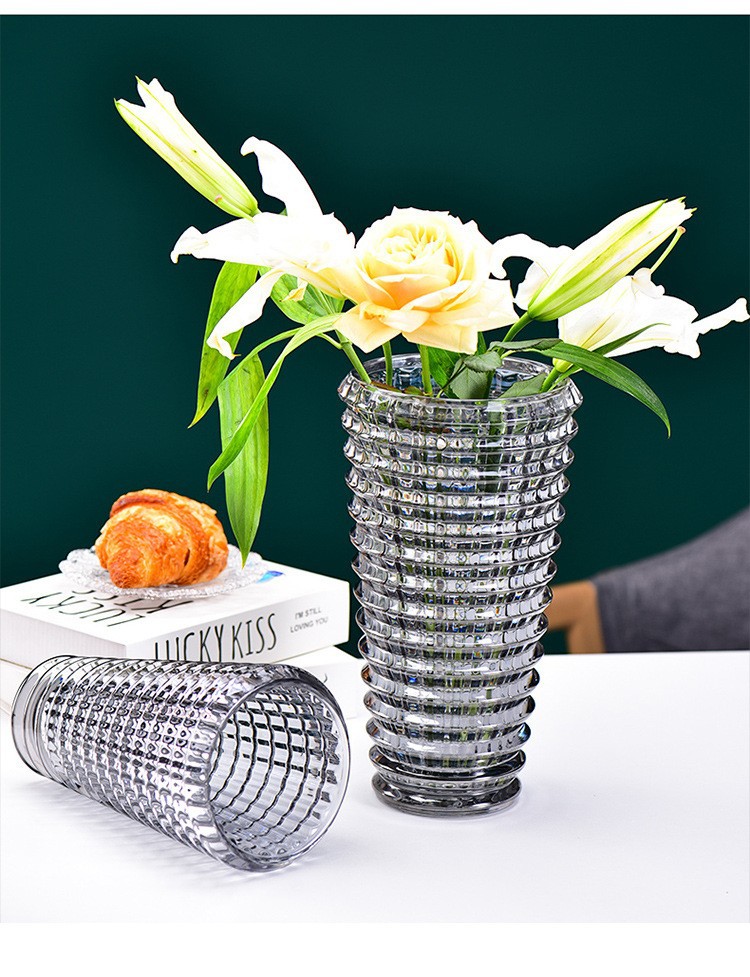 가벼운 고급 꽃병 장식품, 유리 투명, 고급 수경 재배 꽃, 장미와 백합, 거실 스타일 꽃꽂이스토어 가기