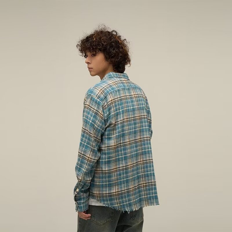 일본식 레트로 도시 소년 격자 무늬 긴팔 셔츠 남자의 봄과 가을의 트렌디 한 브랜드 통통한 잘 생긴 게으른 스타일 커플 셔츠스토어 가기
