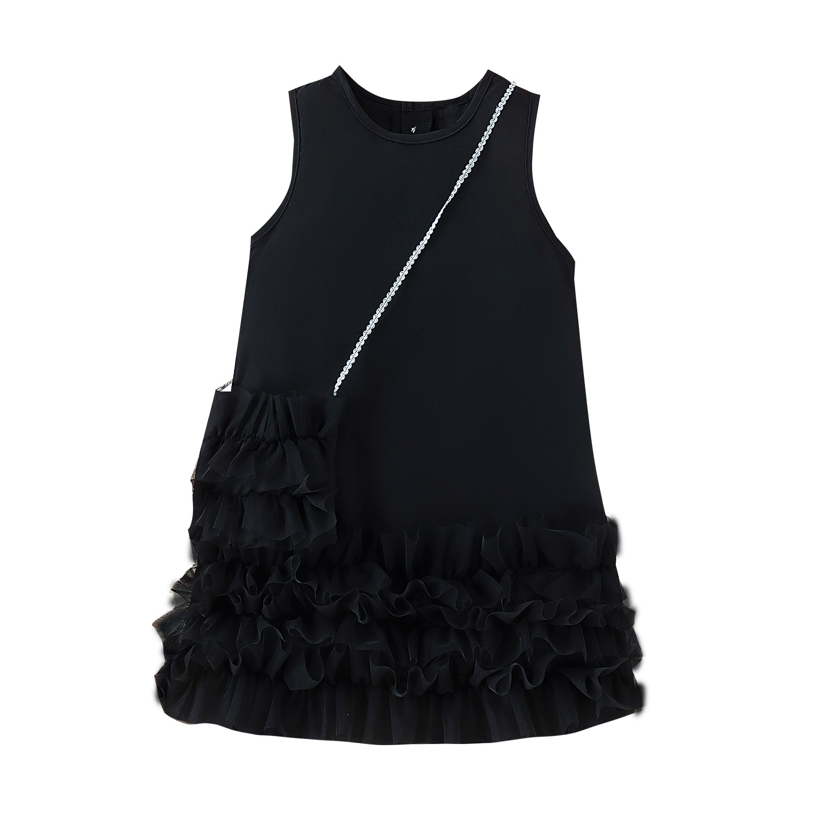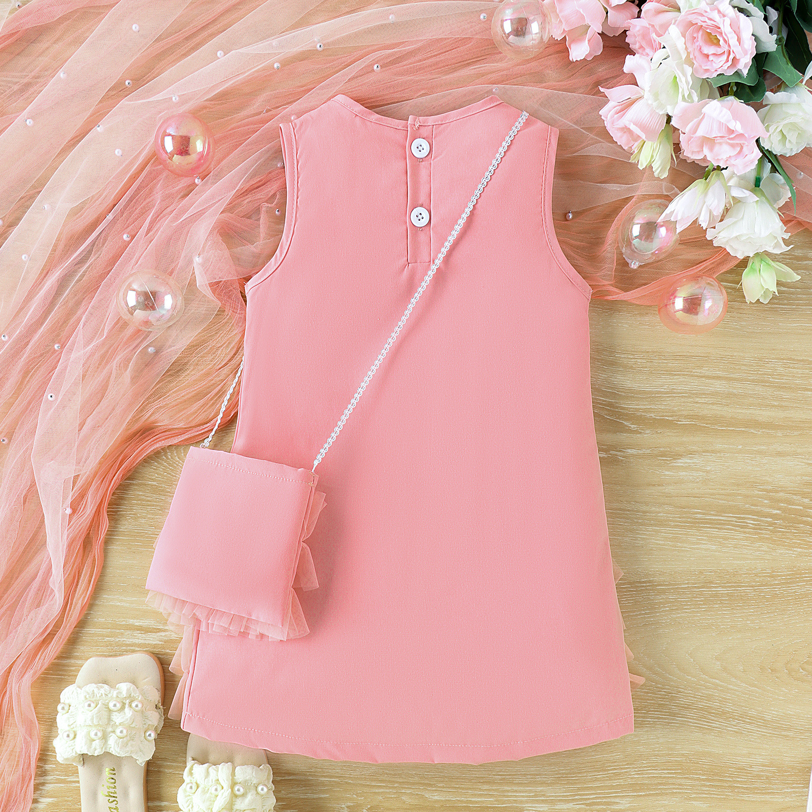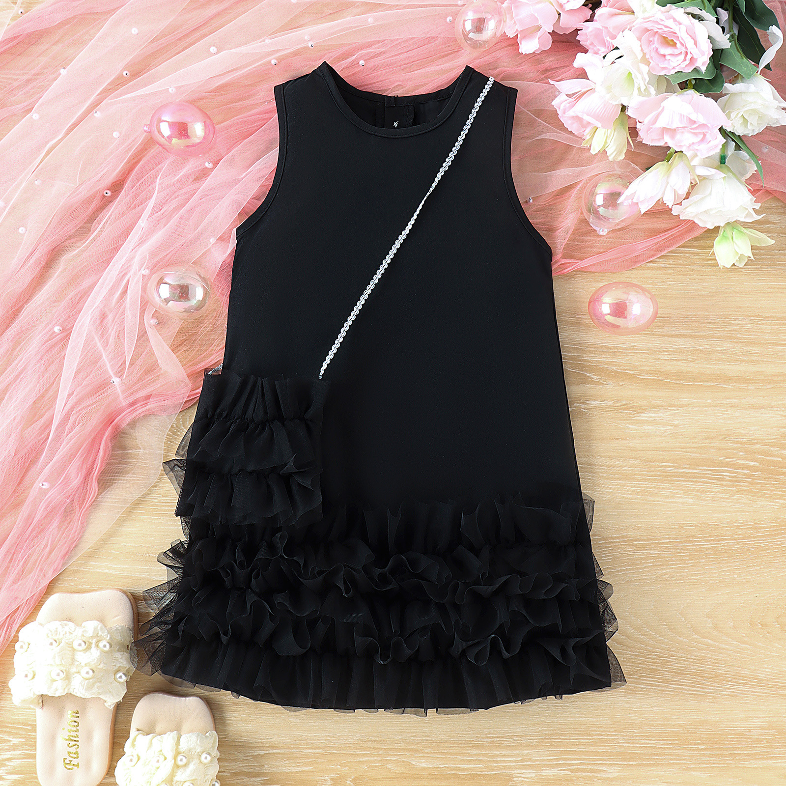 2024 여름 새로운 트렌디 아동복 국경 중소 어린이 소녀 민소매 메쉬 케이크 원피스 가방