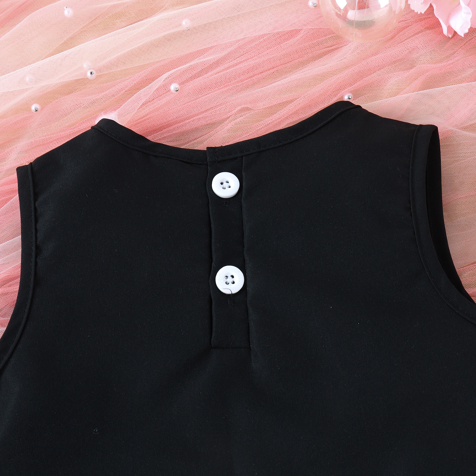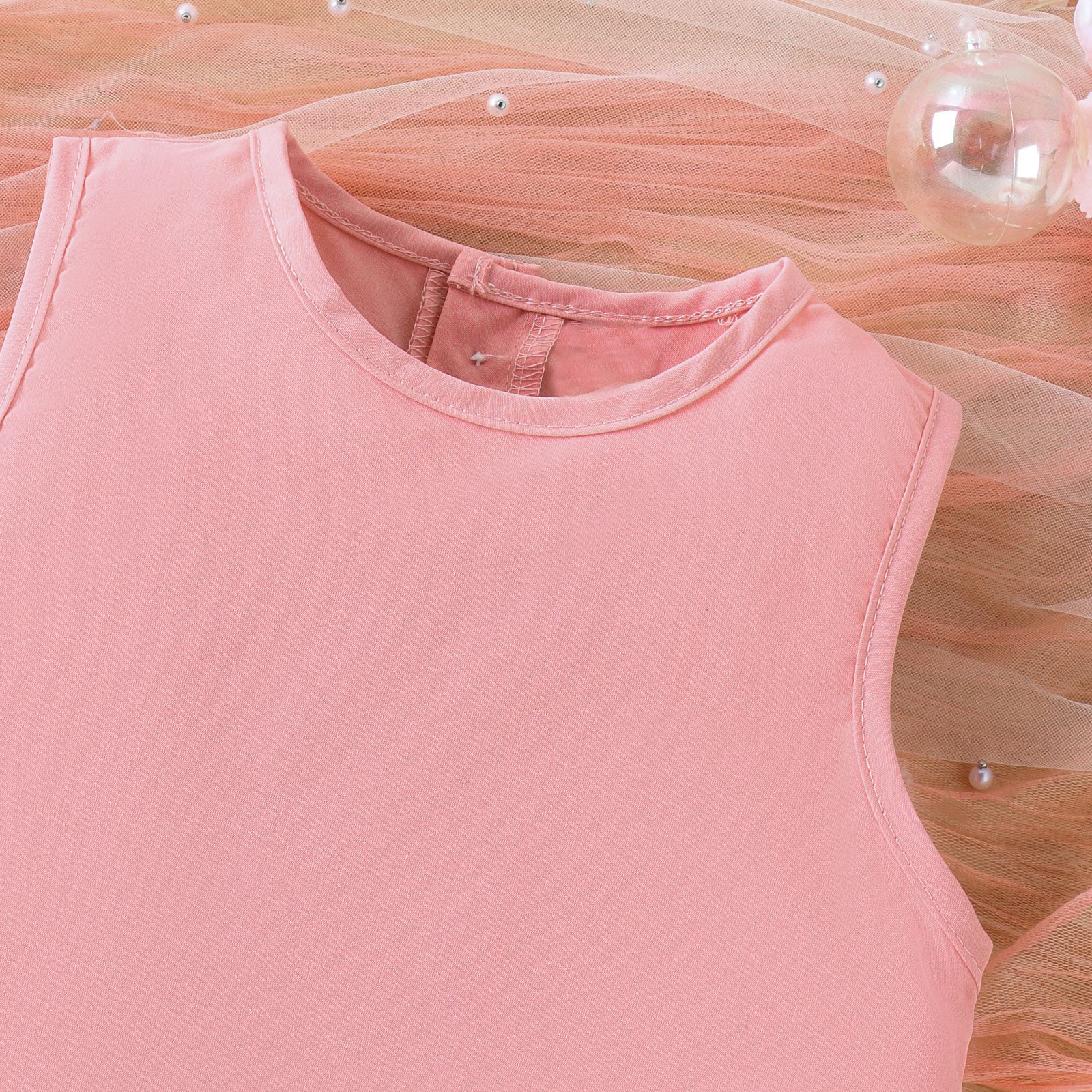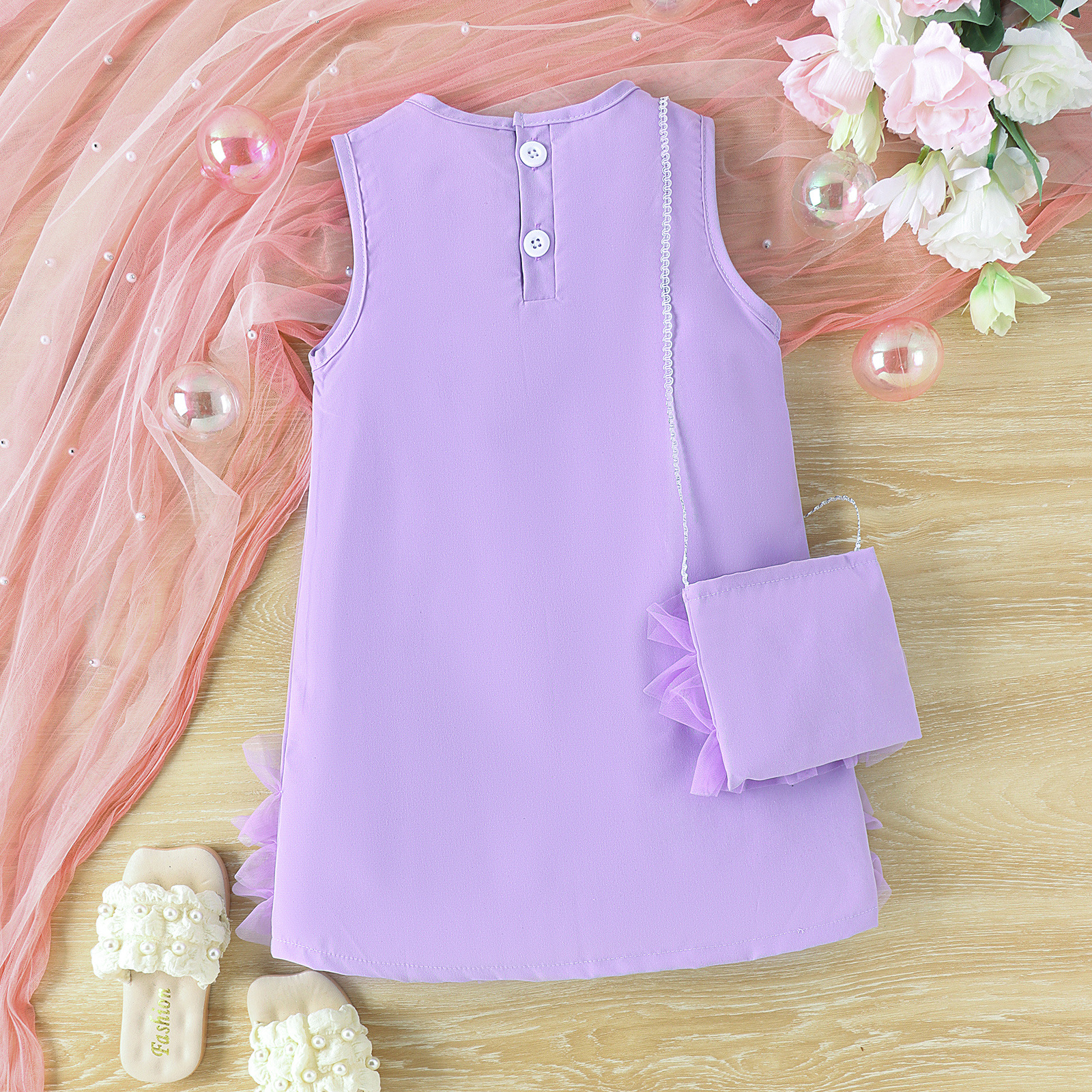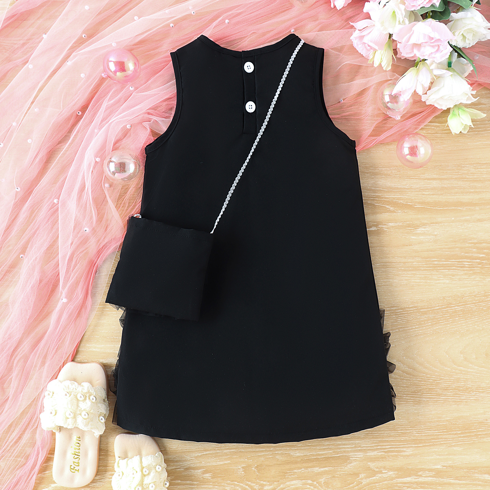 2024 여름 새로운 트렌디 아동복 국경 중소 어린이 소녀 민소매 메쉬 케이크 원피스 가방