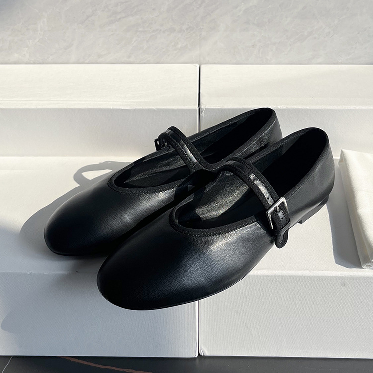 정품 가죽 레트로 얕은 플랫 버클 벨트 메리 제인 신발 여성 봄과 여름 캐주얼 발레 신발 밀크 신발스토어 가기