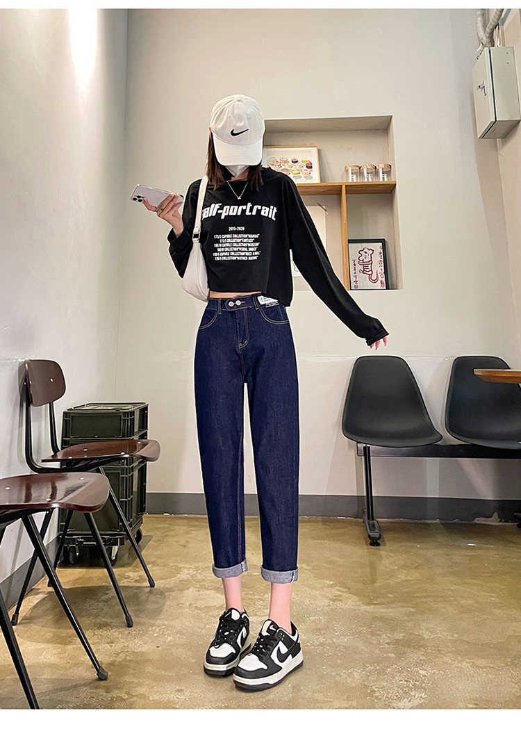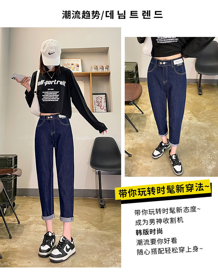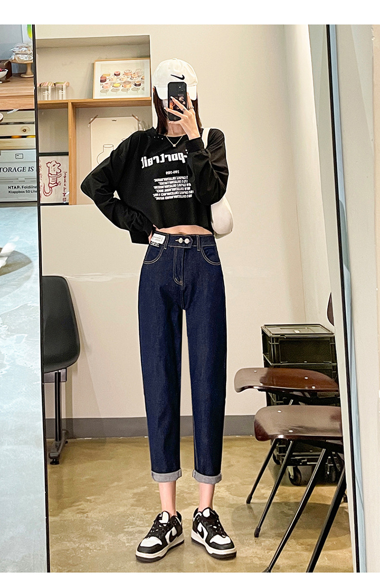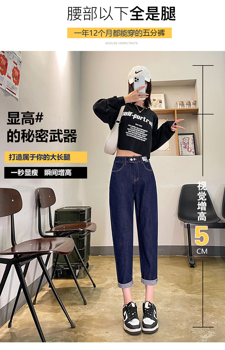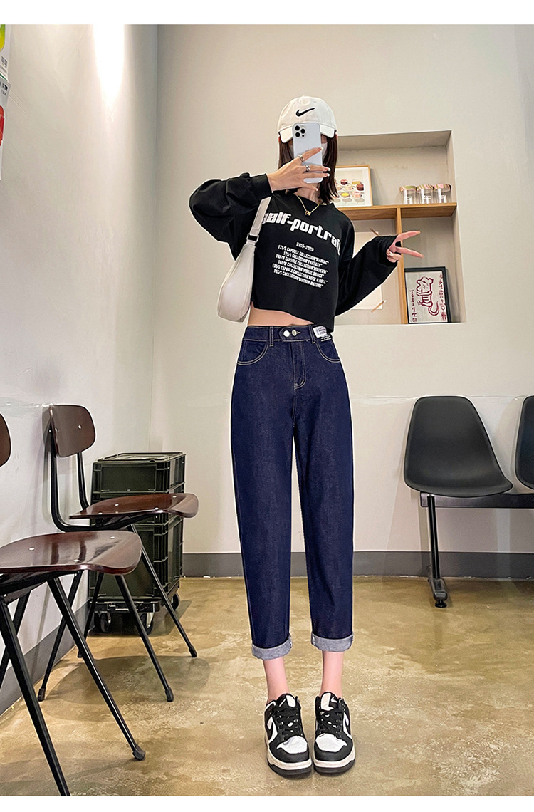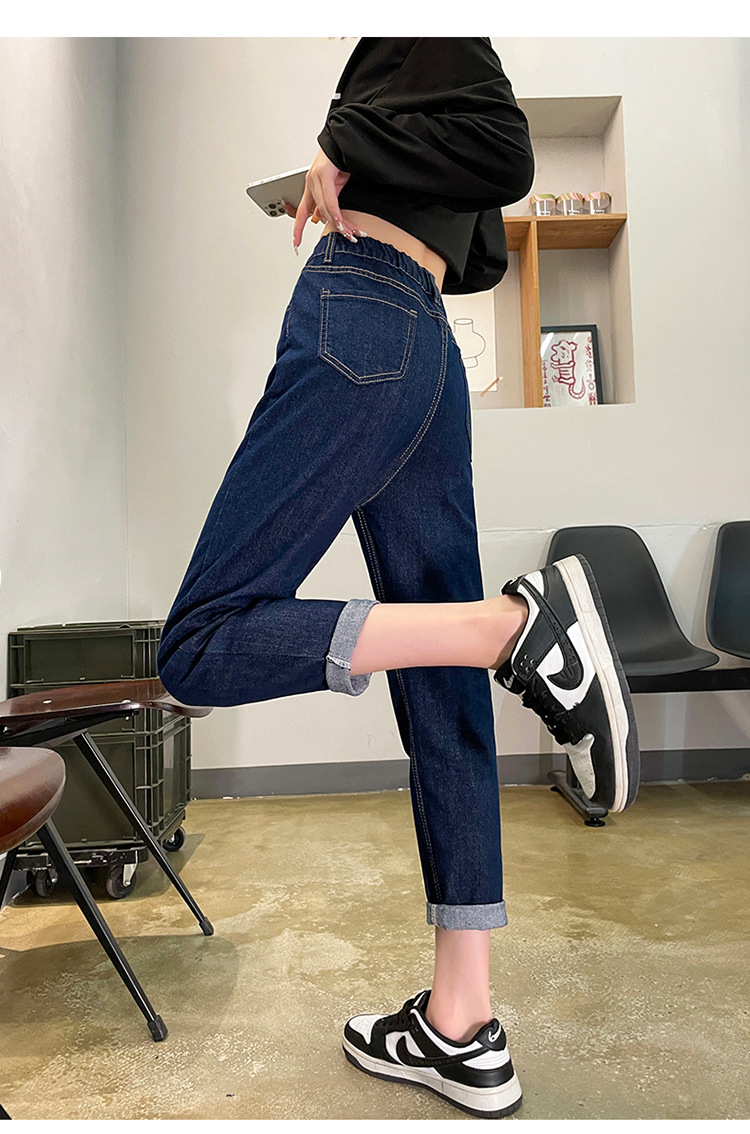 2024 여름 스트레치 작은 남자 새로운 높은 허리 청바지 여성의 탄성 허리 자른 하렘 바지 스트레이트 다리 바지스토어 가기