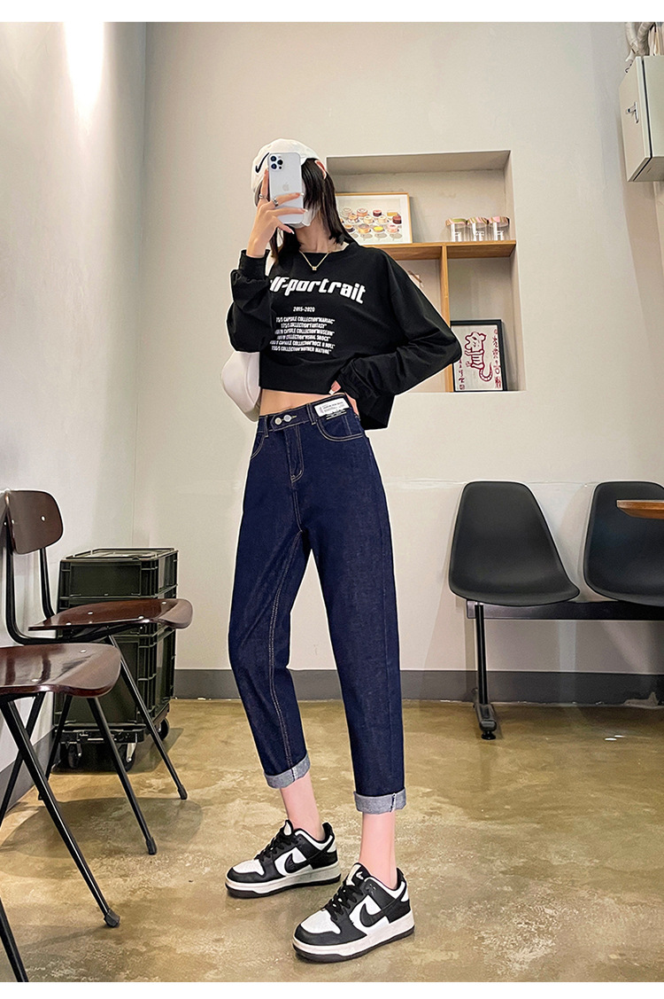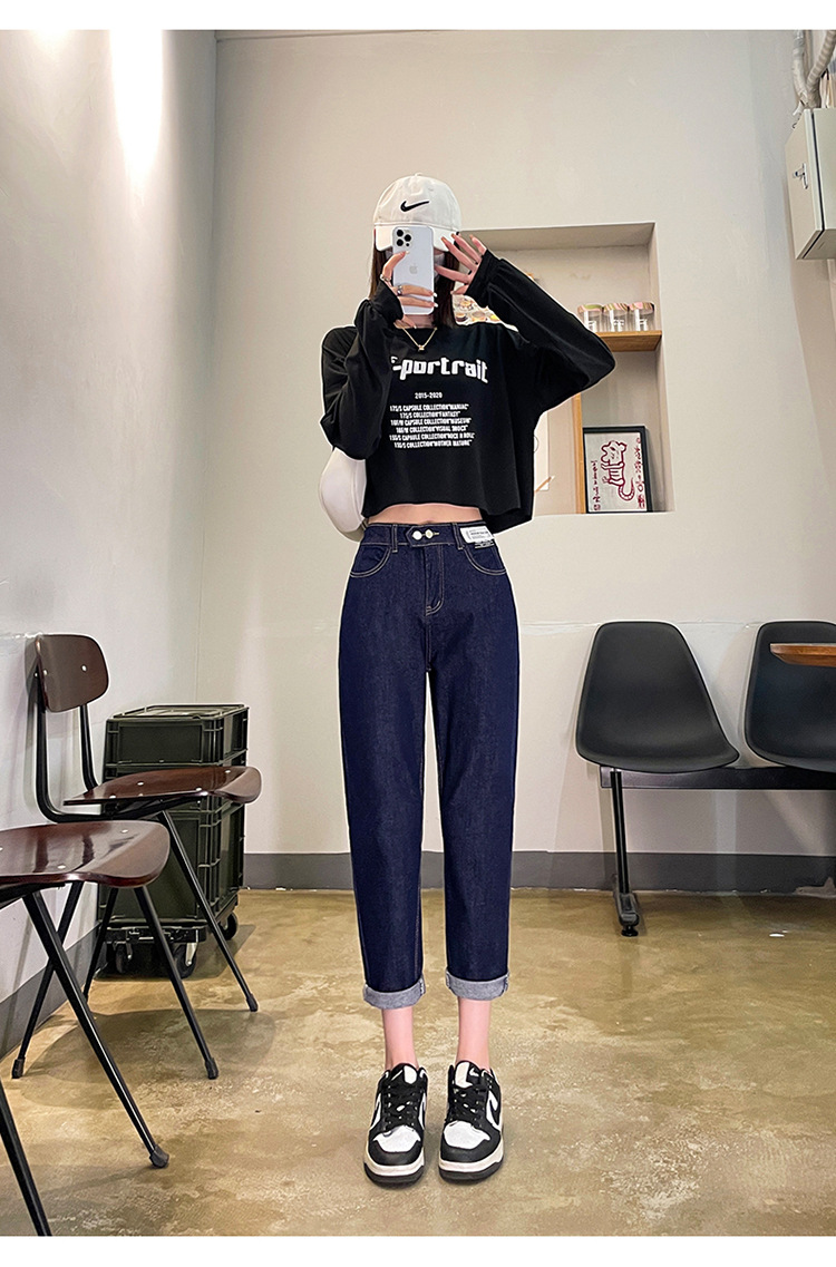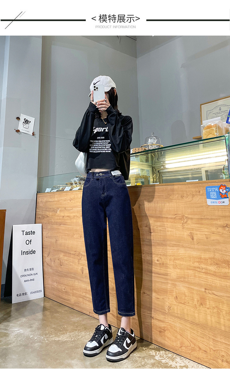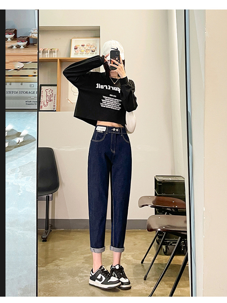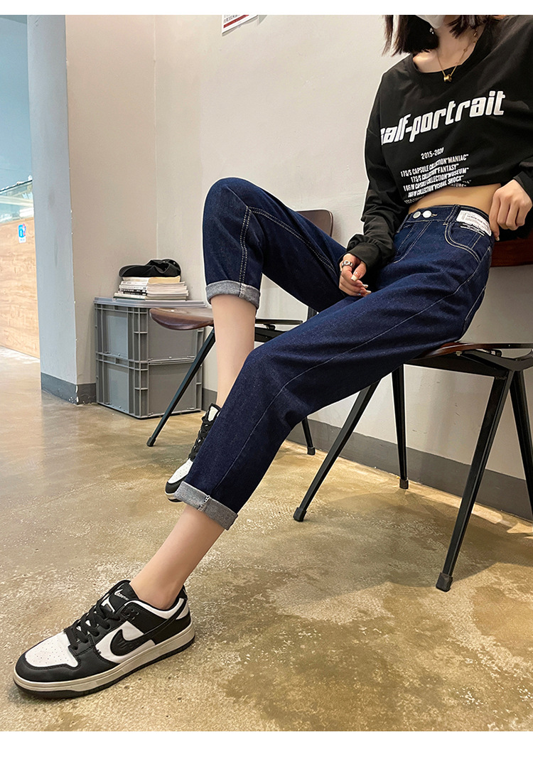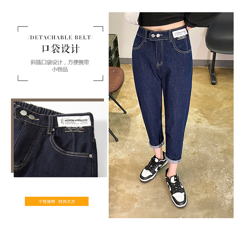 2024 여름 스트레치 작은 남자 새로운 높은 허리 청바지 여성의 탄성 허리 자른 하렘 바지 스트레이트 다리 바지스토어 가기