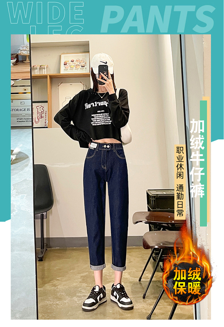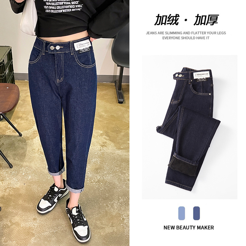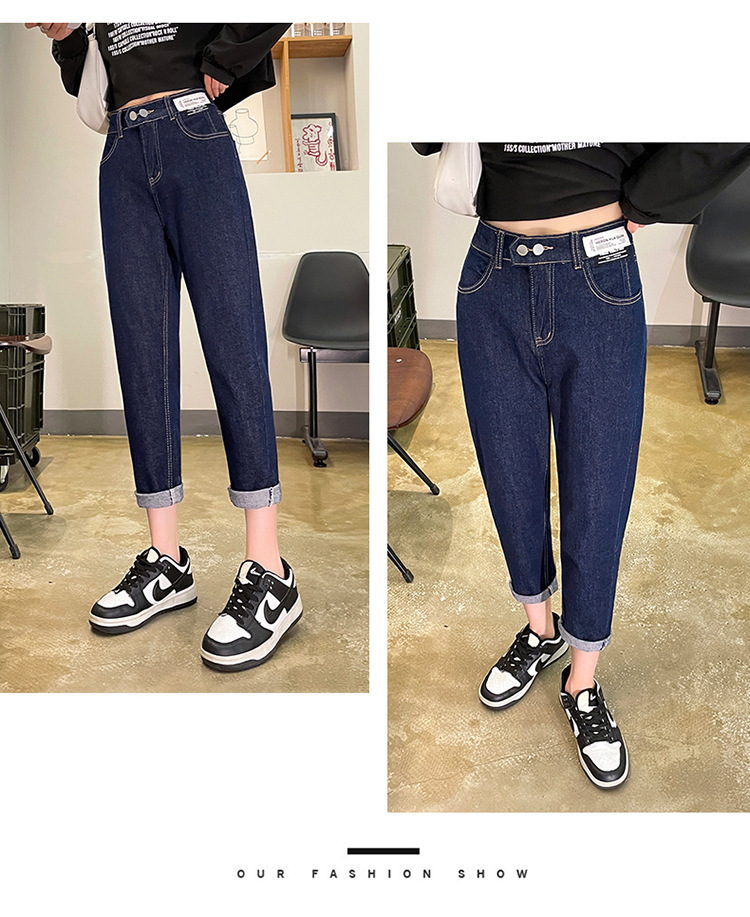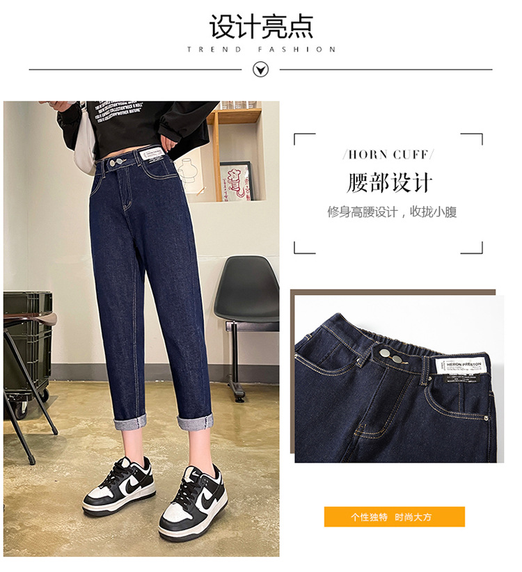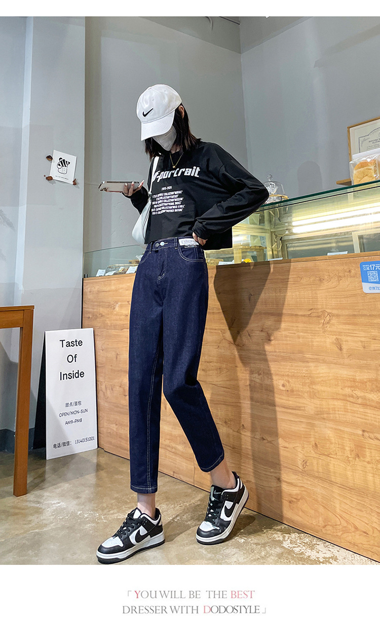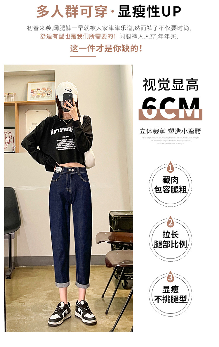 2024 여름 스트레치 작은 남자 새로운 높은 허리 청바지 여성의 탄성 허리 자른 하렘 바지 스트레이트 다리 바지스토어 가기