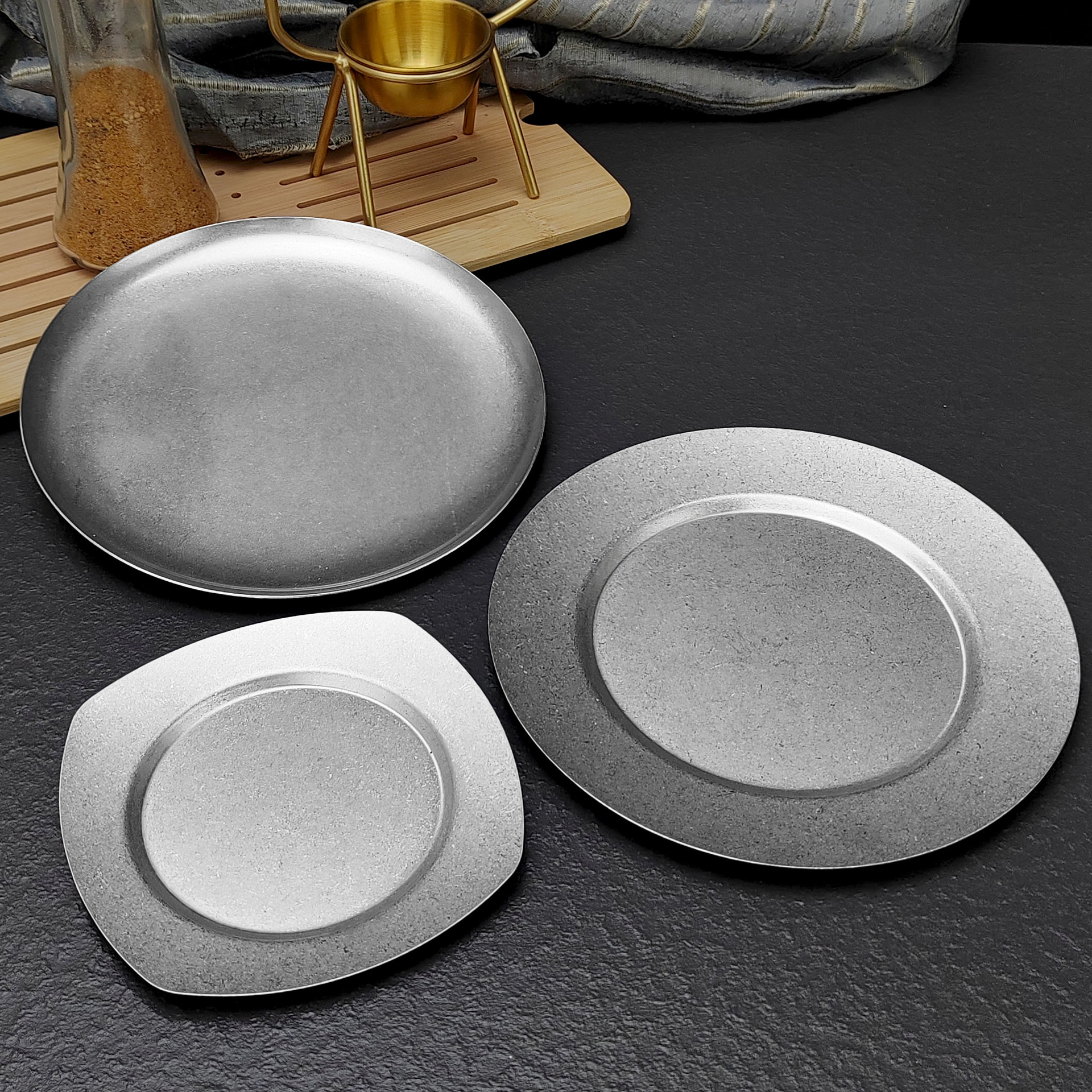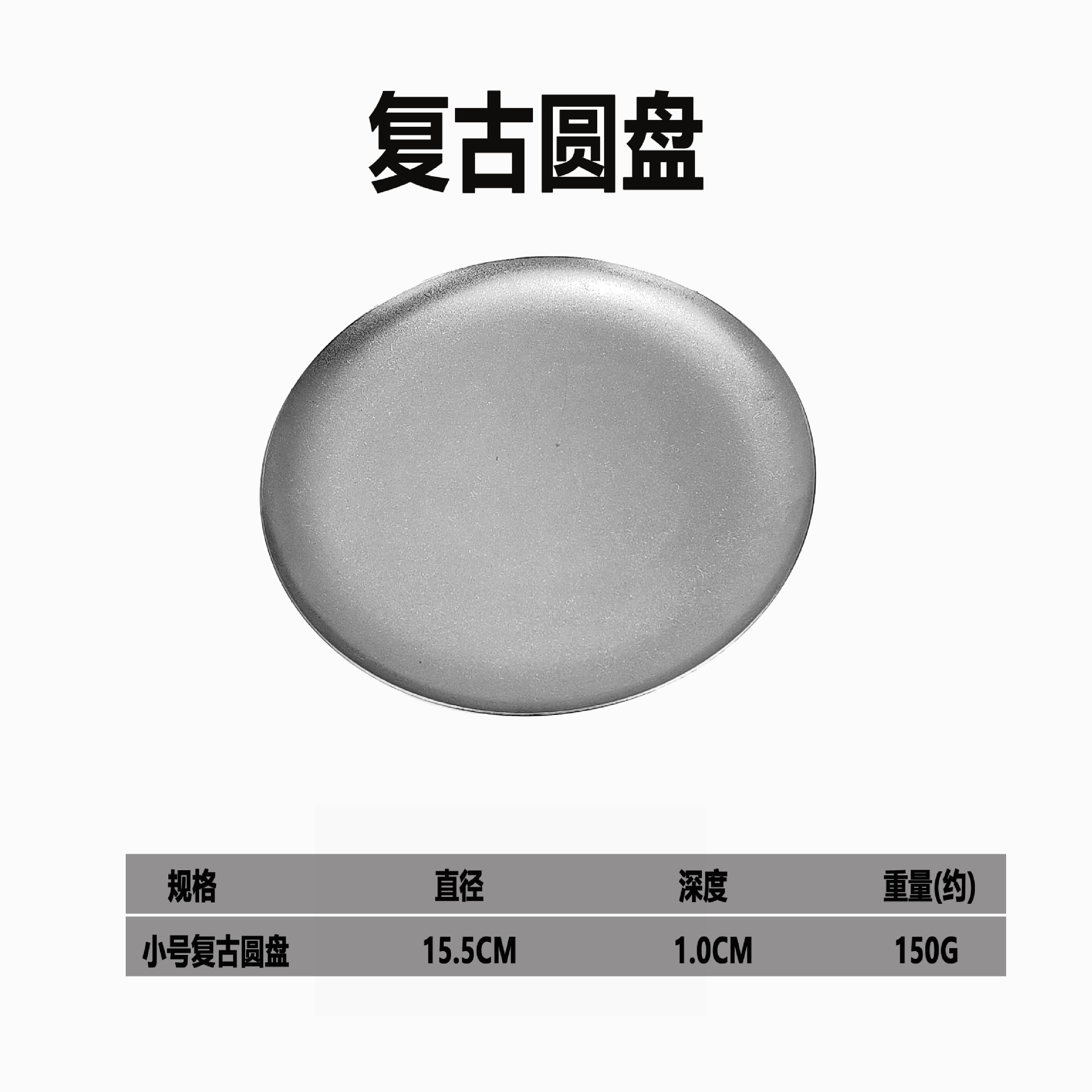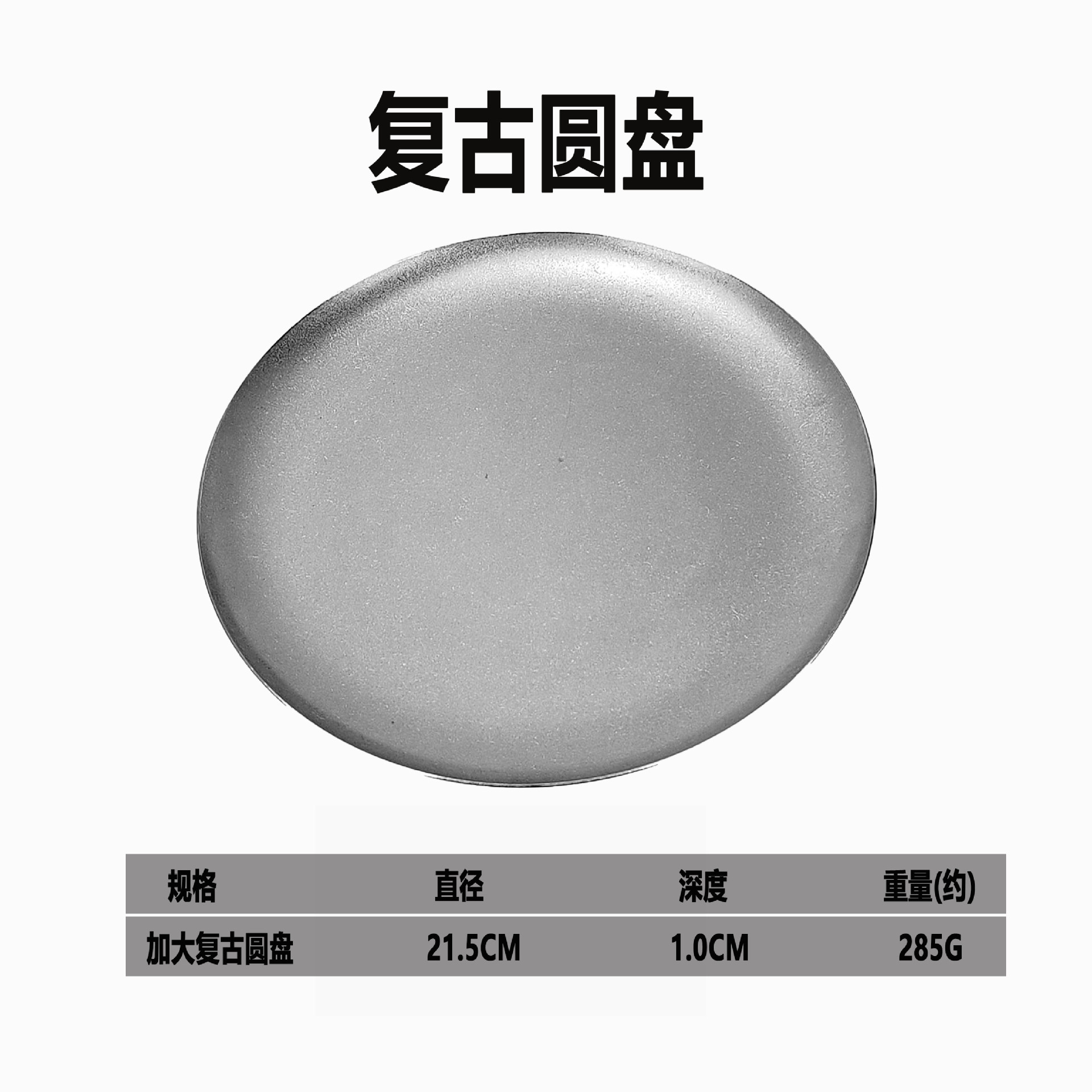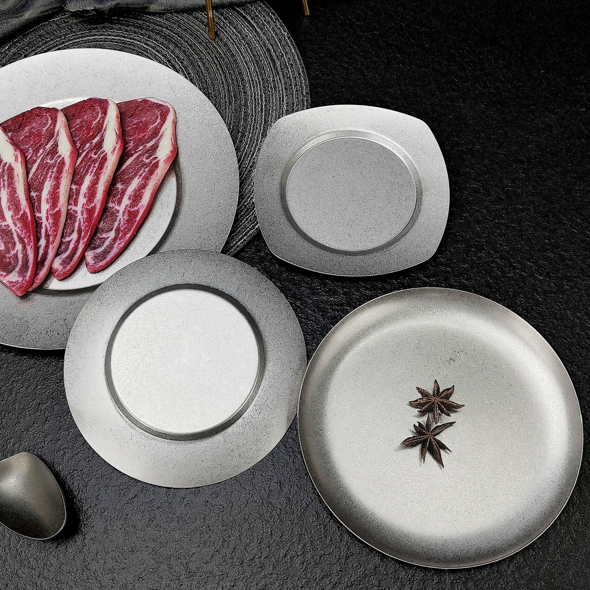 빈티지 스테인레스 스틸 디스크 카페 트레이 디저트 과일 플레이트 바베큐 플레이트 오래 된 서양 식품 플레이트 침 뼈 플레이트스토어 가기