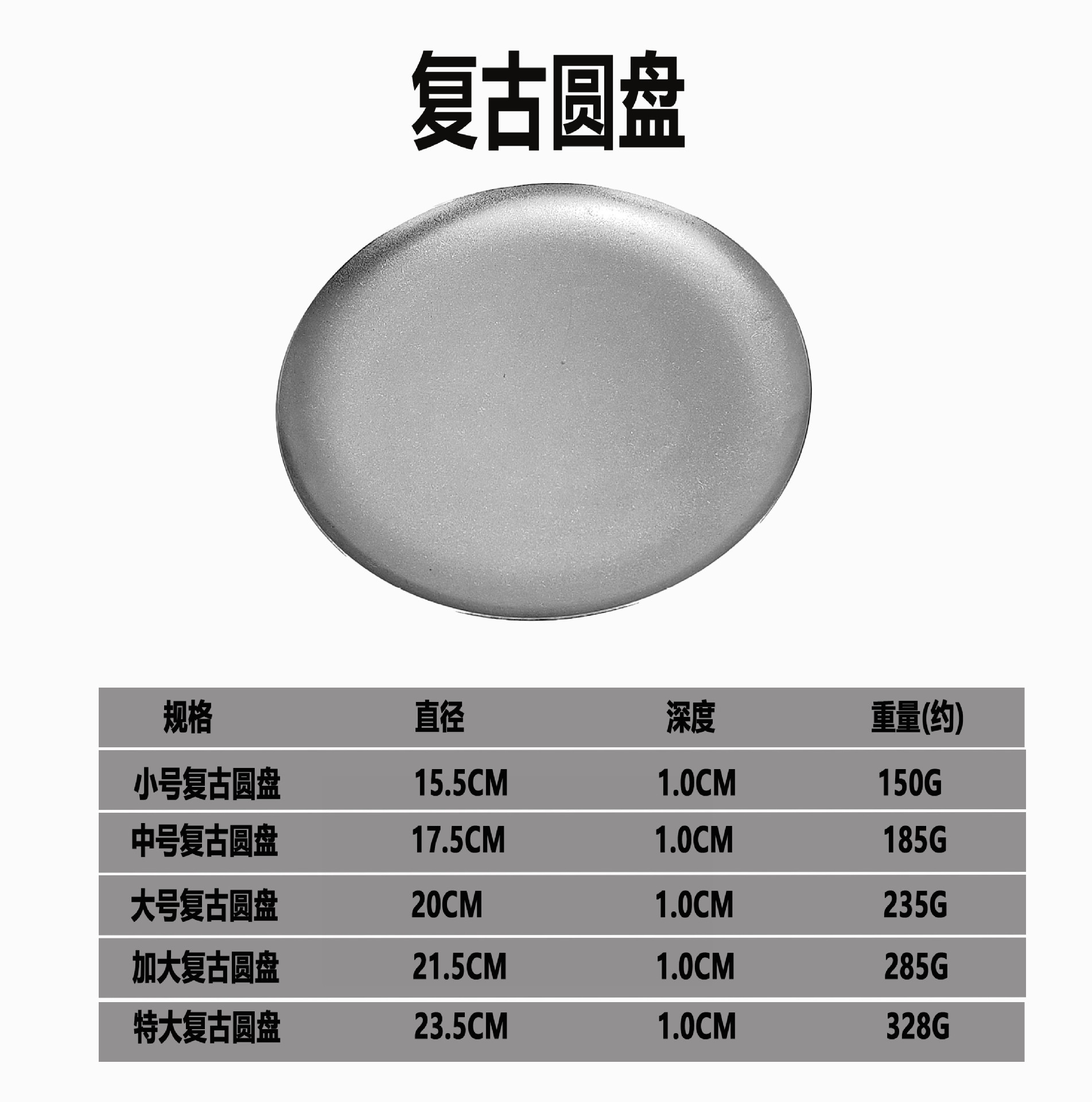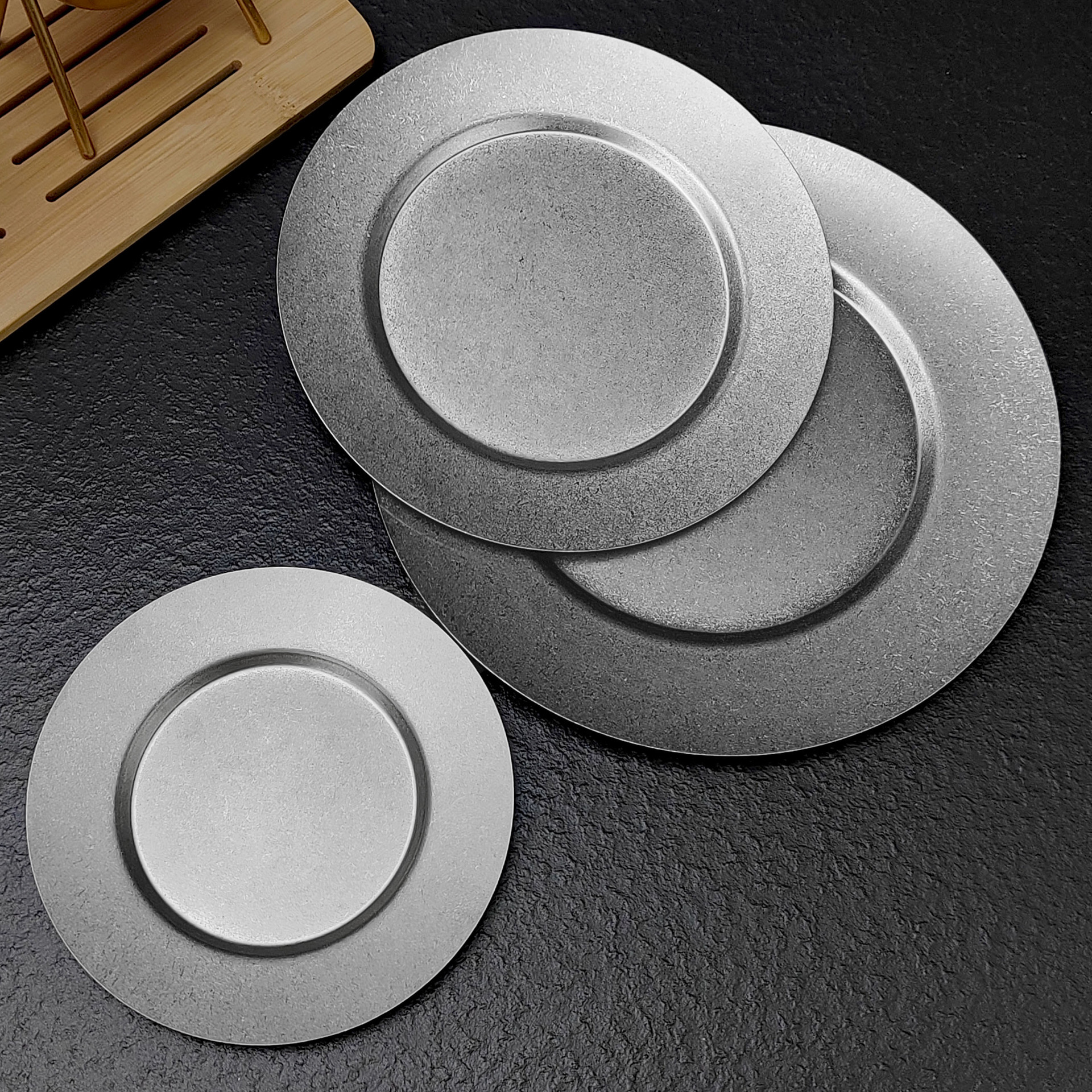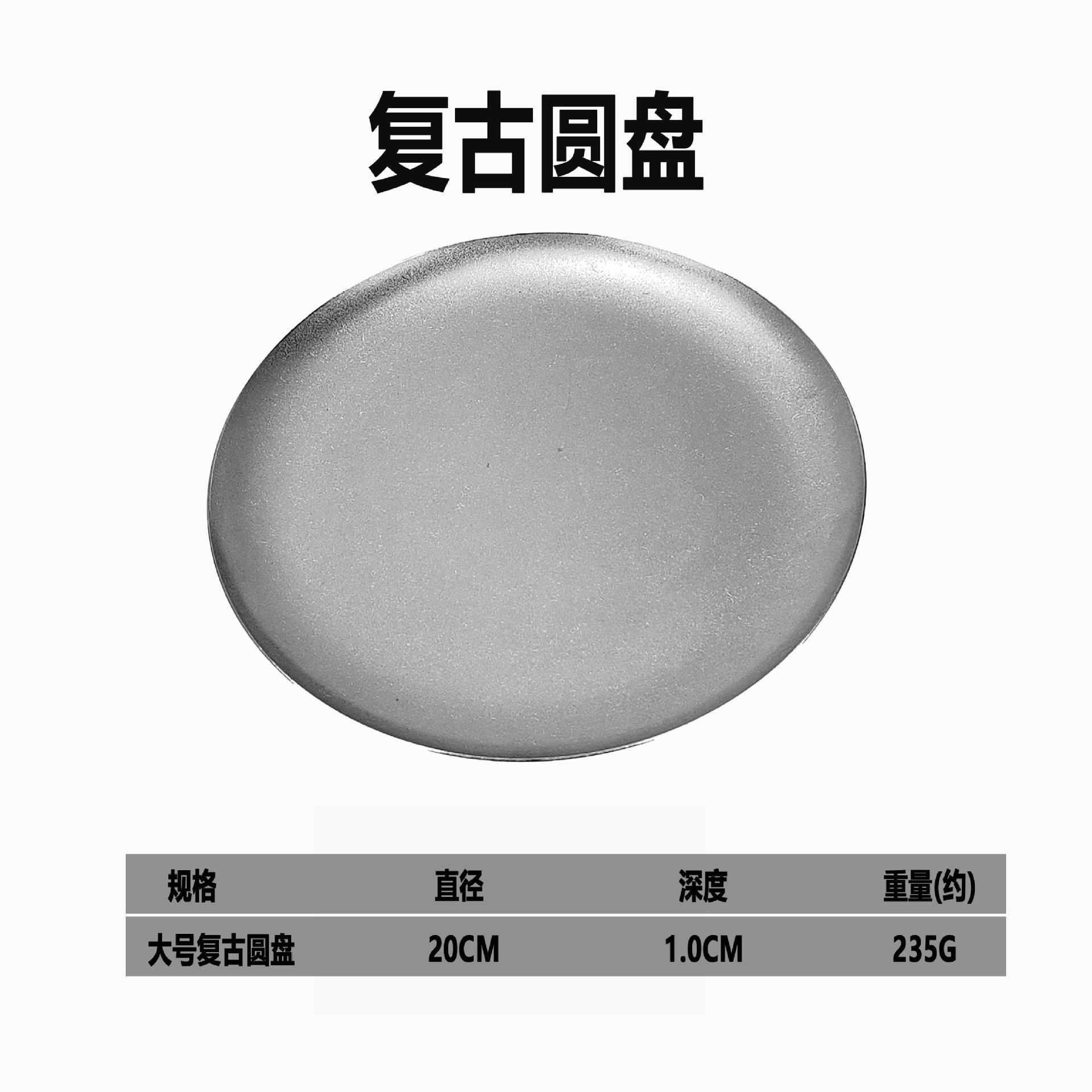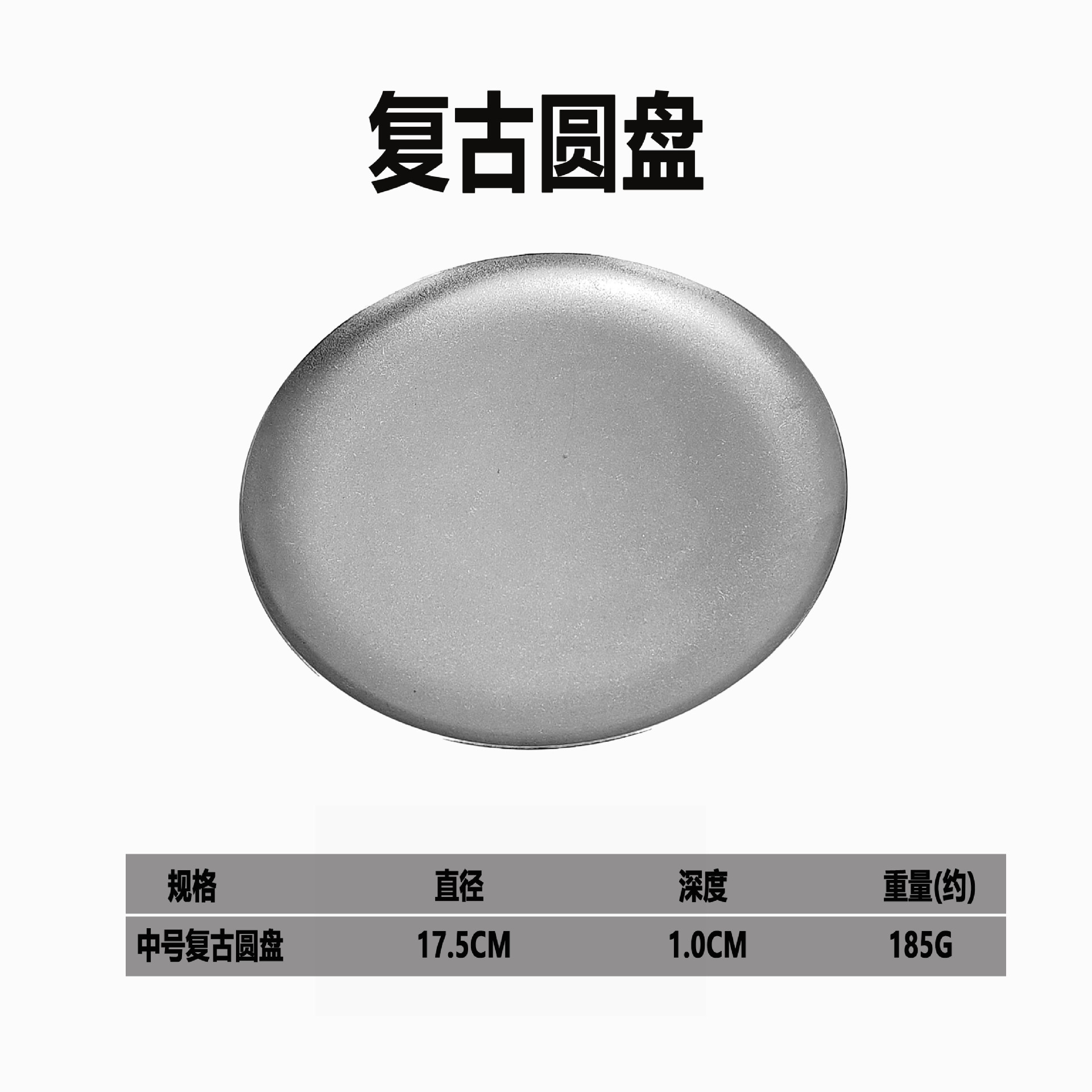 빈티지 스테인레스 스틸 디스크 카페 트레이 디저트 과일 플레이트 바베큐 플레이트 오래 된 서양 식품 플레이트 침 뼈 플레이트스토어 가기