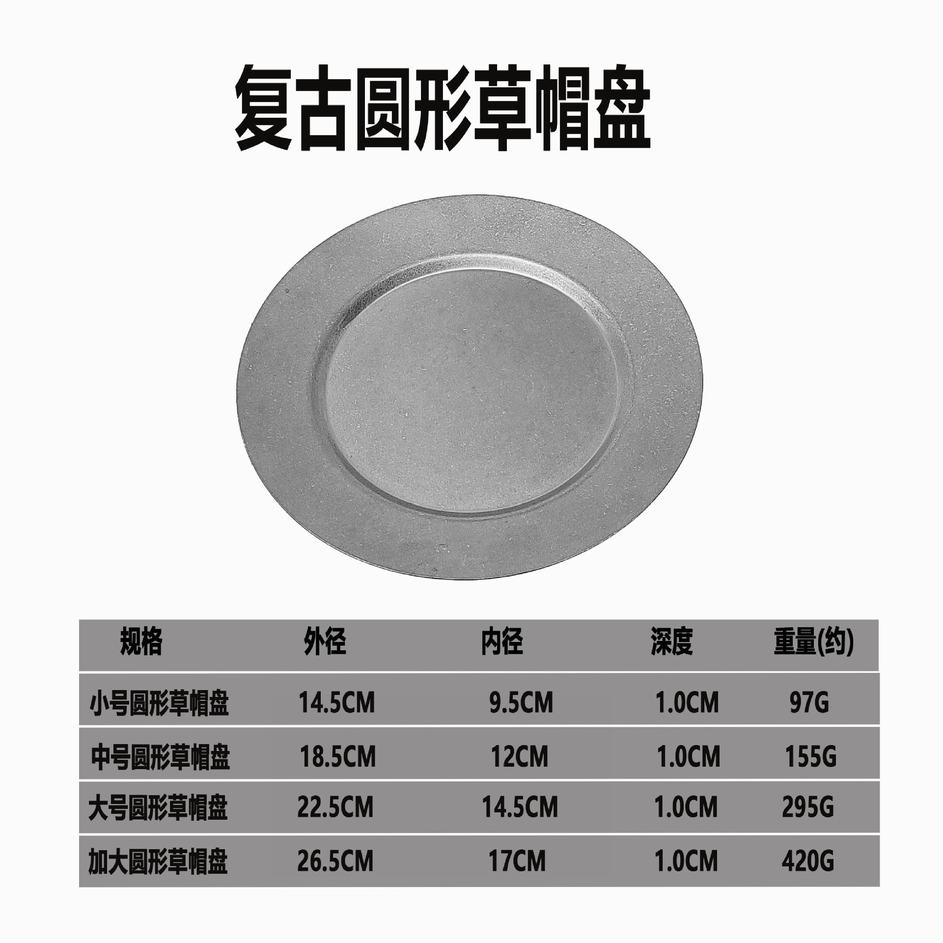• 대형 복고풍 둥근 밀짚 모자 플레이트