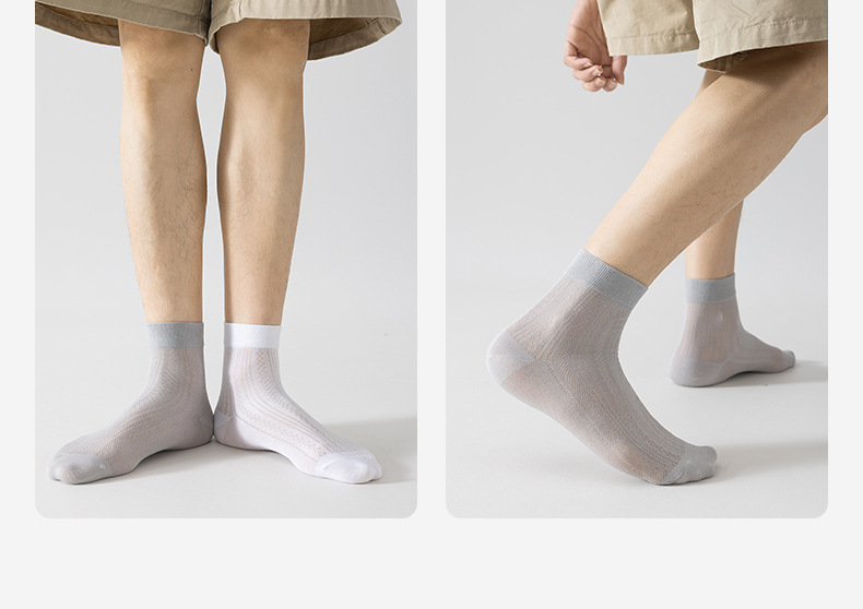 초박형 시원한 얼음 실크 스타킹 여름 항균 탈취제 양말 남성 통기성 메쉬 비즈니스 튜브 양말 대외 무역스토어 가기