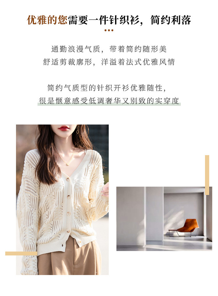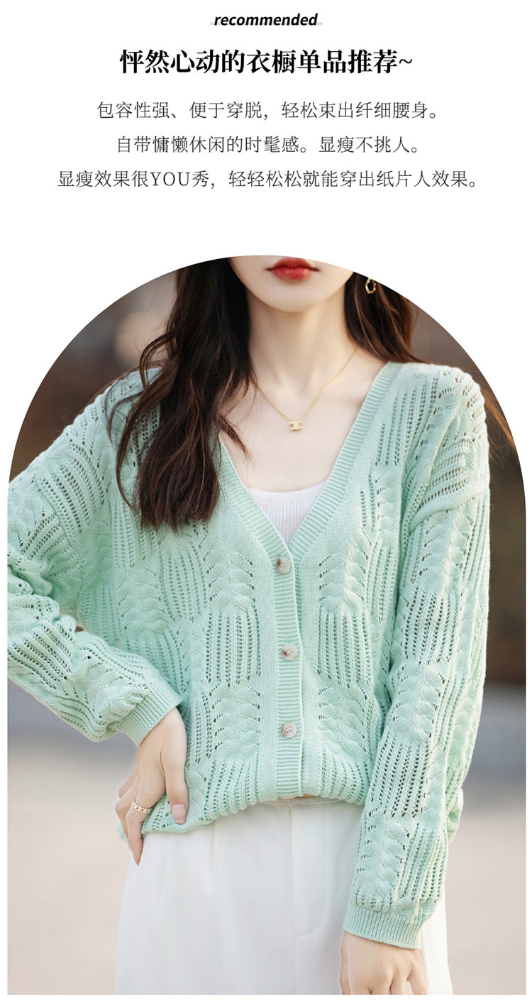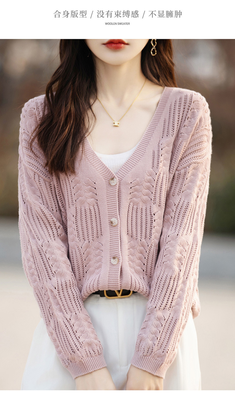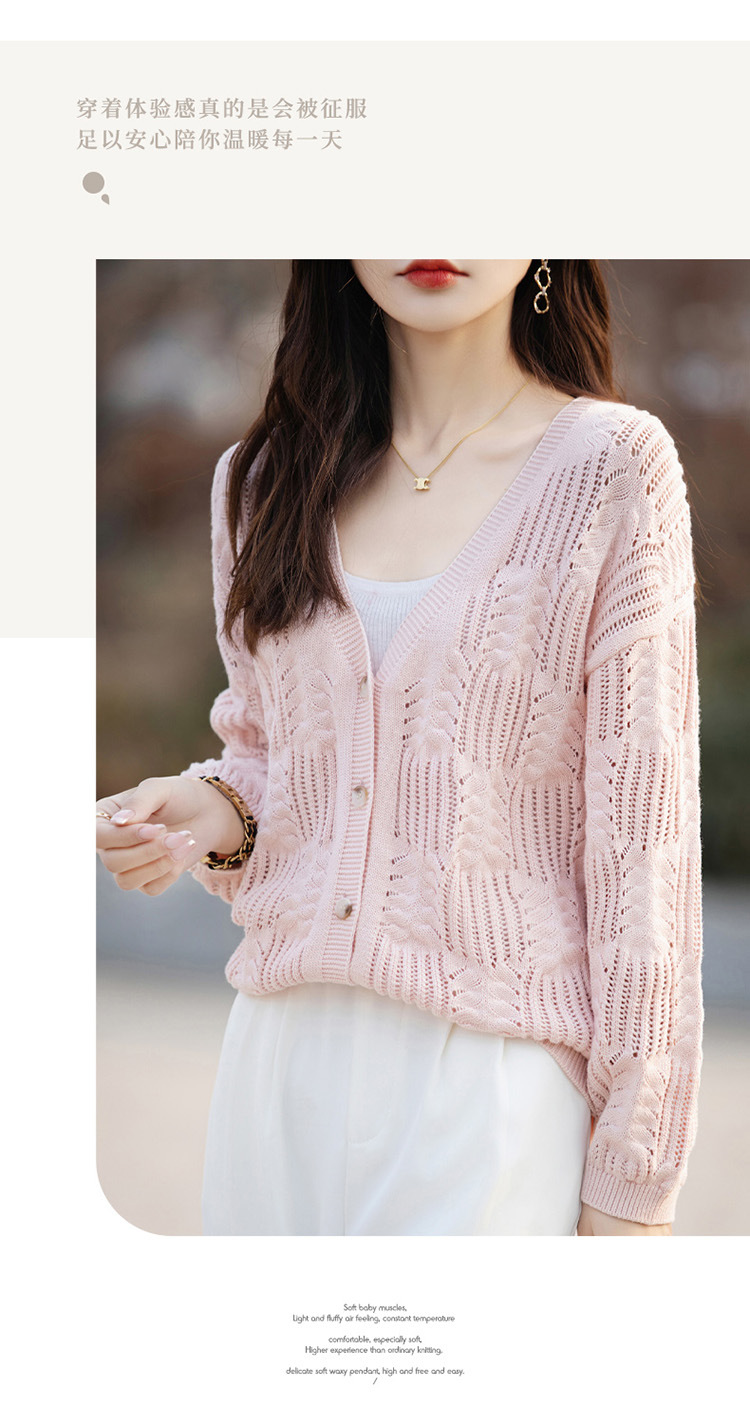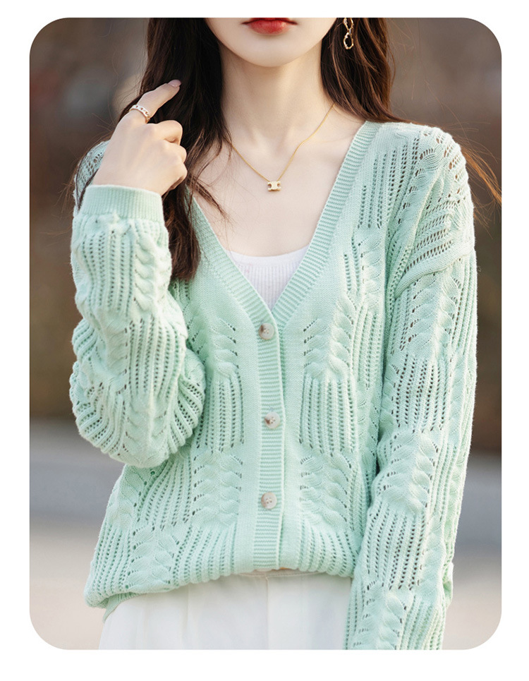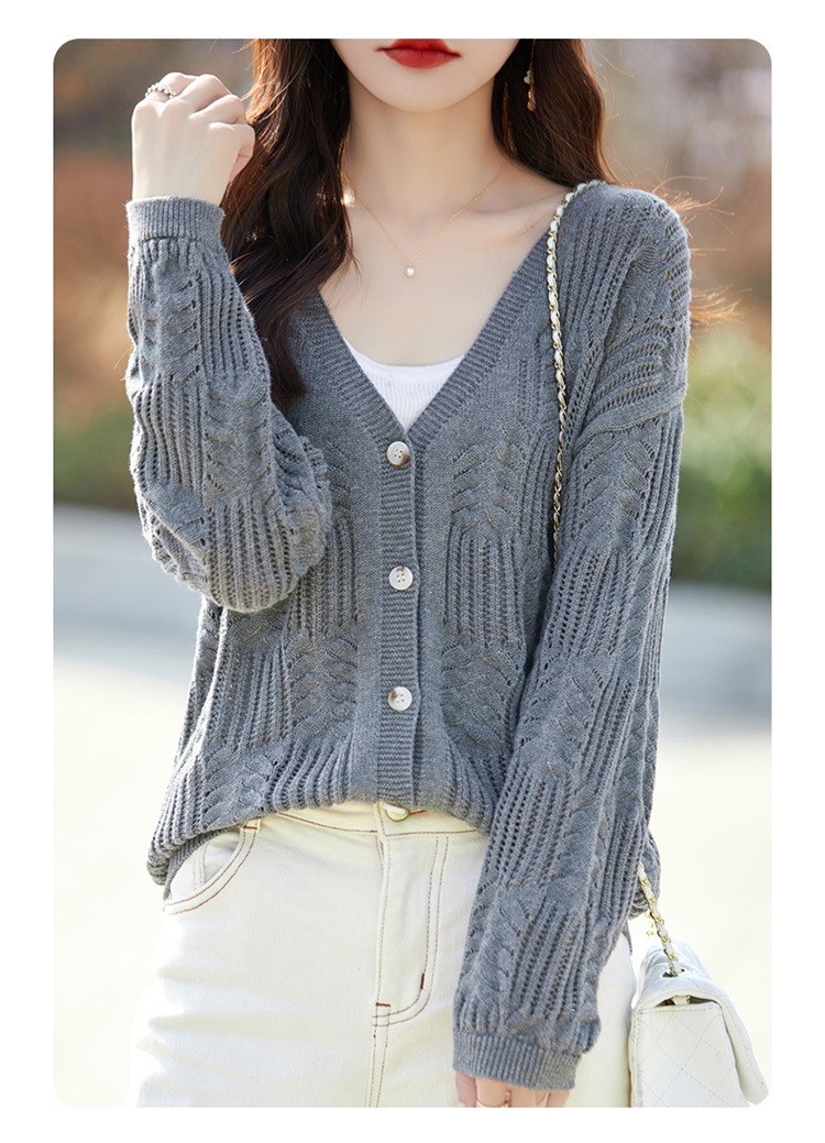 24 봄과 가을 새로운 코튼 라운드 넥 니트 카디건 여성 할로우 패션 우아한 느슨한 니트 코트 탑