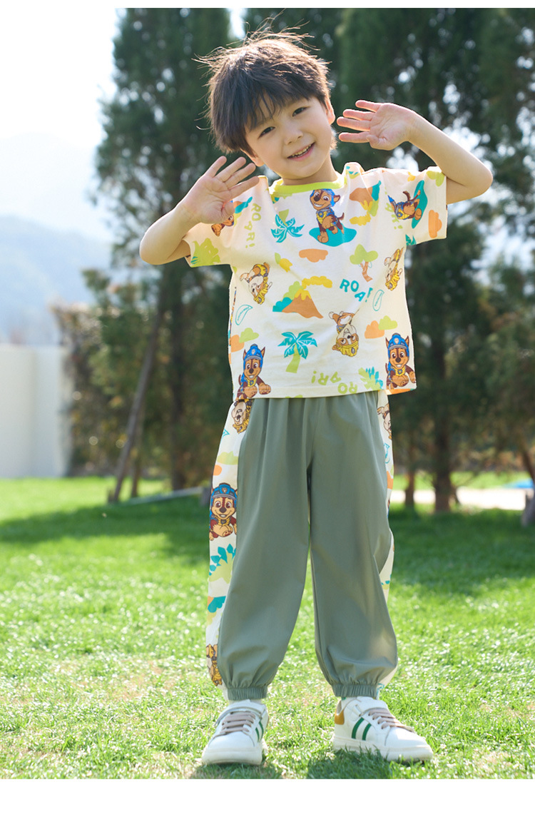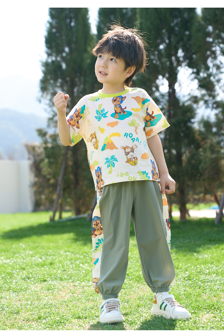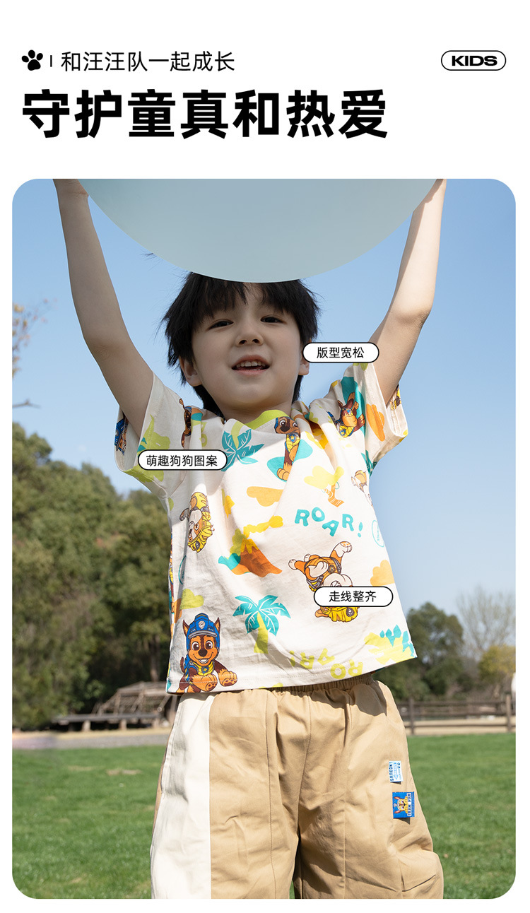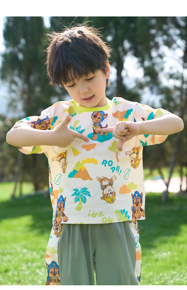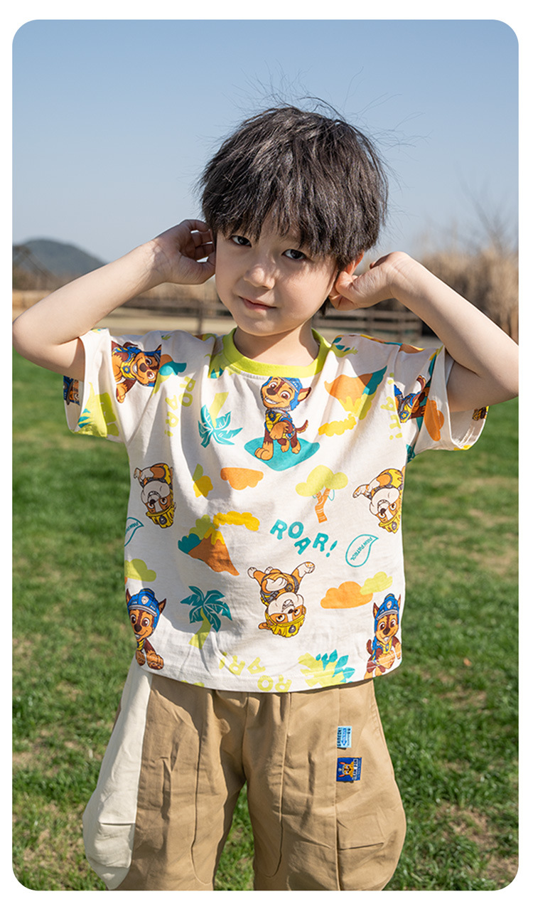 Paw Paw 팀 소년 반팔 티셔츠 순수 코튼 탑 어린이 여름 옷 소년 아기 여름 바닥 셔츠
