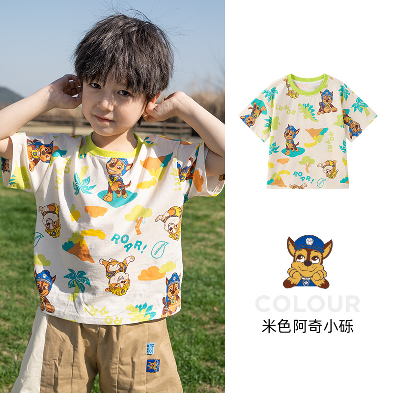 Paw Paw 팀 소년 반팔 티셔츠 순수 코튼 탑 어린이 여름 옷 소년 아기 여름 바닥 셔츠스토어 가기