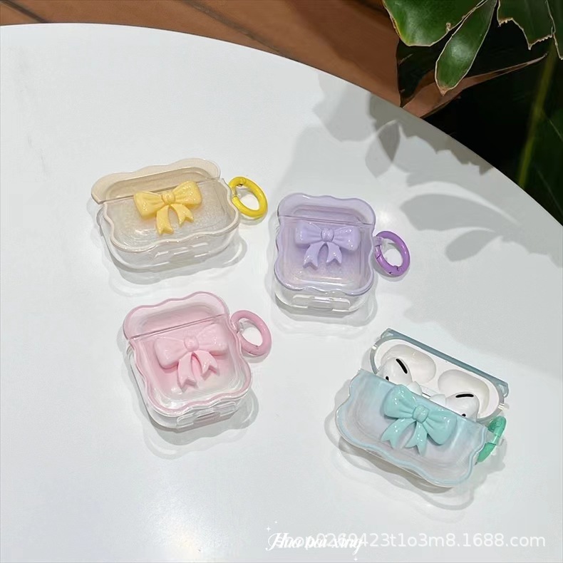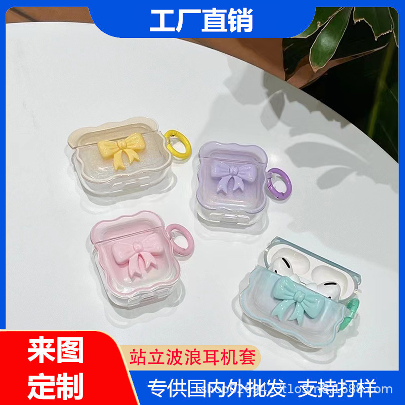 Apple airpods4에 적합한 캔디 컬러 보우 스탠딩 웨이브 프로2 보호 커버 3세대 헤드폰 케이스