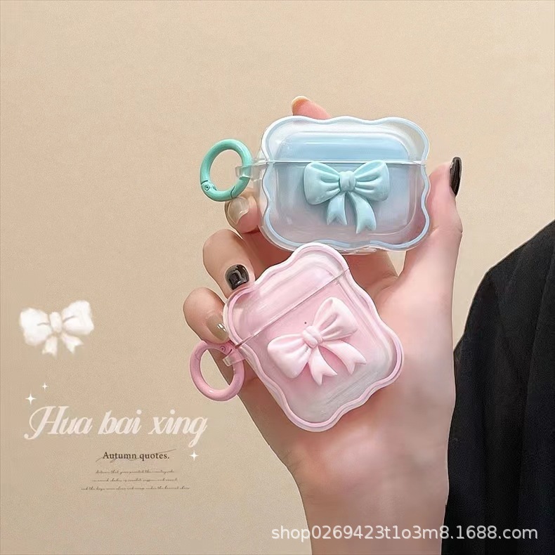 Apple airpods4에 적합한 캔디 컬러 보우 스탠딩 웨이브 프로2 보호 커버 3세대 헤드폰 케이스스토어 가기
