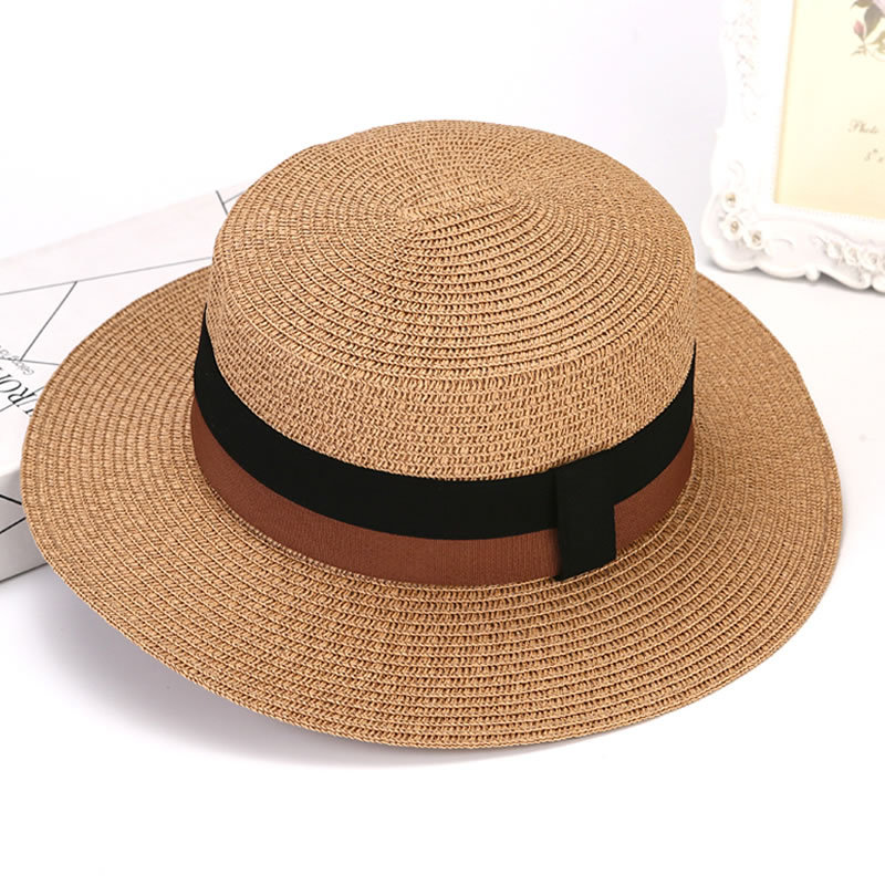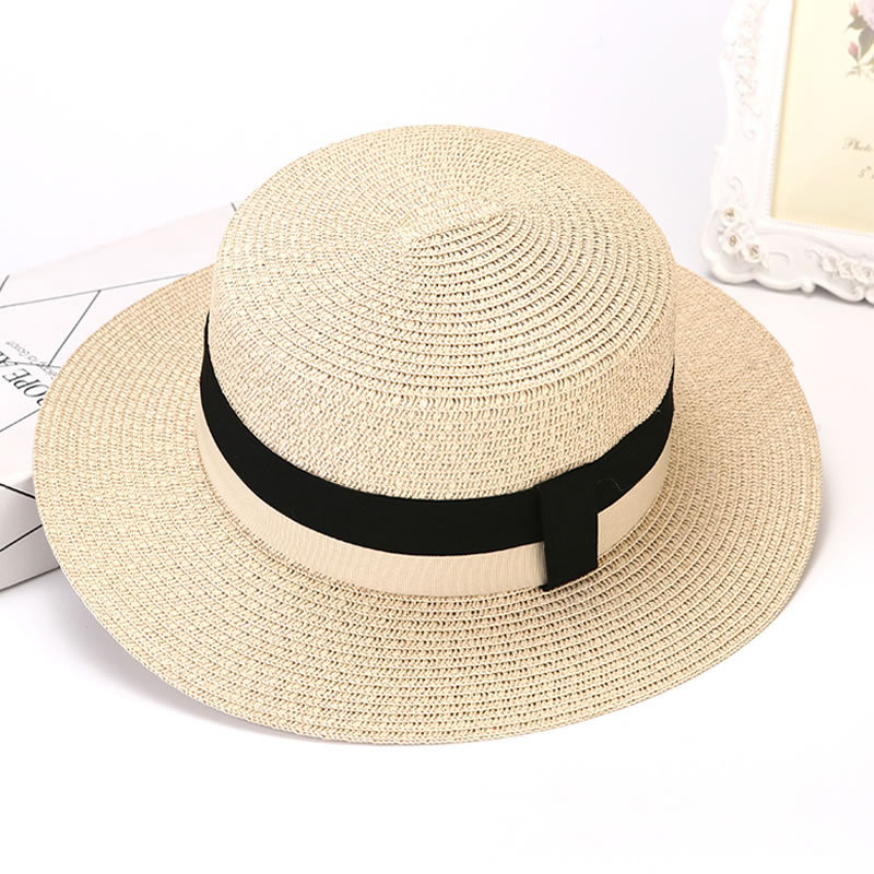 2025년 신상 여성용 밀짚모자 여름 자외선 차단 모자 넓은 챙 평평한 모자 해변 모자 태양 모자
