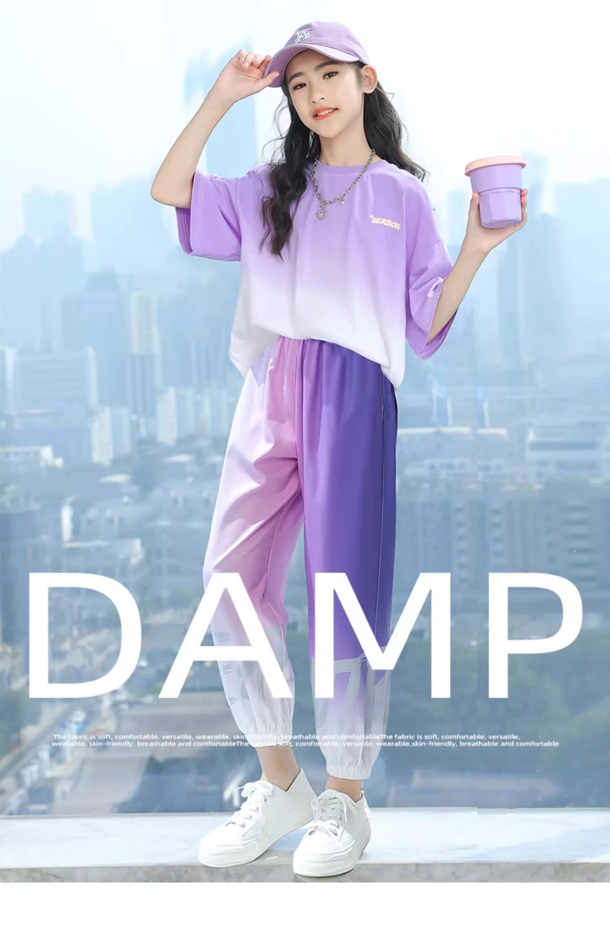 걸스 여름 투피스 새로운 도착 4-12 세 소녀 여름 세련된 그라디언트 색상 변경 세트 유행 빅 키즈 여름