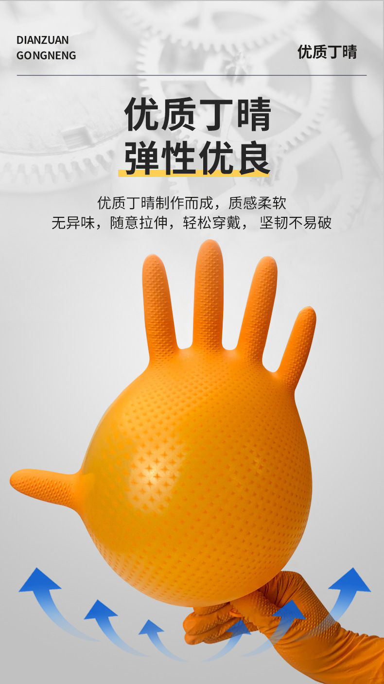 • 주황색 두꺼워진 XL 대형 다이아몬드 패턴 장갑 50개/가방
