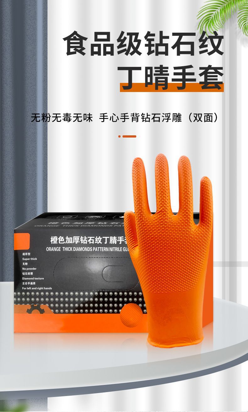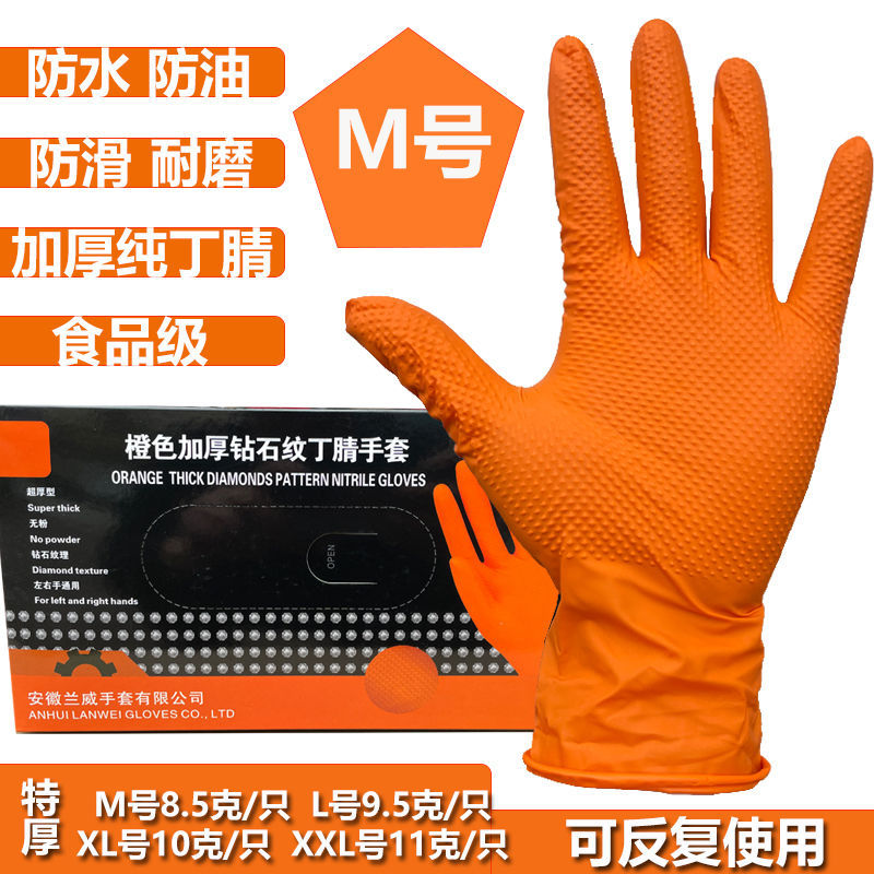 • 주황색 두꺼운 L 사이즈 중형 다이아몬드 패턴 장갑 100개/상자