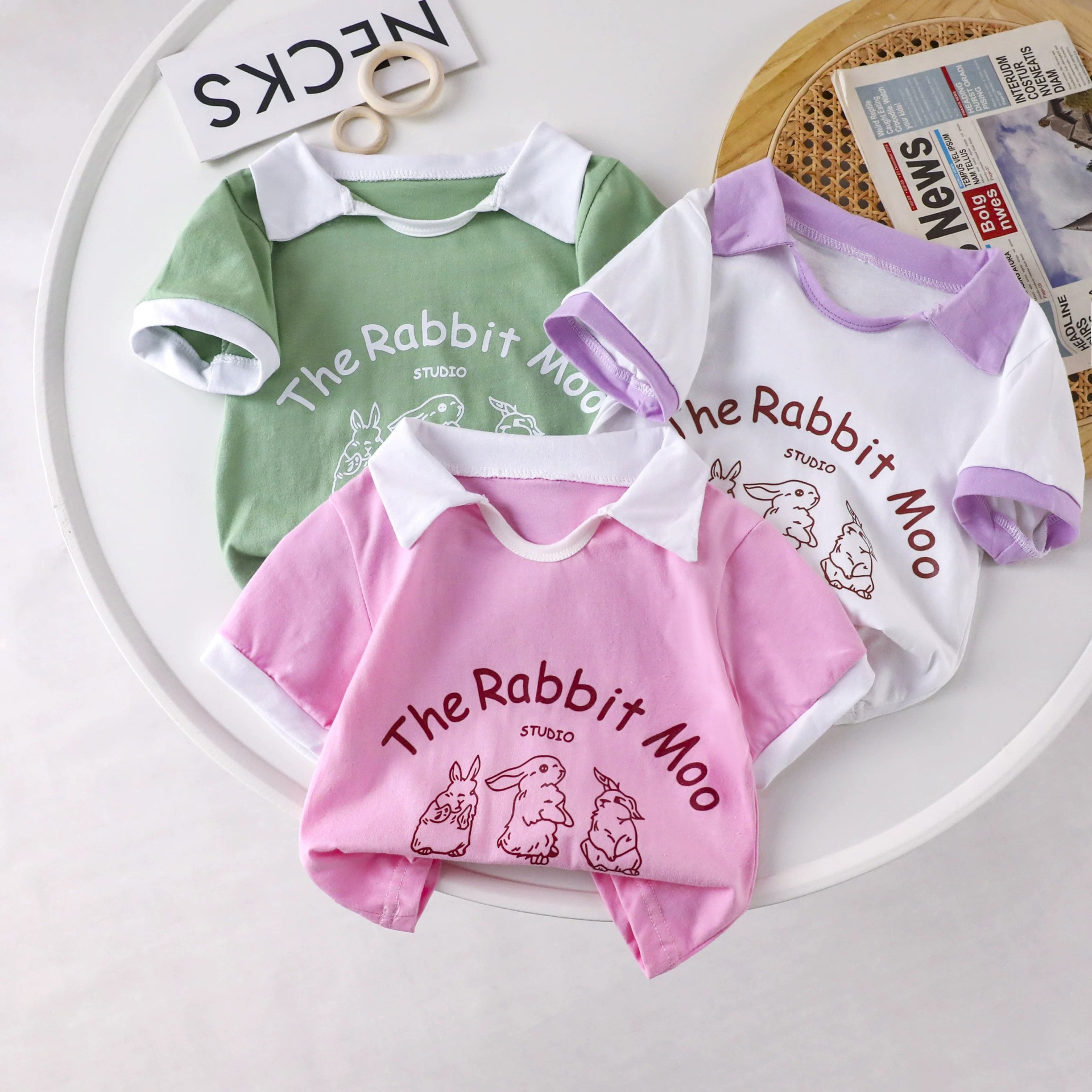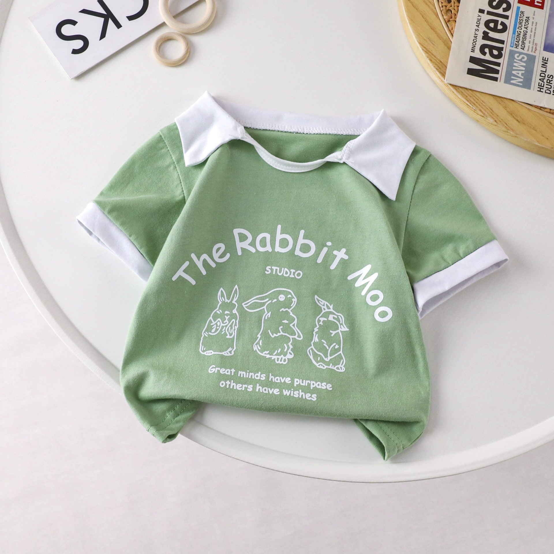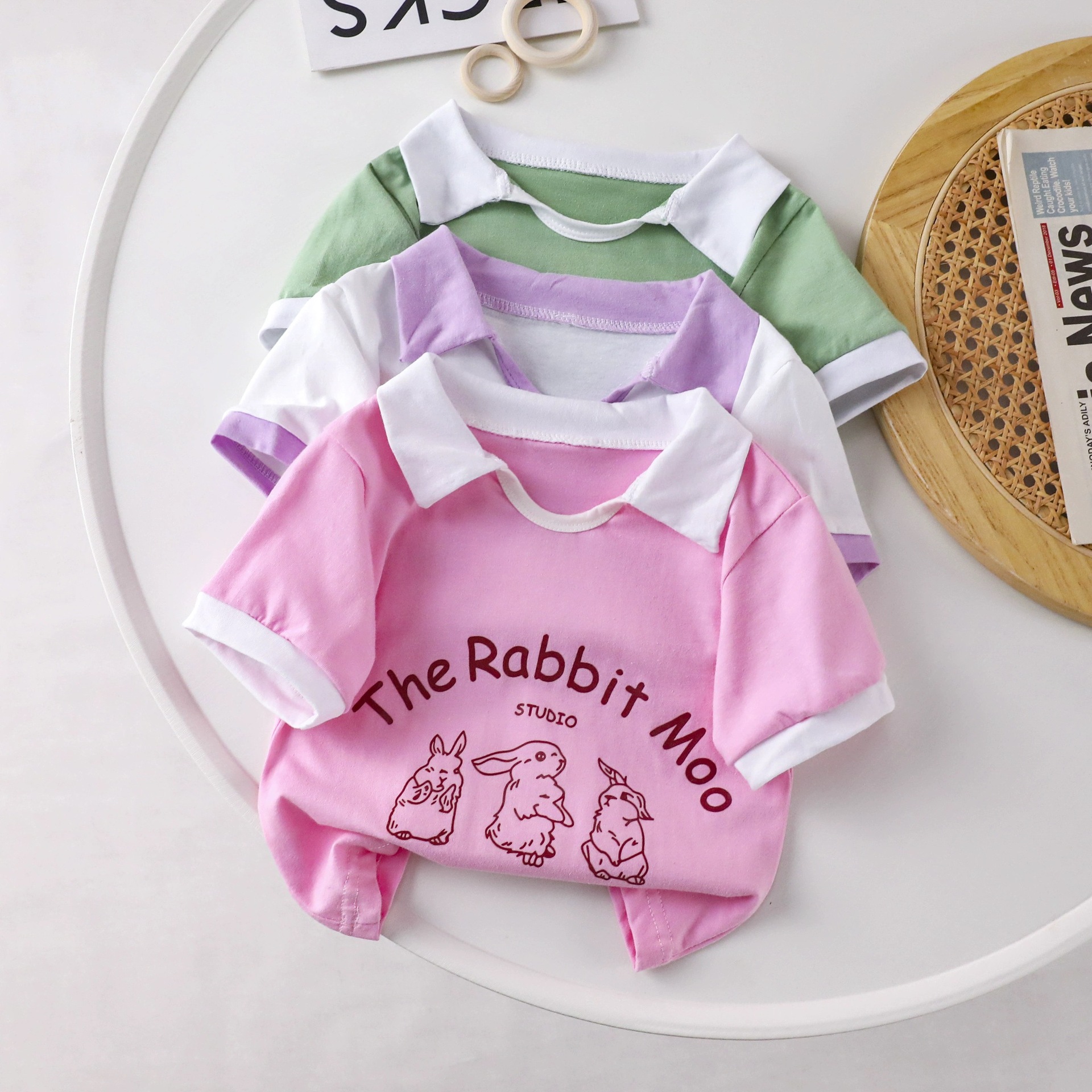 어린이 한국식 토끼 POLO 칼라 코튼 반팔 티셔츠 여름 옷깃 아기의 서양식 콘트라스트 컬러 아동복 트렌디 3스토어 가기