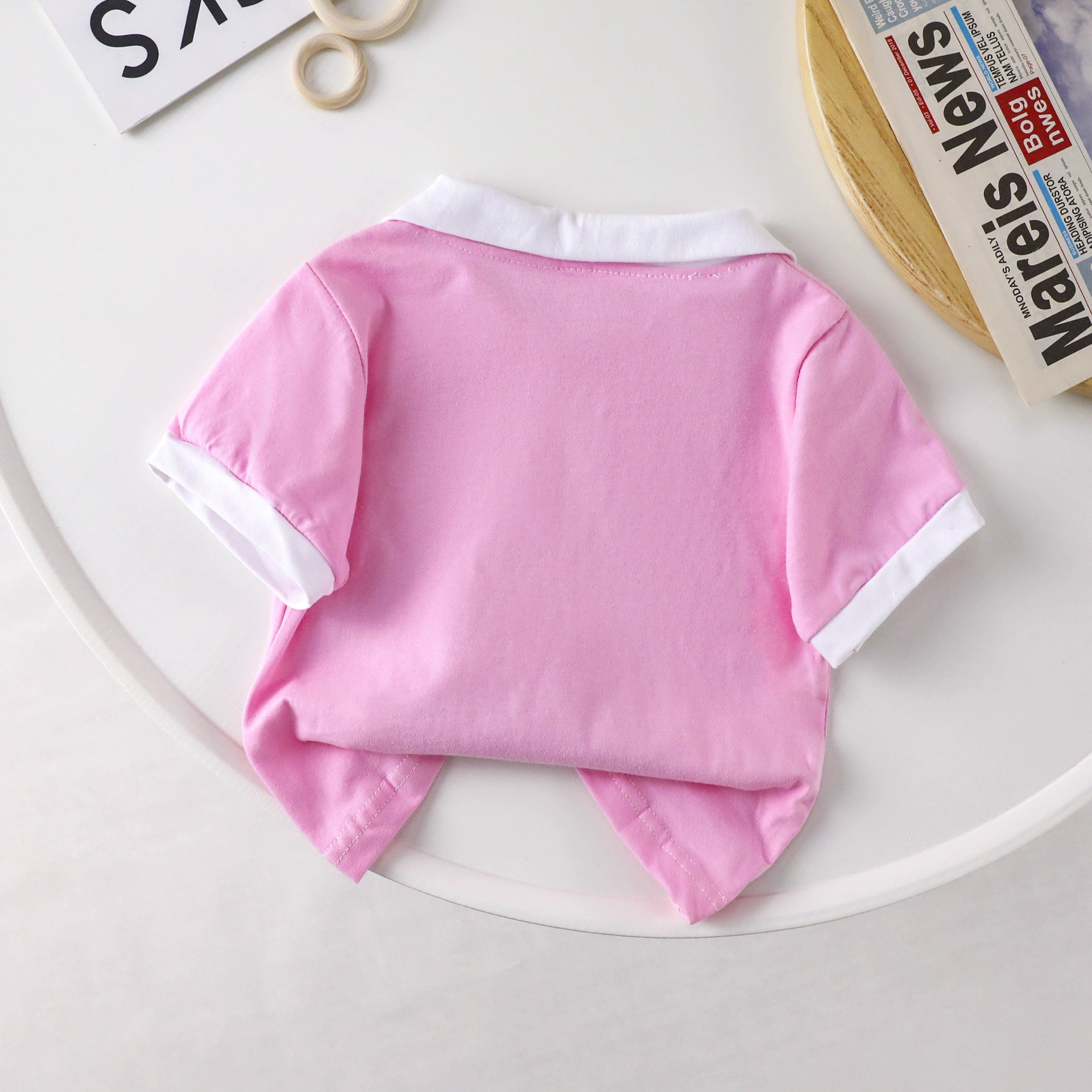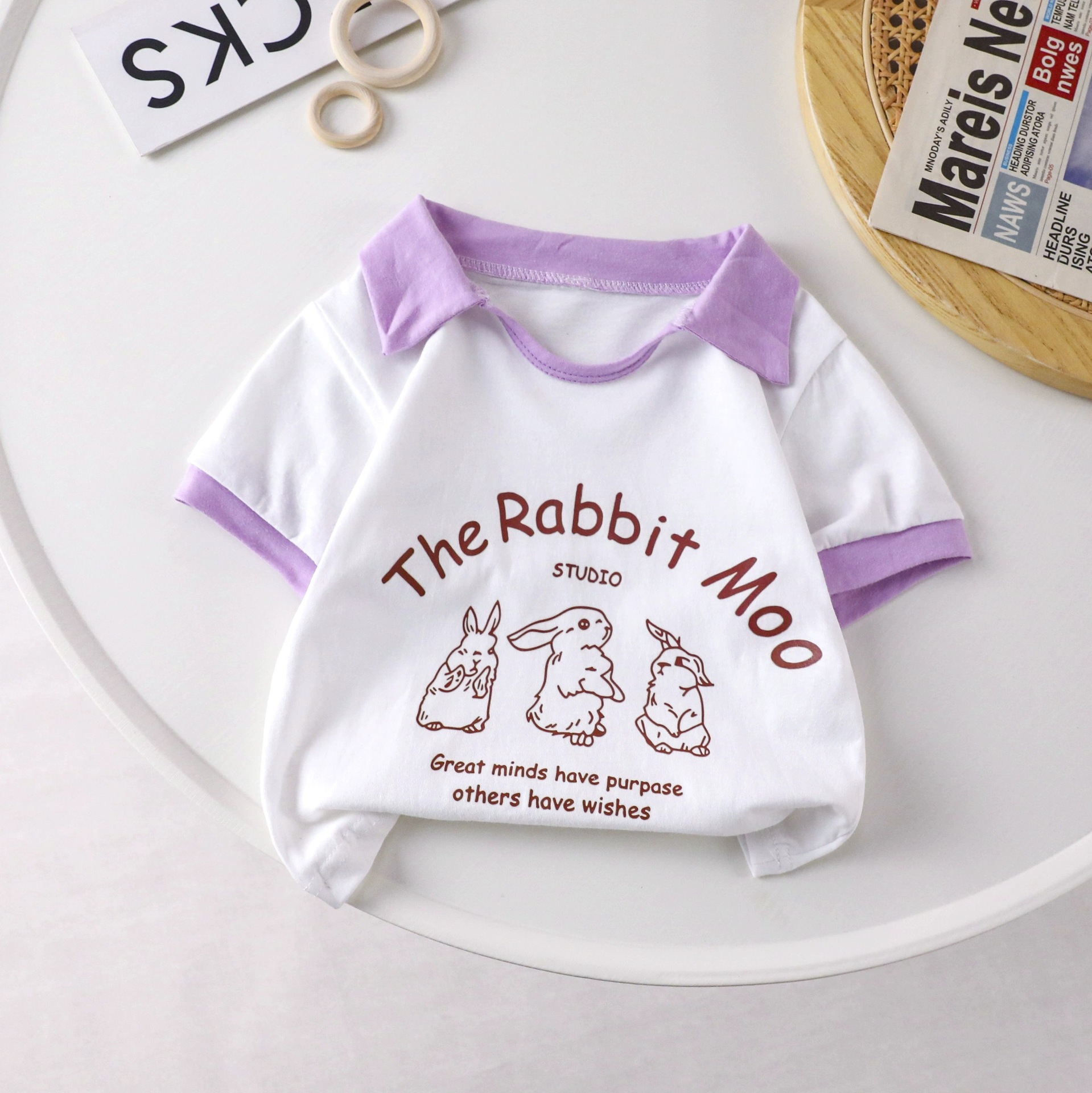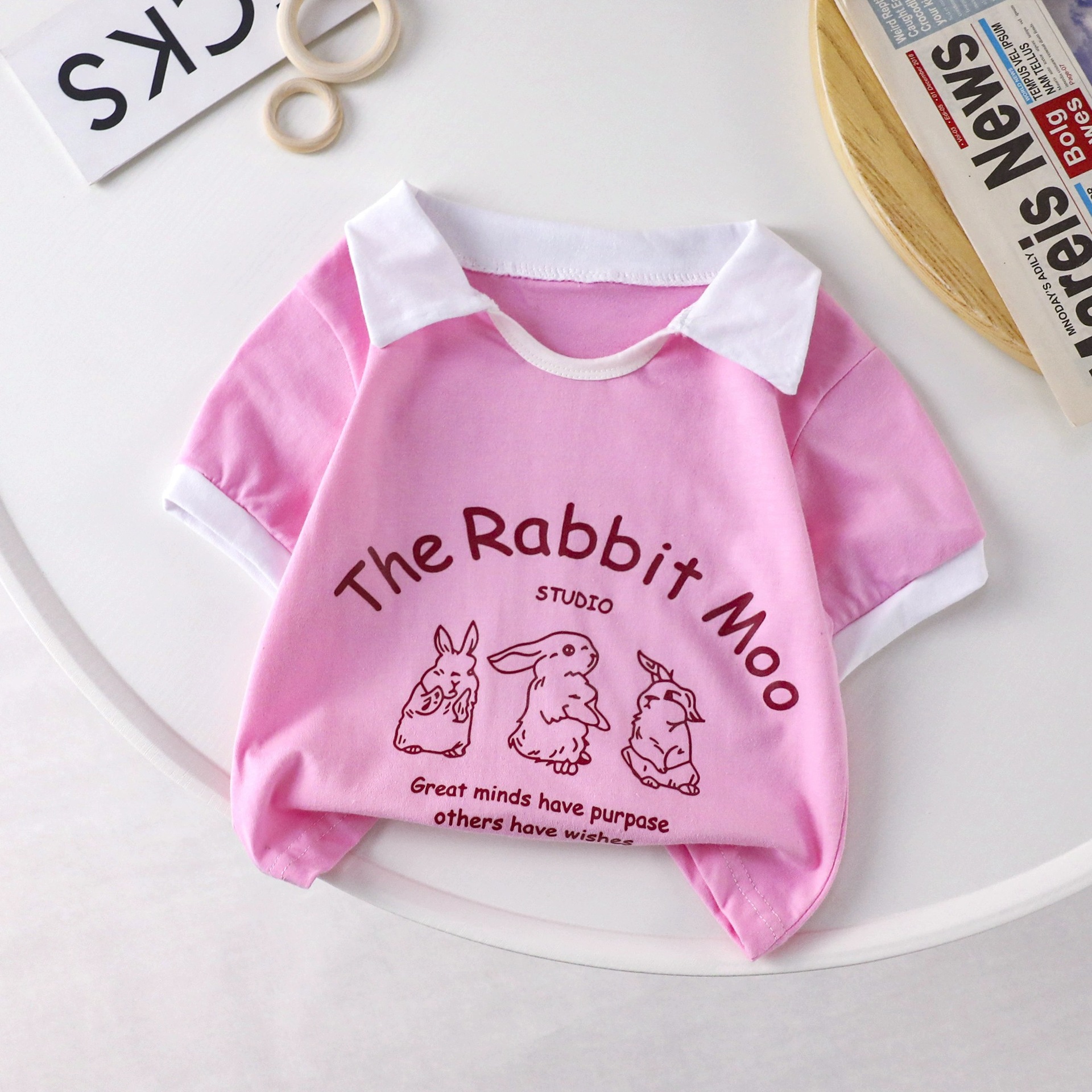 어린이 한국식 토끼 POLO 칼라 코튼 반팔 티셔츠 여름 옷깃 아기의 서양식 콘트라스트 컬러 아동복 트렌디 3
