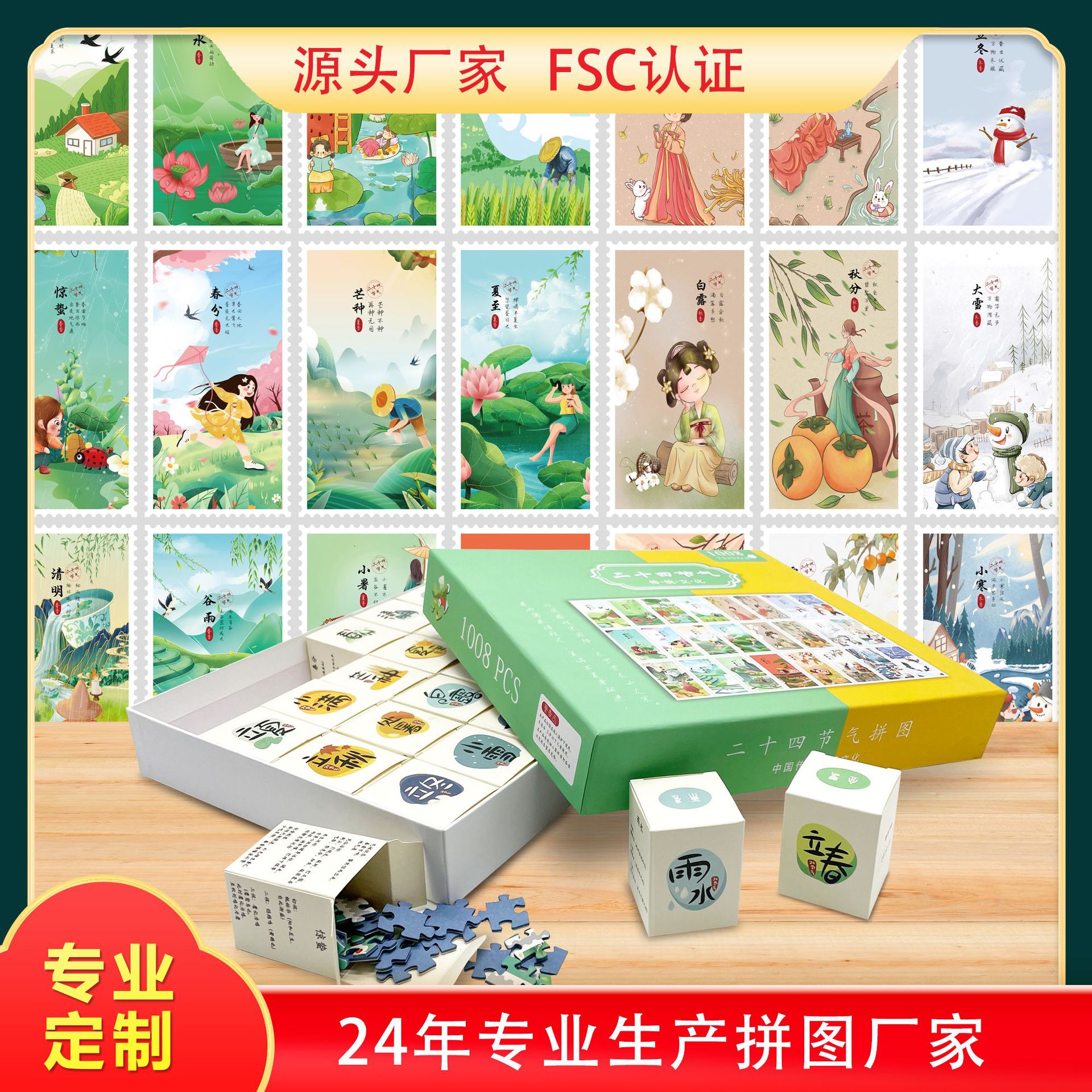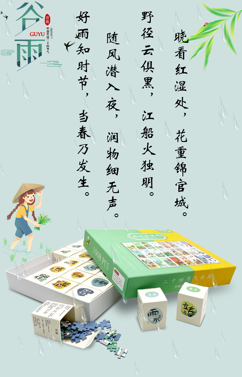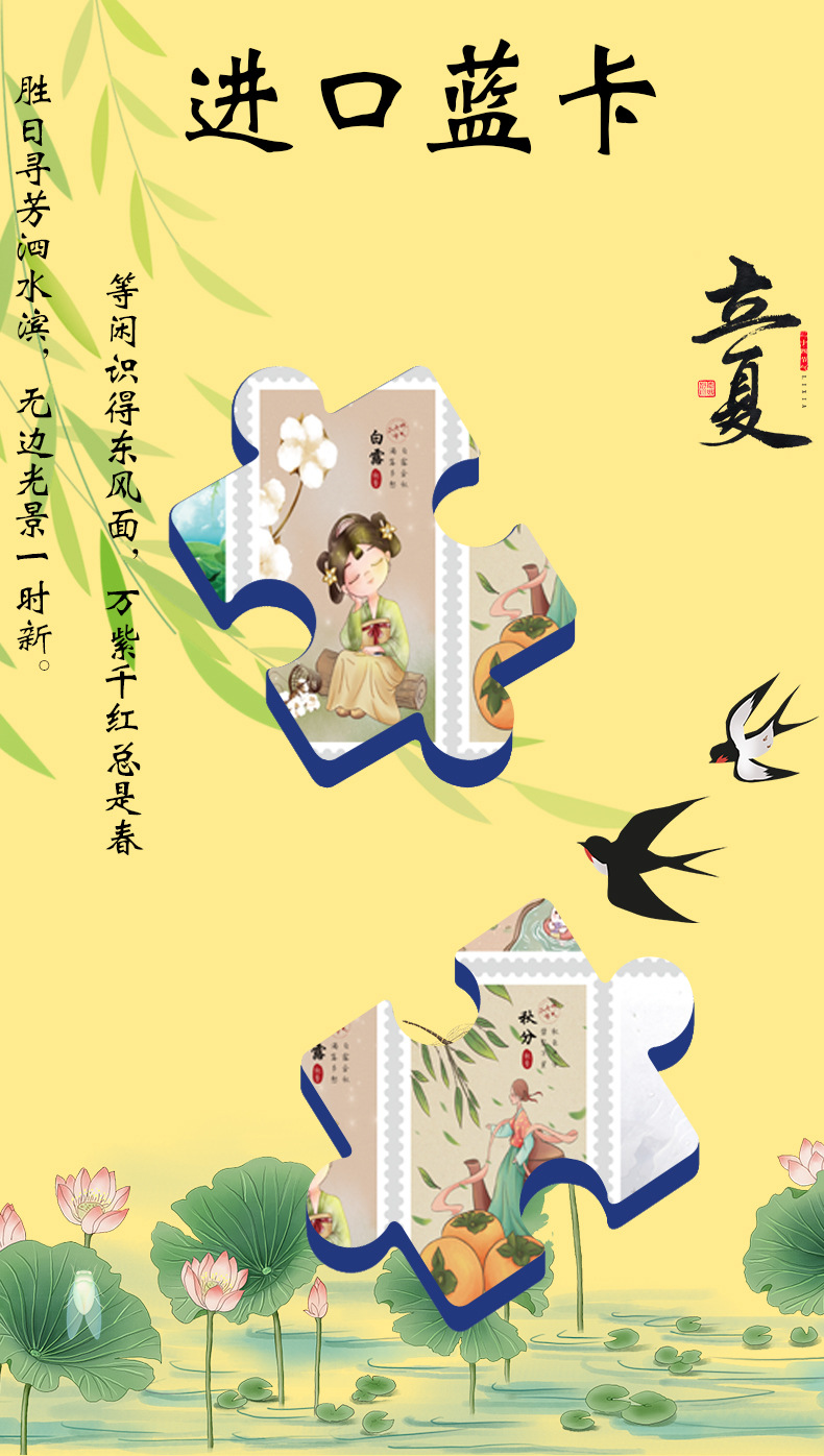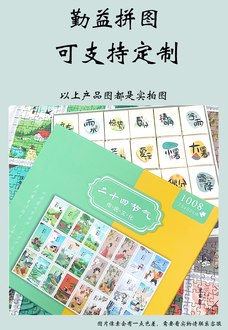 성인과 어린이를 위한 맞춤형 24절기 블라인드 박스 퍼즐, 두꺼운 파란색 카드 종이 퍼즐