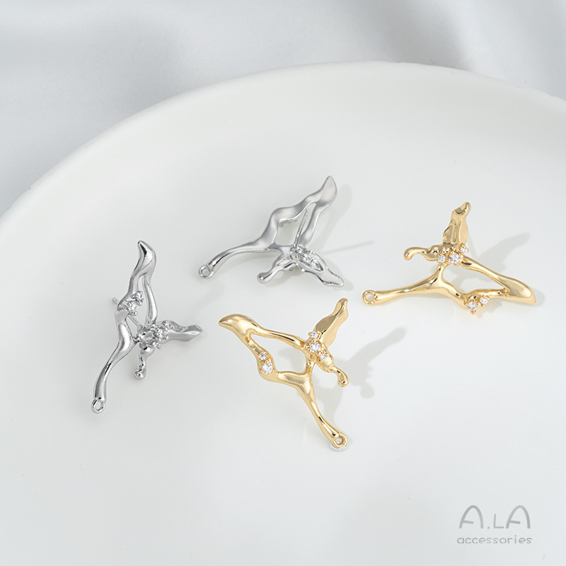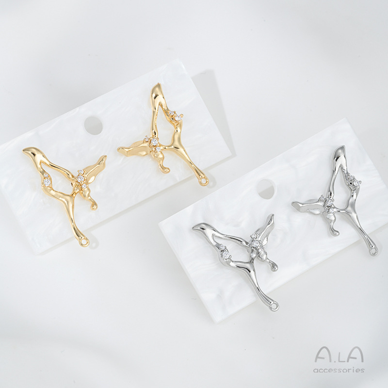 컬러 보존 14K 금 상감 지르콘 불규칙한 나비 매달린 귀걸이 925 실버 바늘 DIY 손으로 만든 귀 보석 소재