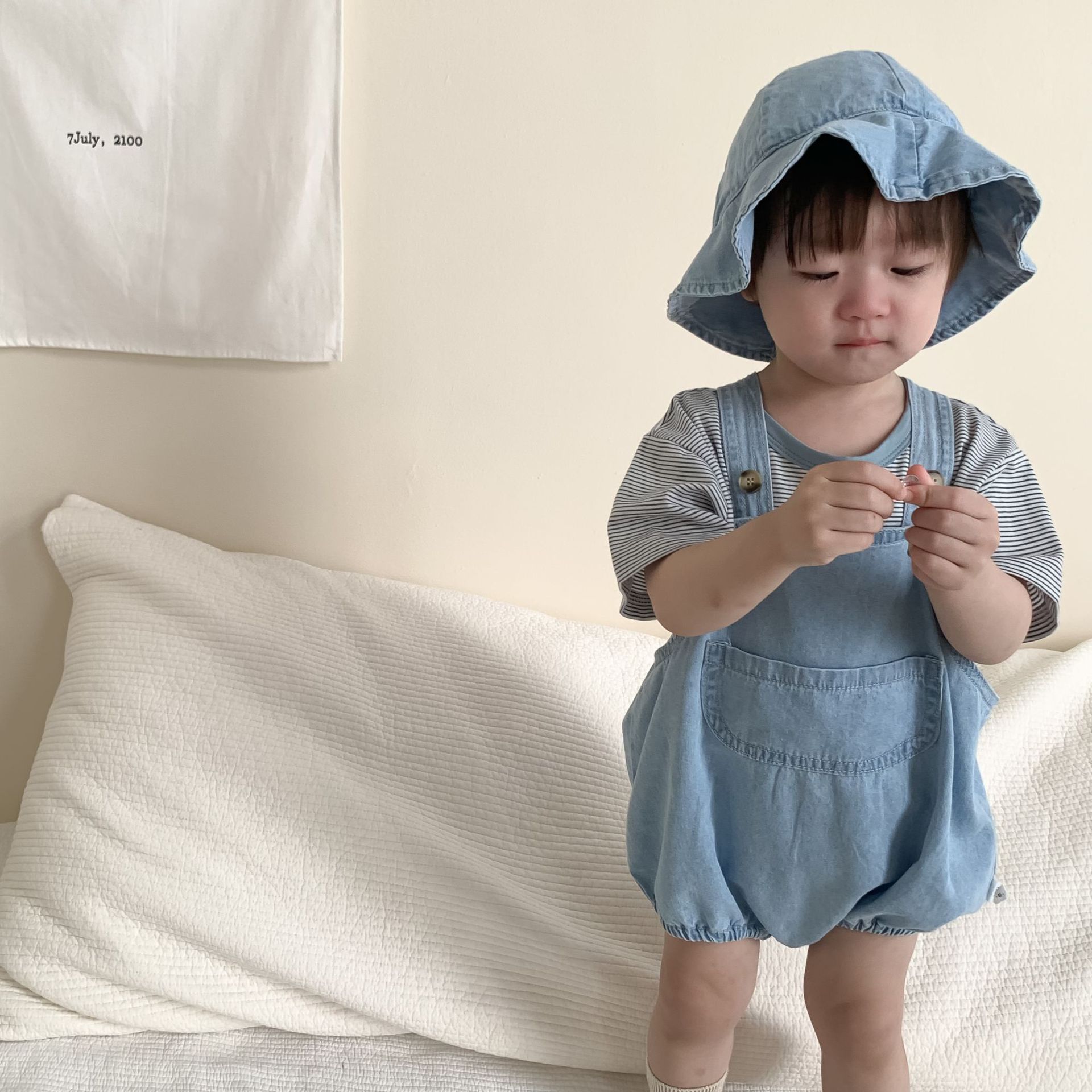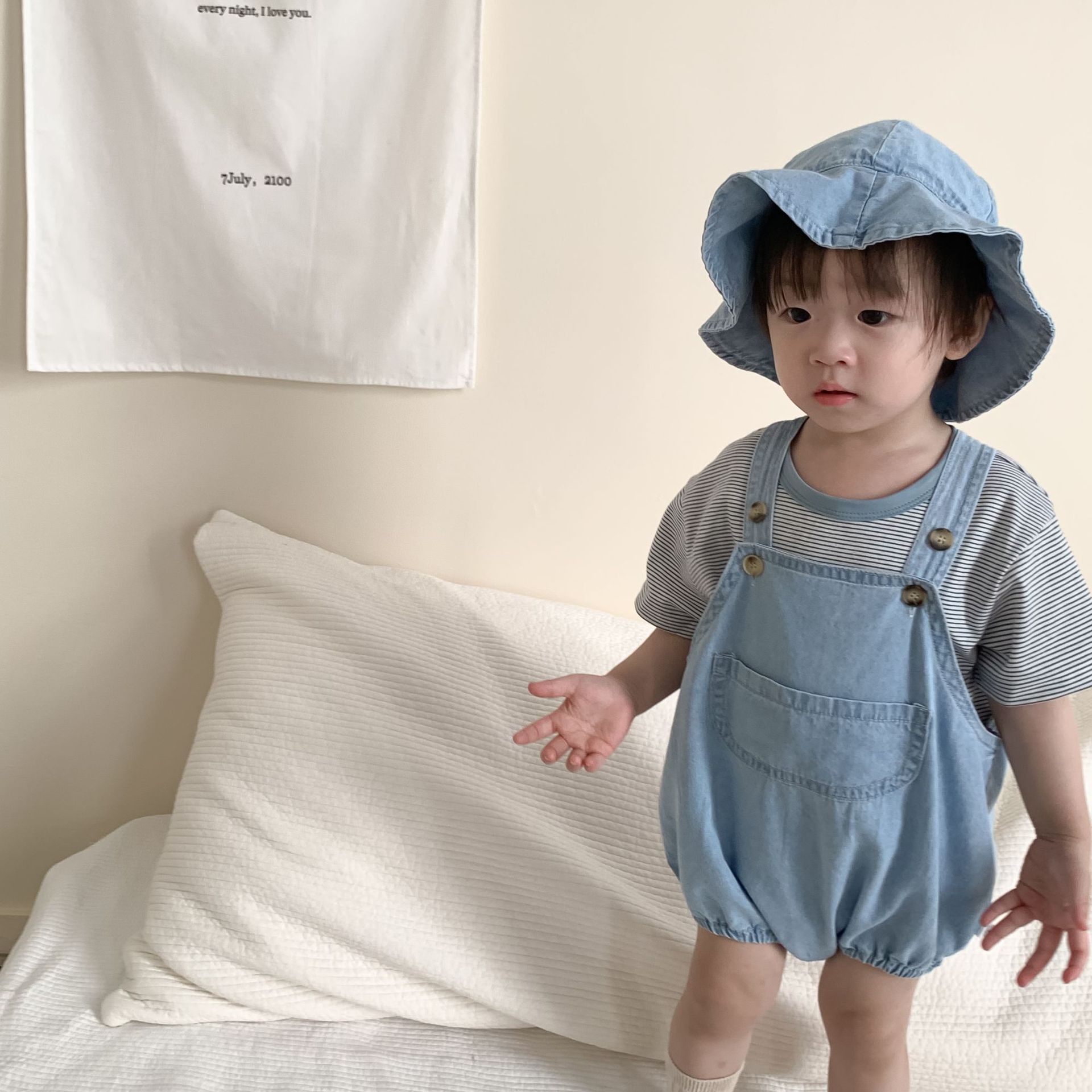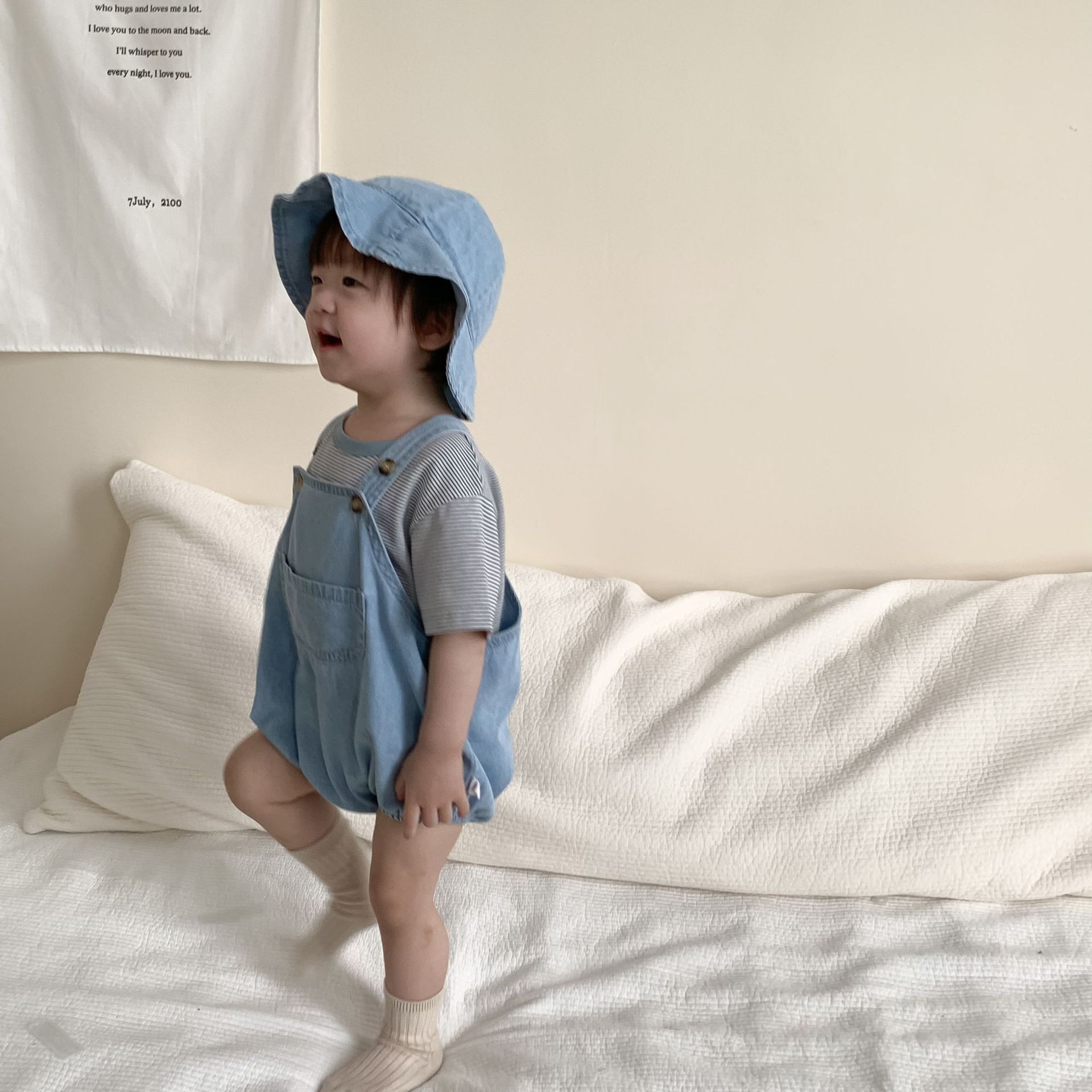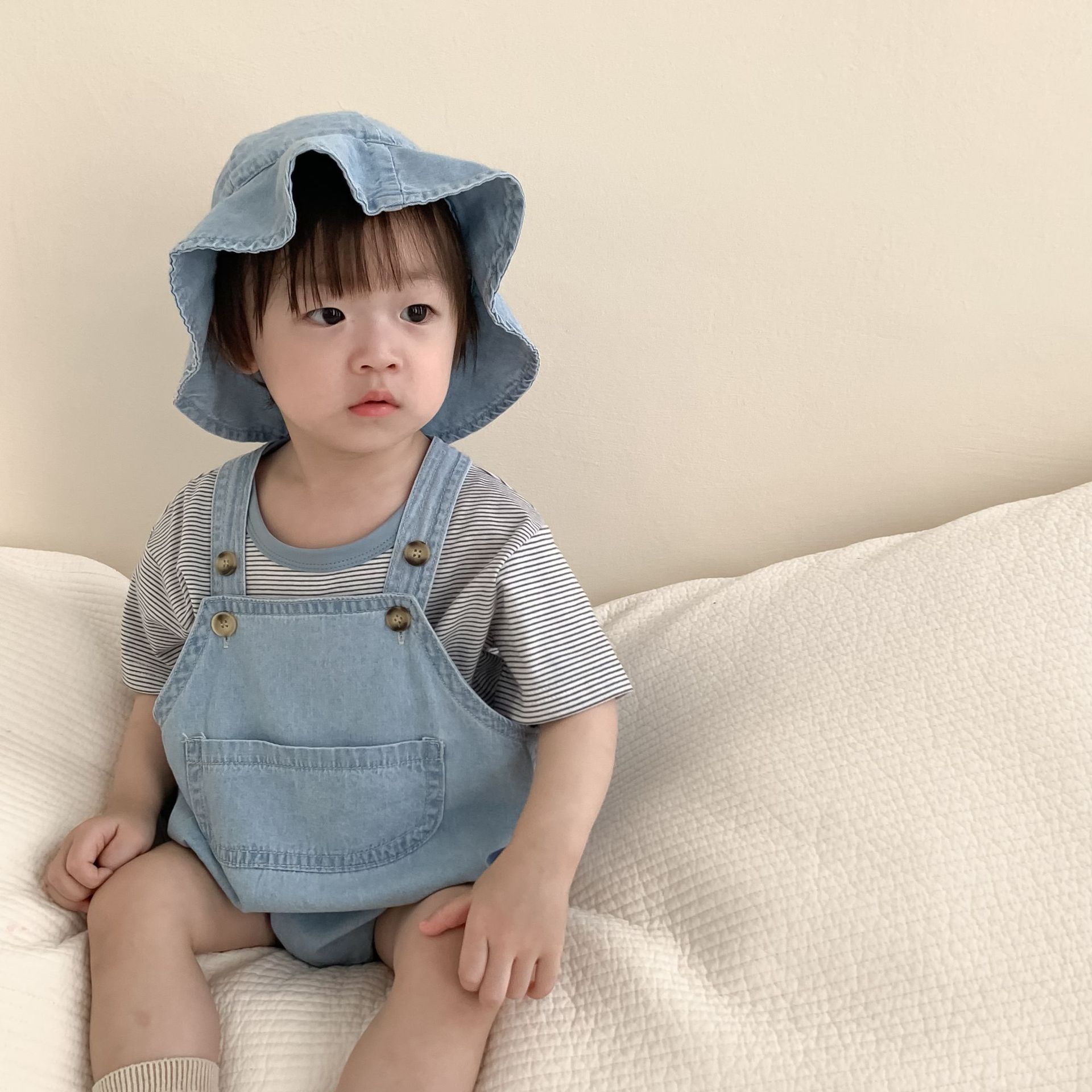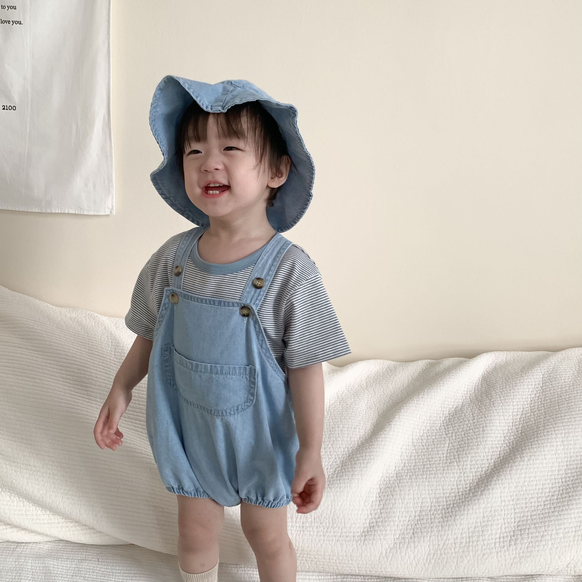 아기 스트라이프 티셔츠와 멜빵바지 세트 한국 스타일 아동복 2025 여름 신상 아기옷 여름 스타일 남아 세트스토어 가기