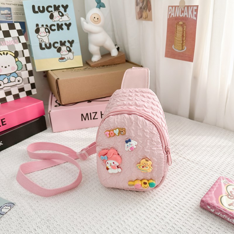2024 새로운 어린이 가슴 가방 소녀 패션 캐주얼 외출 작은 배낭 귀여운 만화 올 매치 한 어깨 동전 지갑
