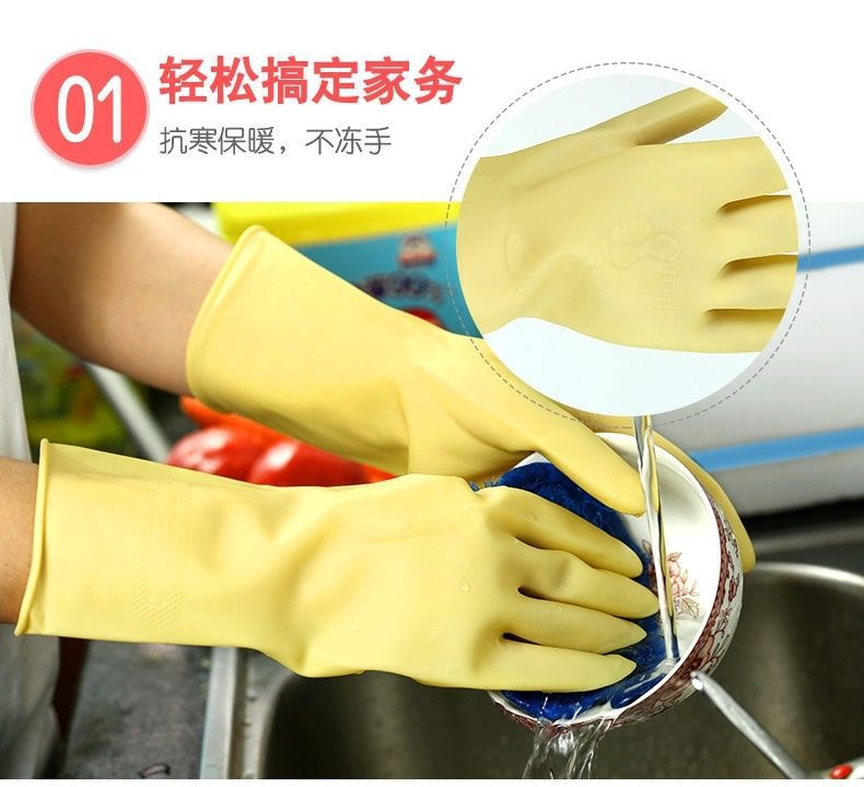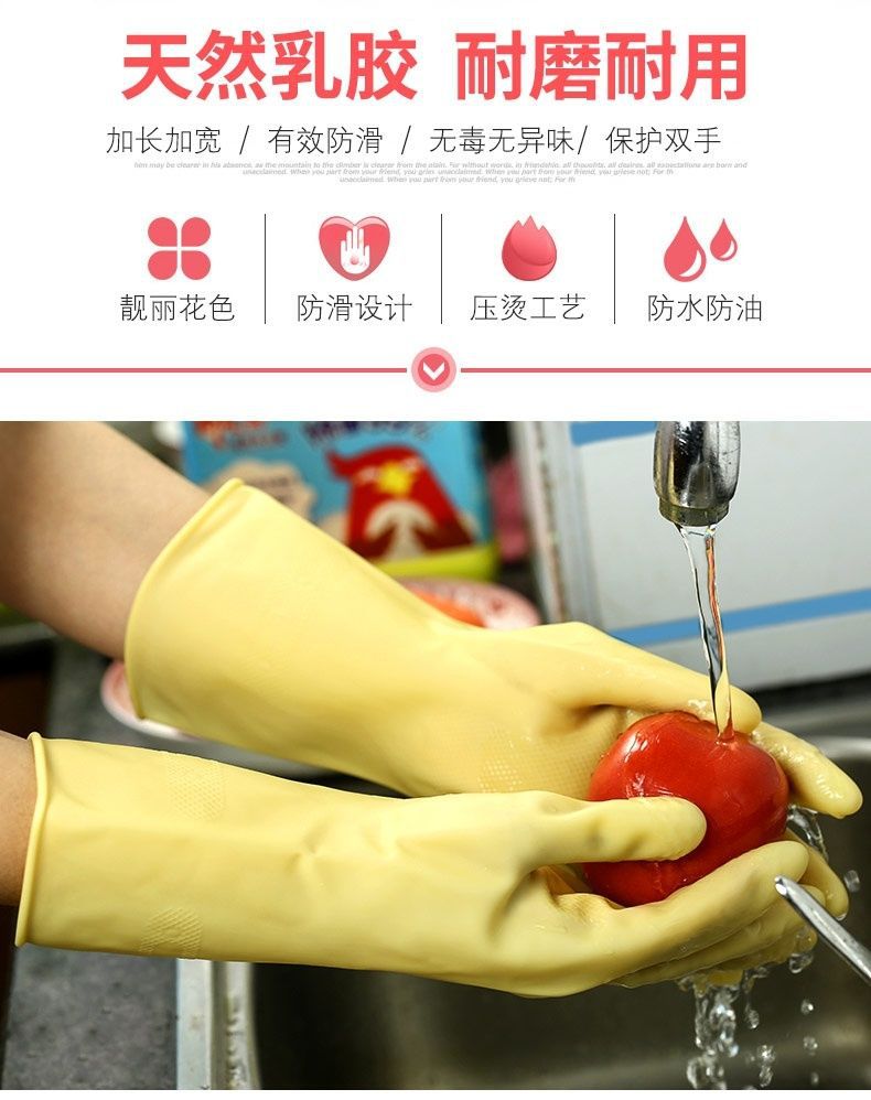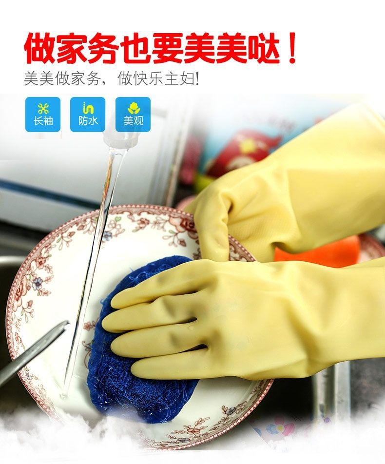 Yuelong A3 두꺼운 라텍스 장갑 가정용 세탁 장갑 의류 세탁 장갑 방수 주방 미끄럼 방지 및 내구성스토어 가기