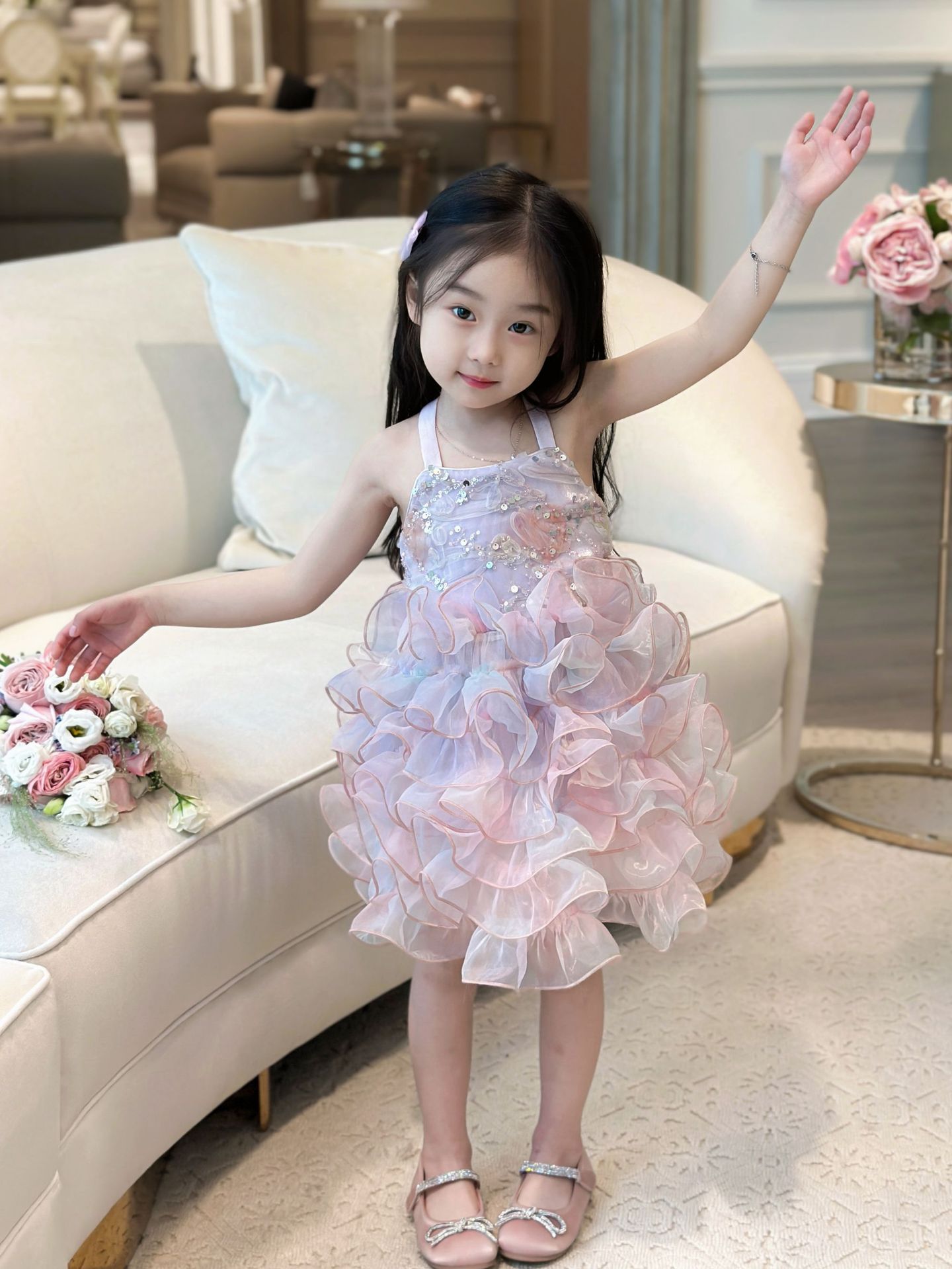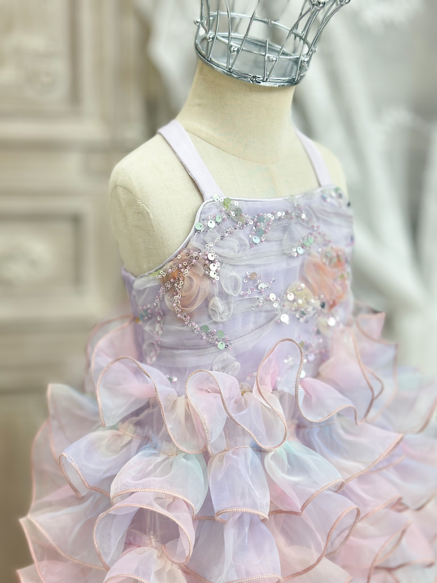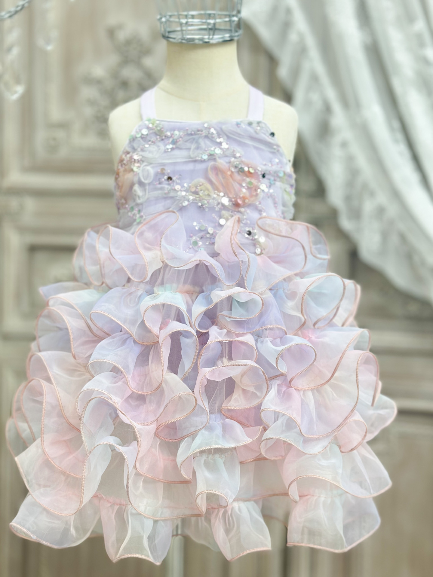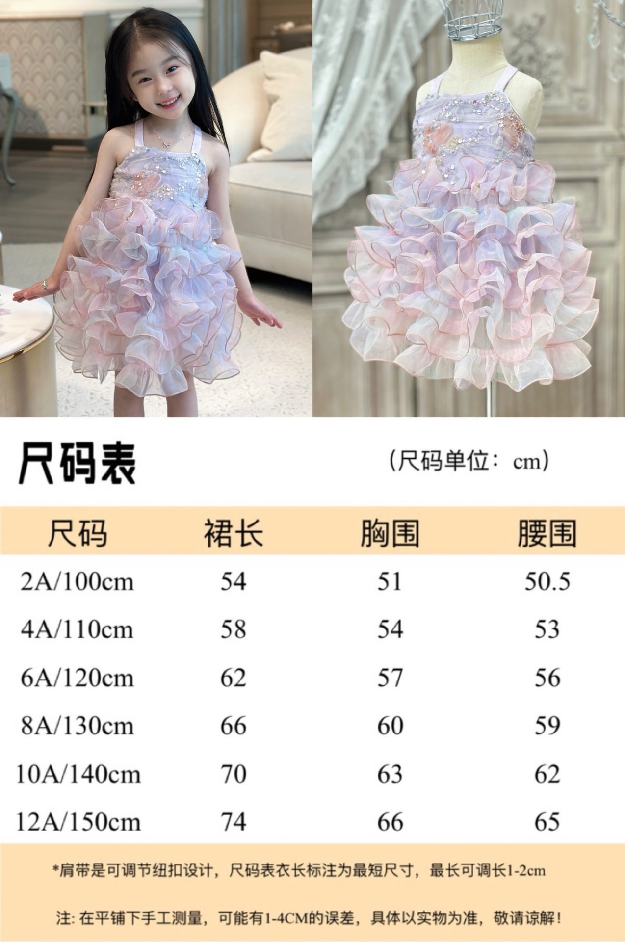 【재고정리, 반품불가】여아용 멜빵 원피스 인어공주 스팽글 러플 케이크 드레스 생일 공연 어린이날
