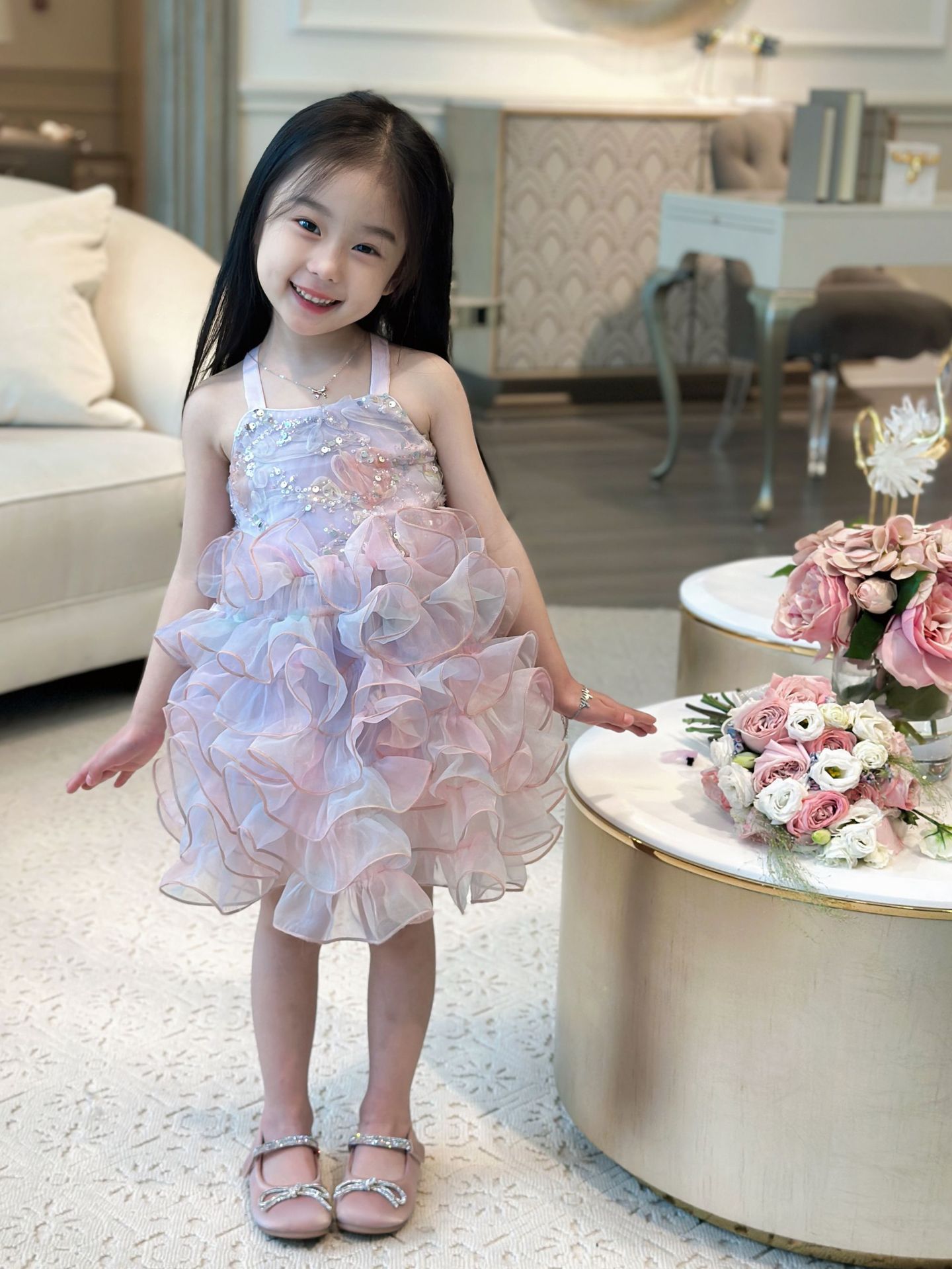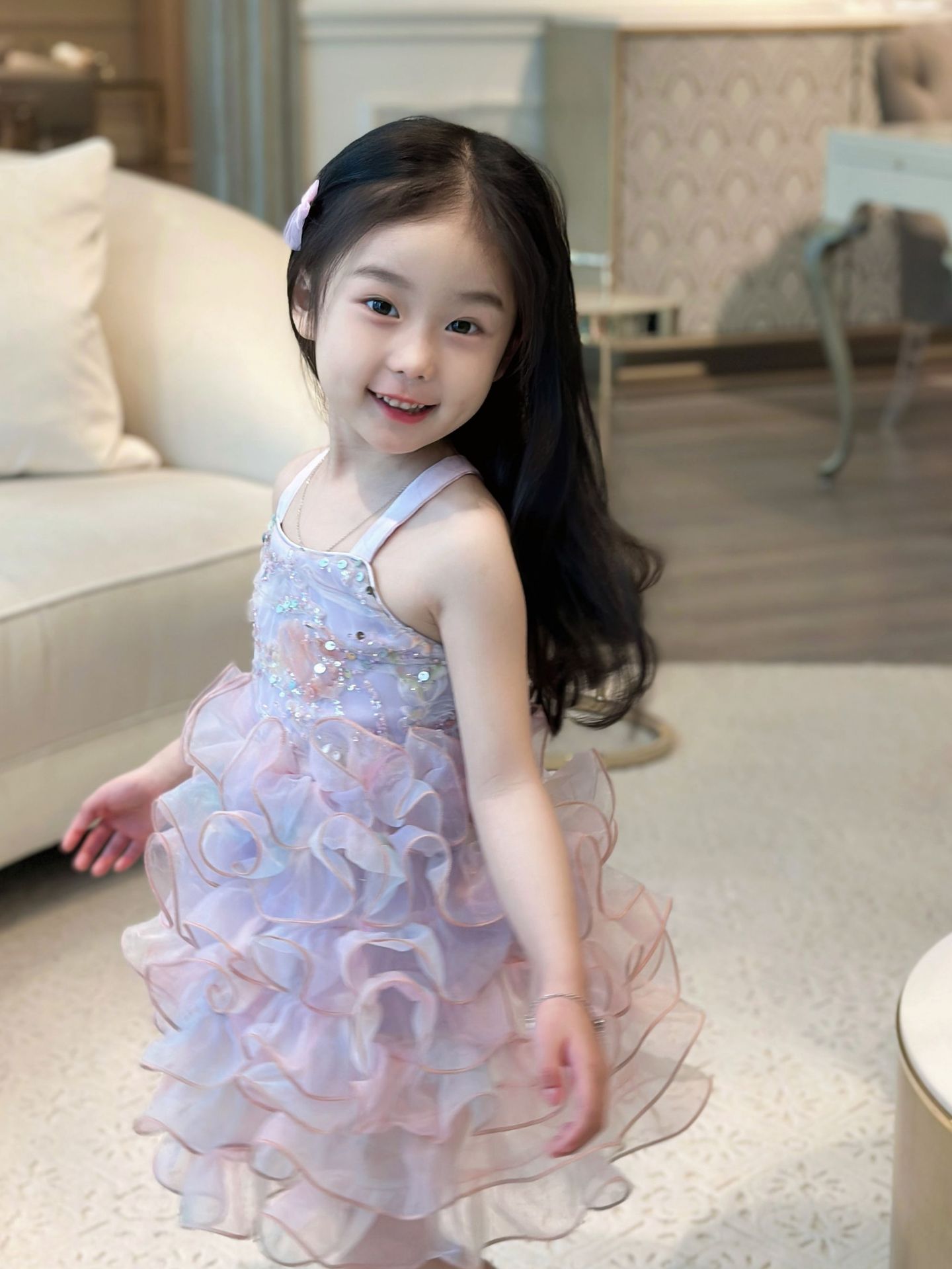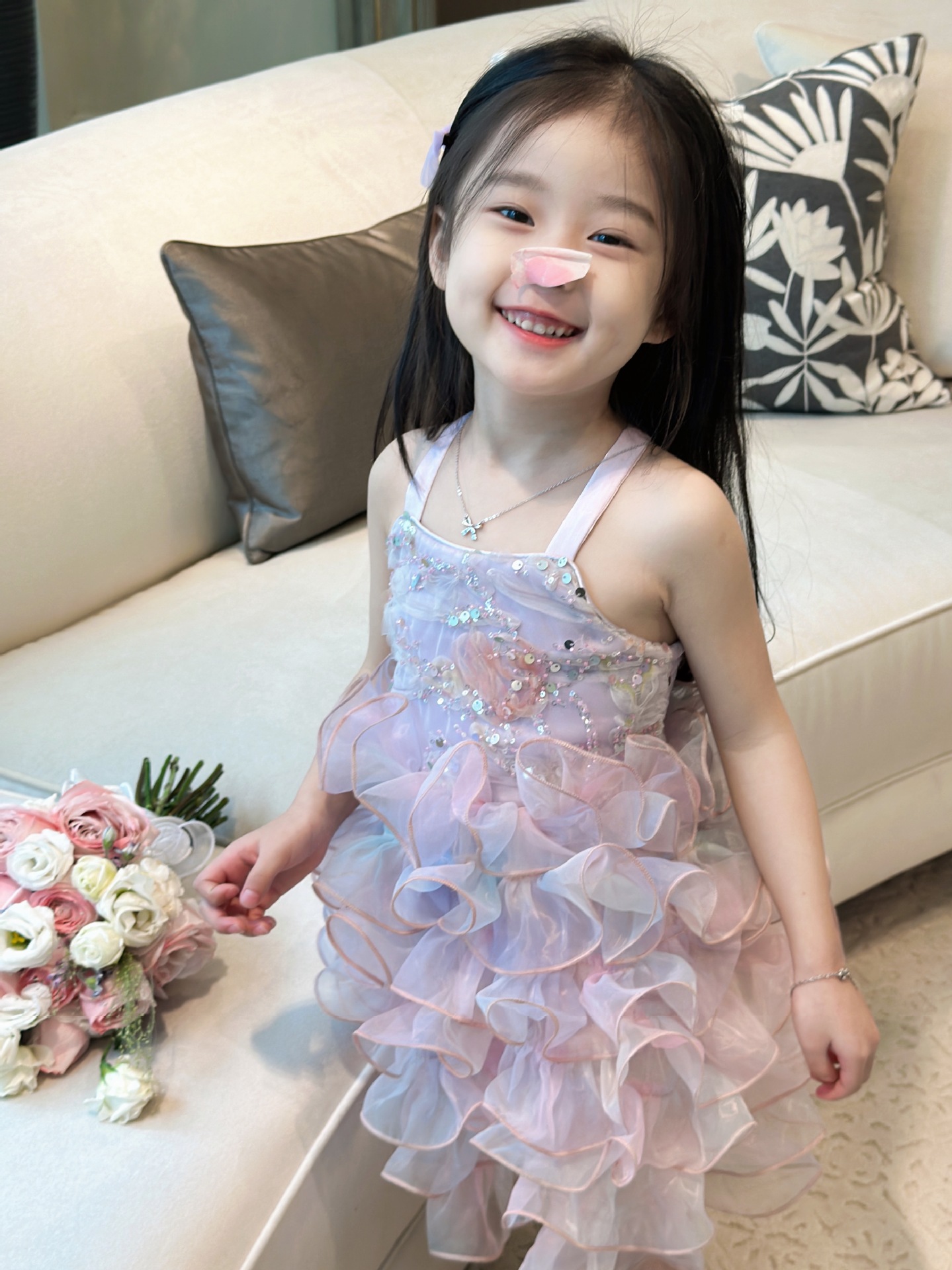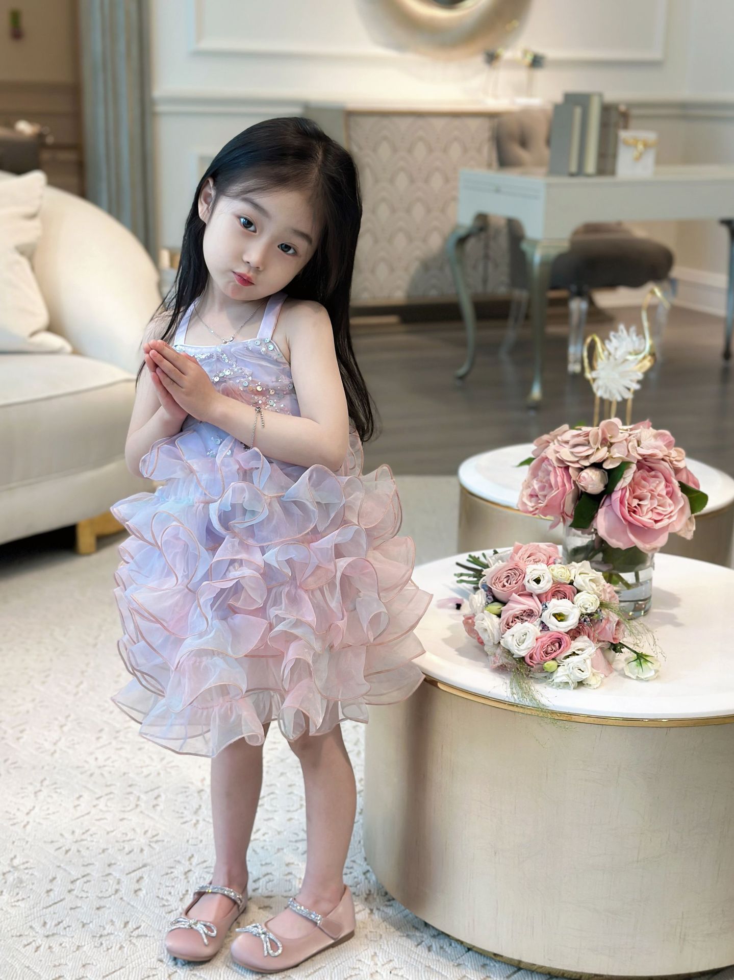【재고정리, 반품불가】여아용 멜빵 원피스 인어공주 스팽글 러플 케이크 드레스 생일 공연 어린이날