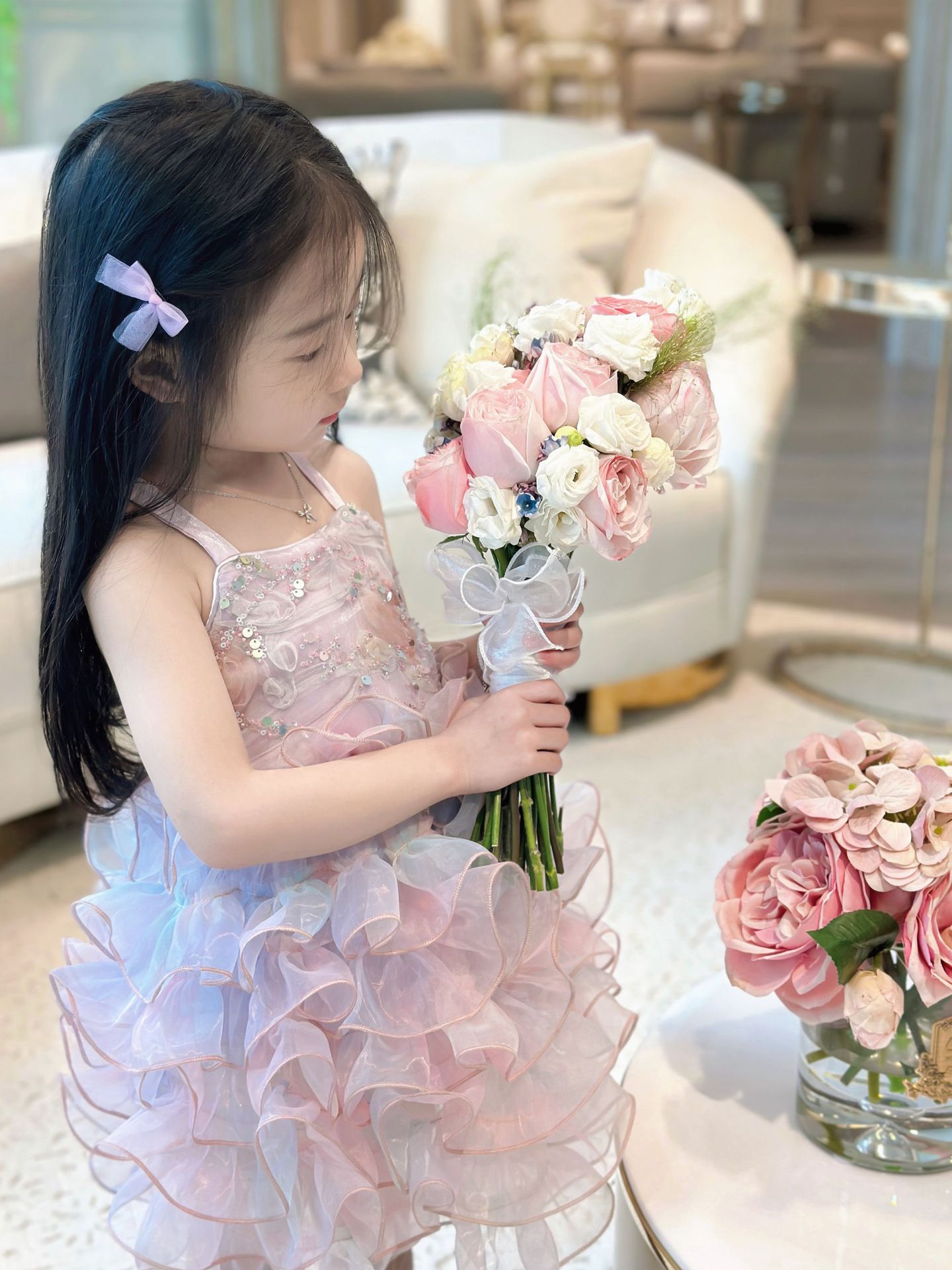 【재고정리, 반품불가】여아용 멜빵 원피스 인어공주 스팽글 러플 케이크 드레스 생일 공연 어린이날스토어 가기