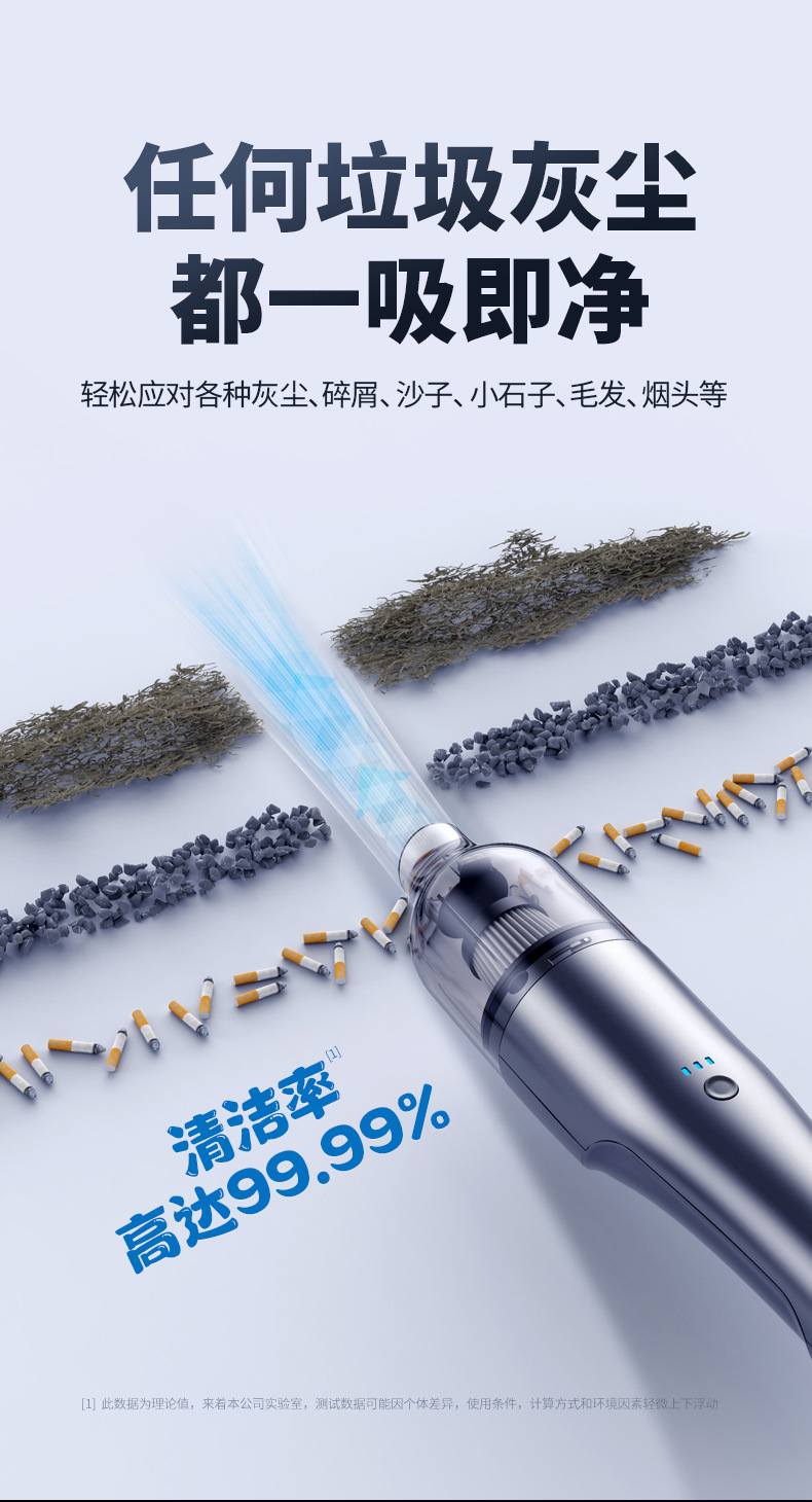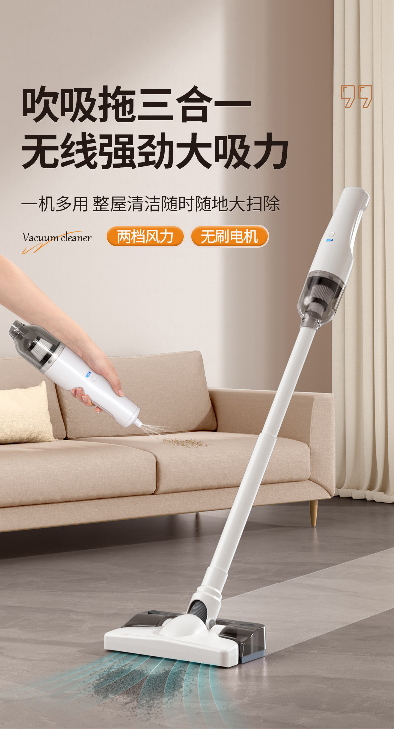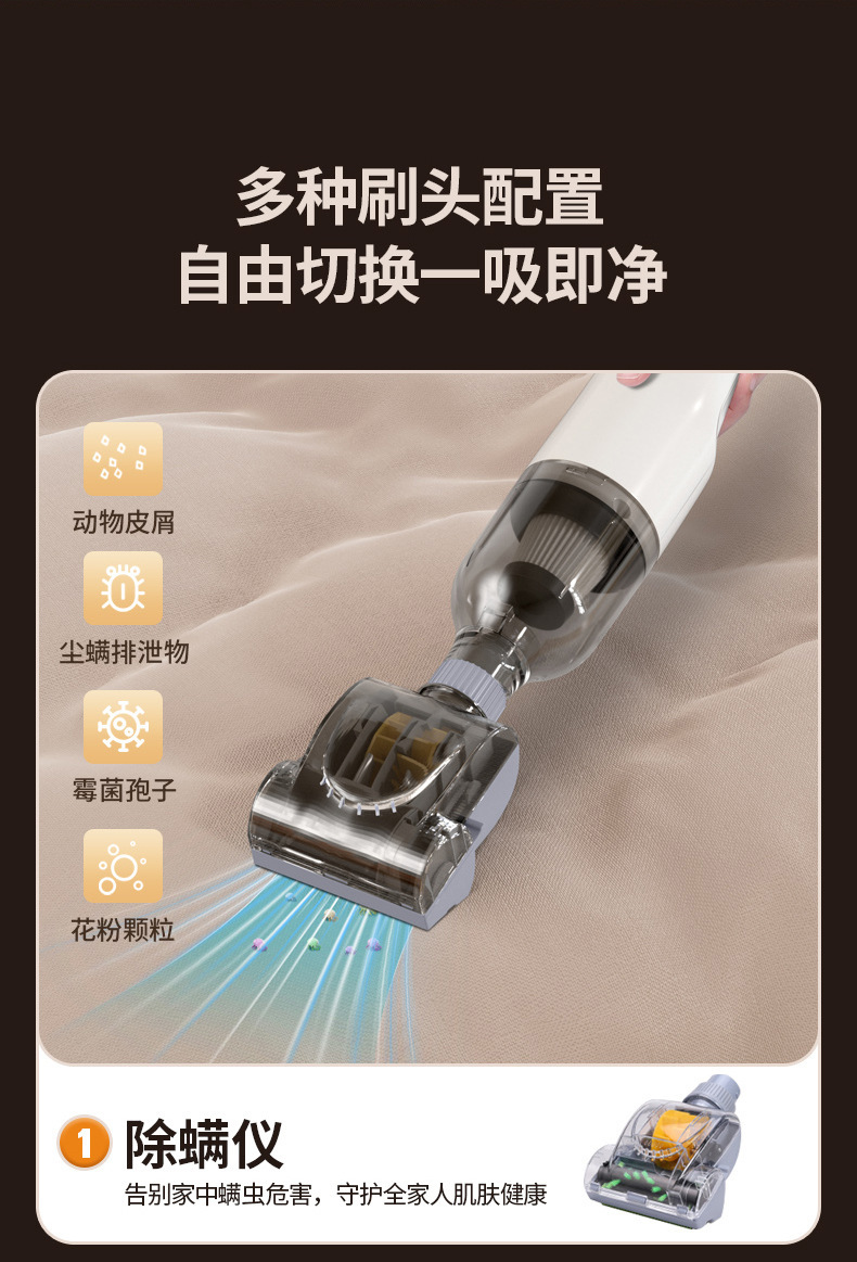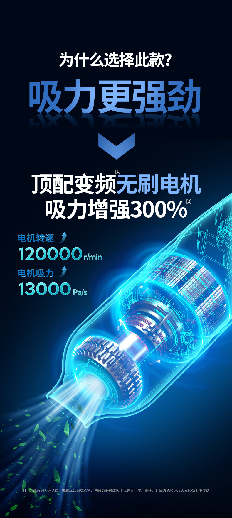 2.搭载高转速直流无刷电机,120W大功率,澎湃强劲吸力。