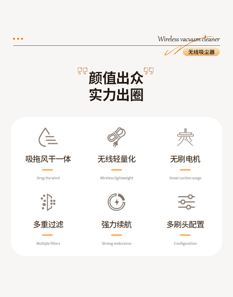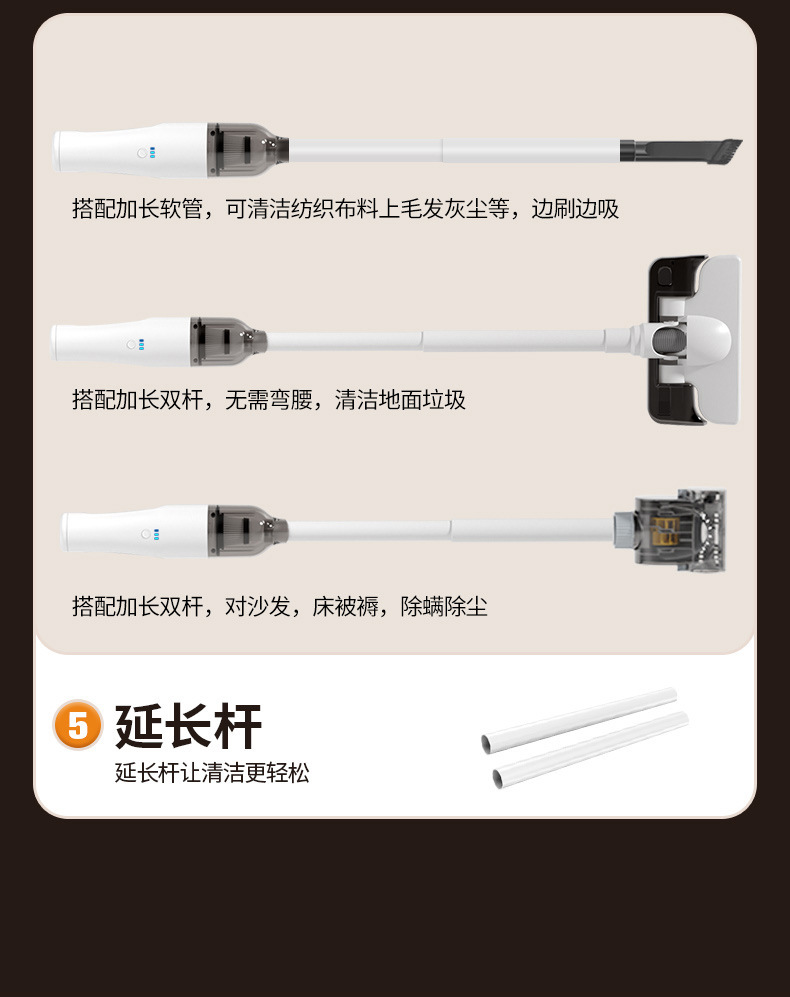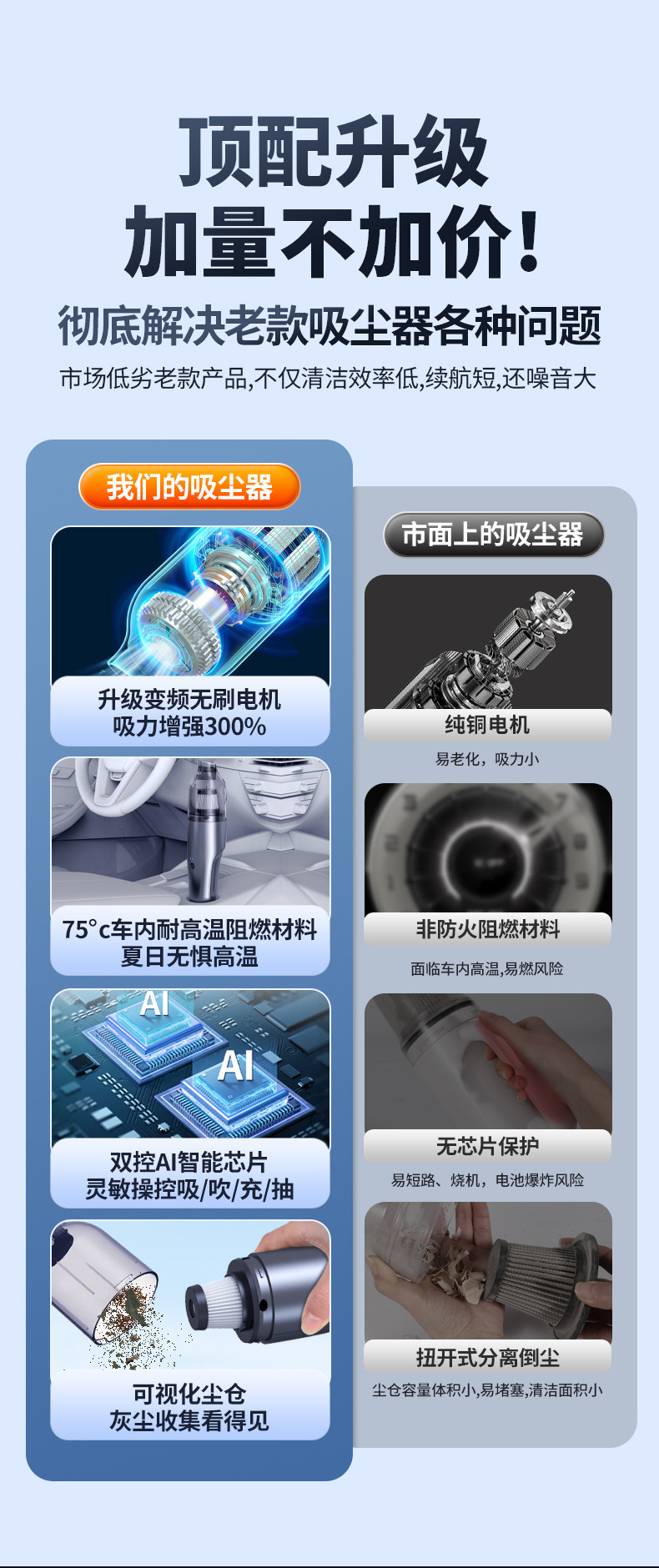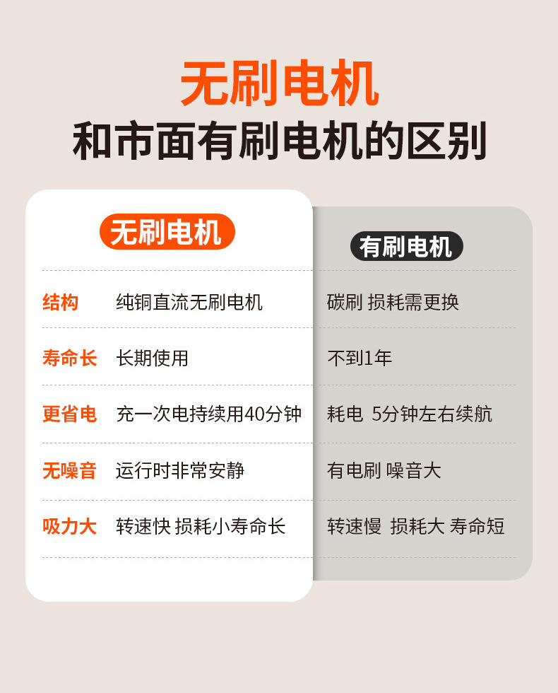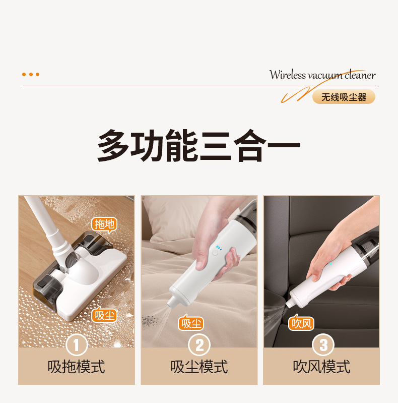 2.搭载高转速直流无刷电机,120W大功率,澎湃强劲吸力。