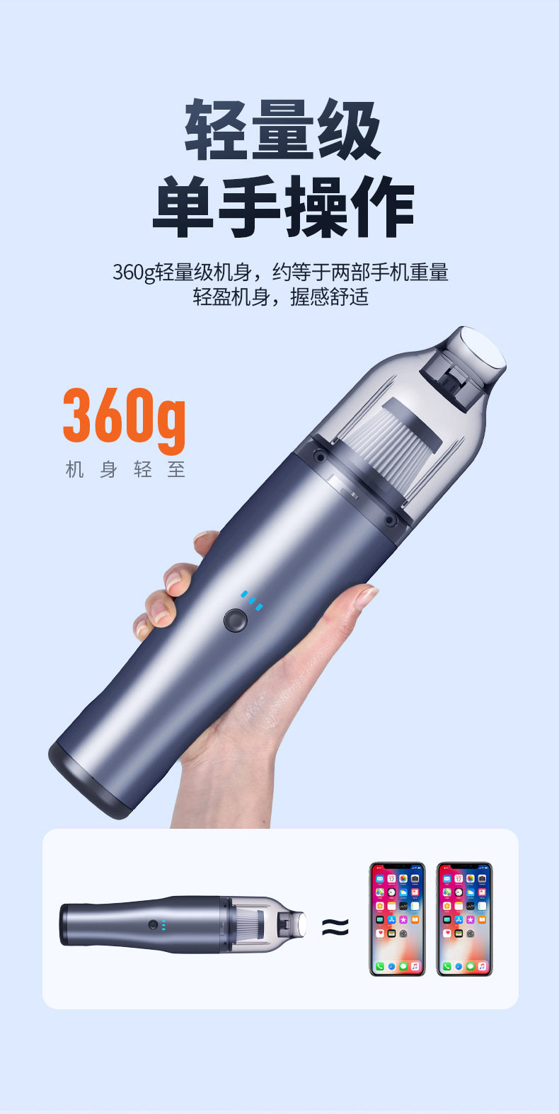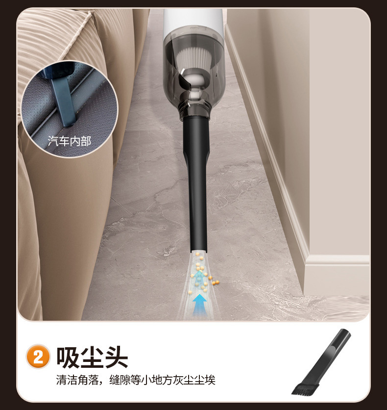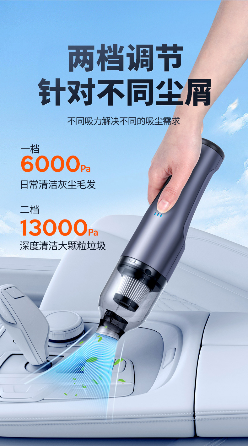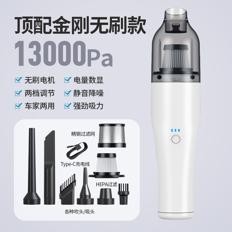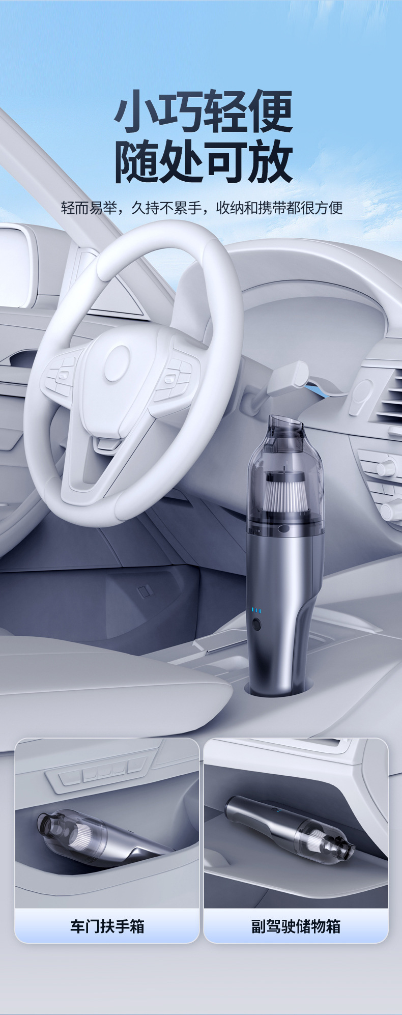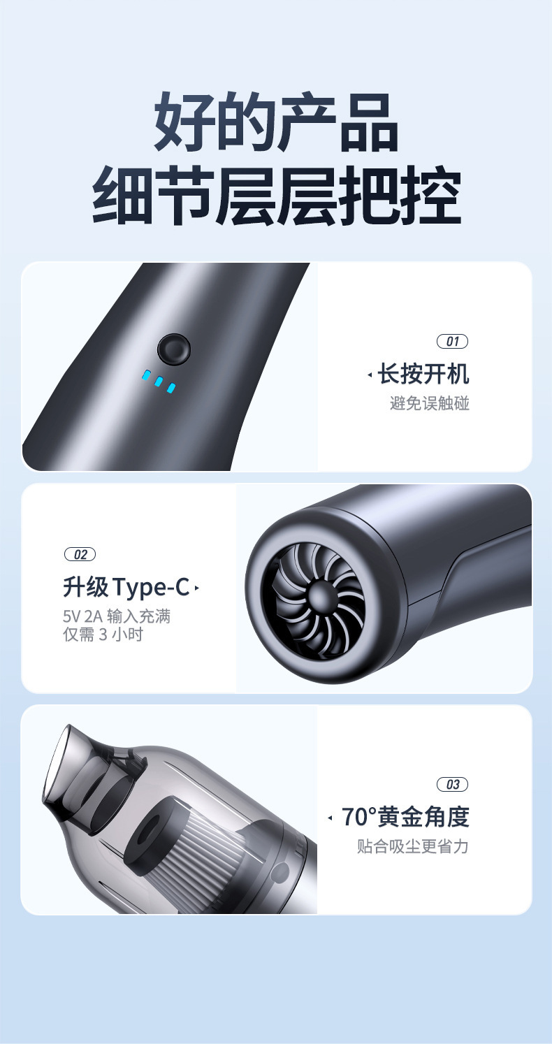 1.无线随手吸车载吸尘器,车家共享,吸抽吹一体式设计。