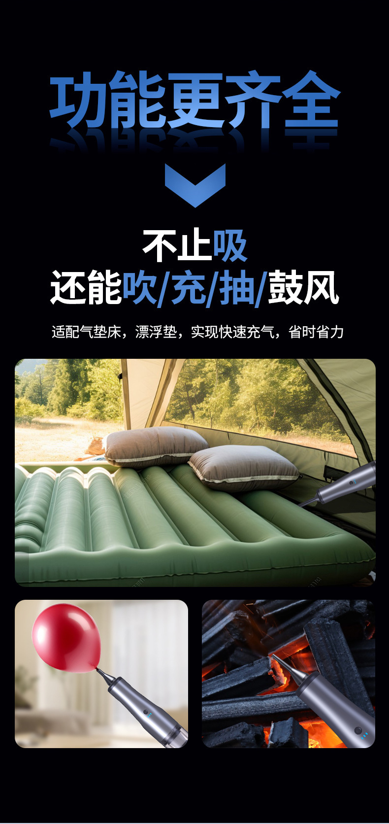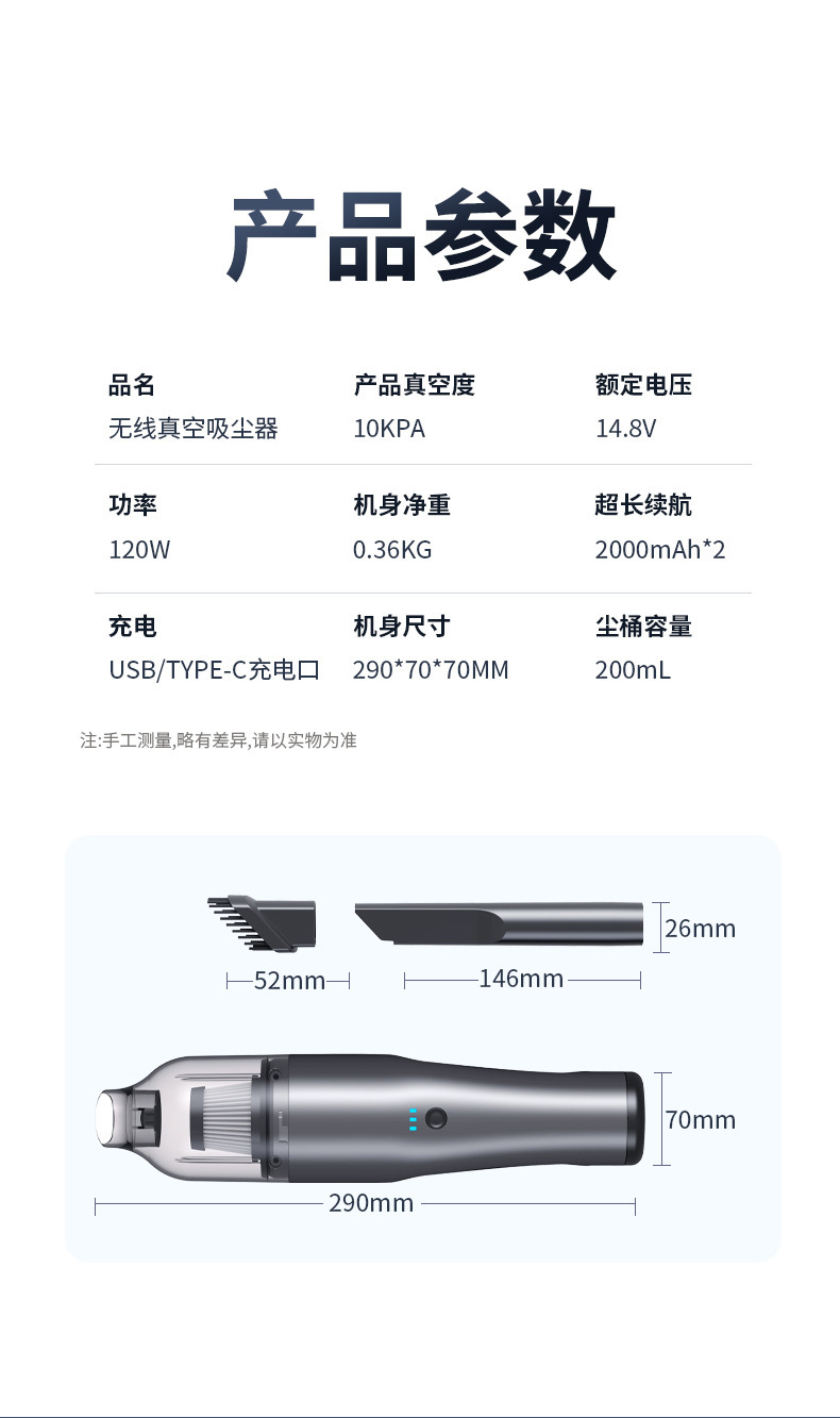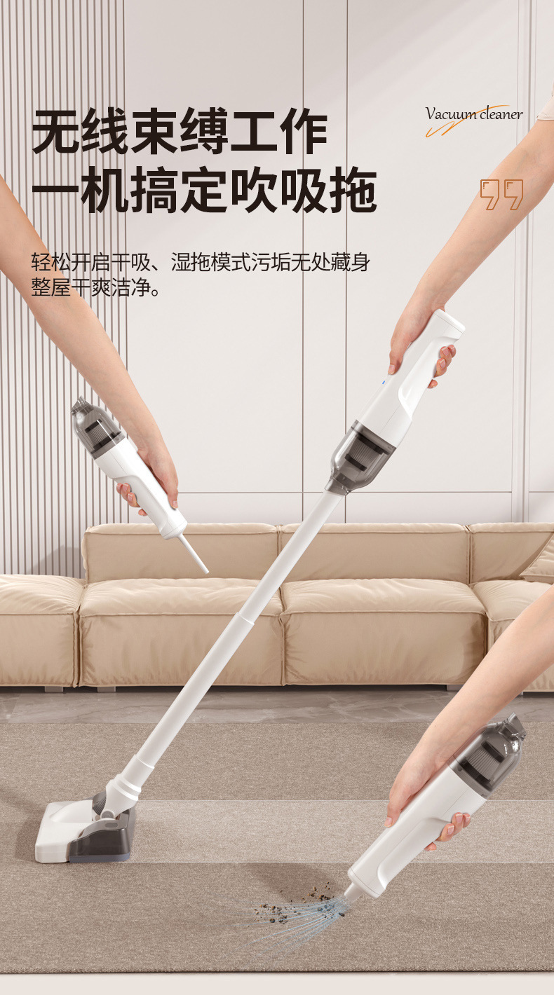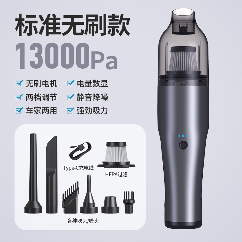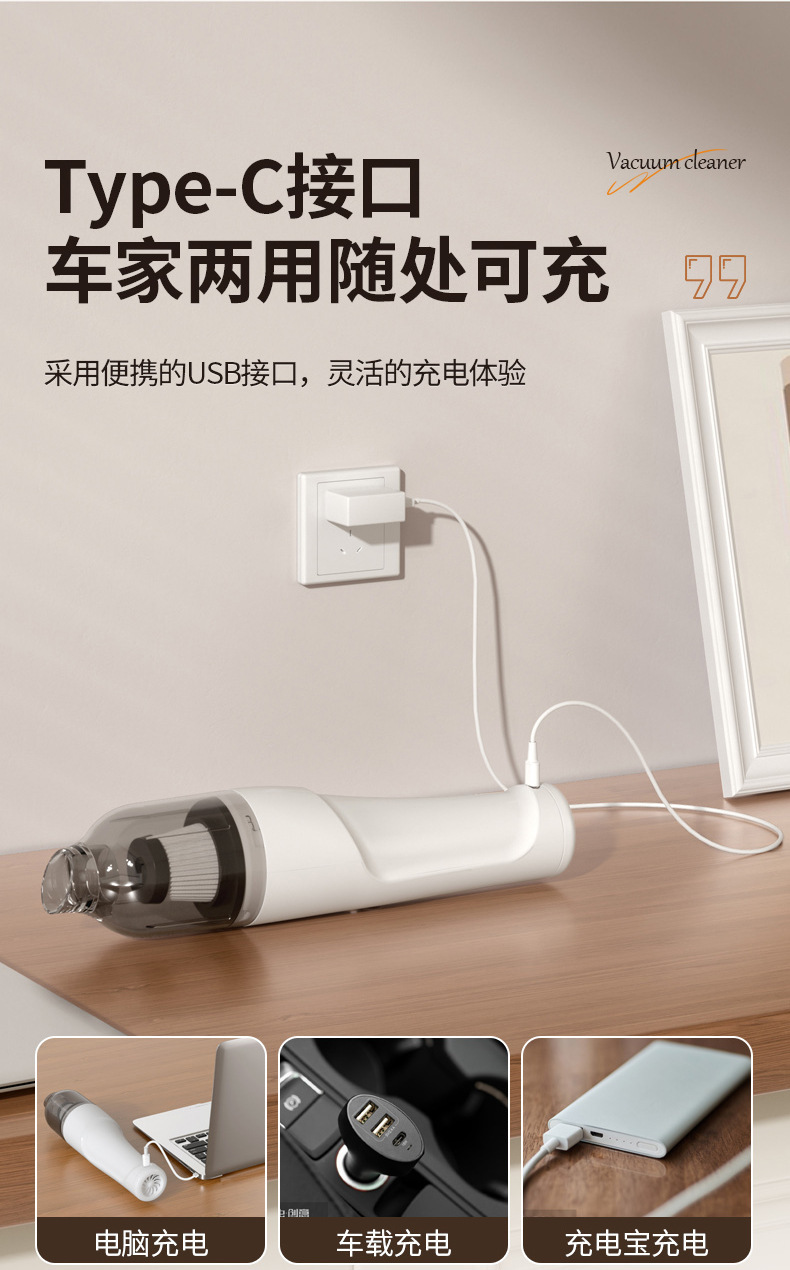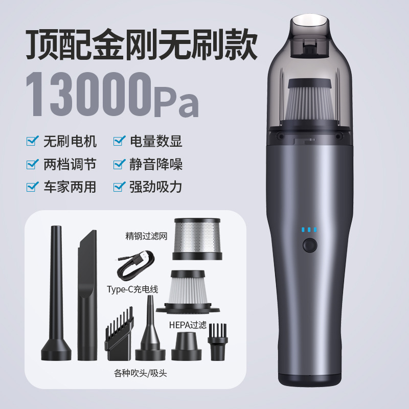 1.无线随手吸车载吸尘器,车家共享,吸抽吹一体式设计。
