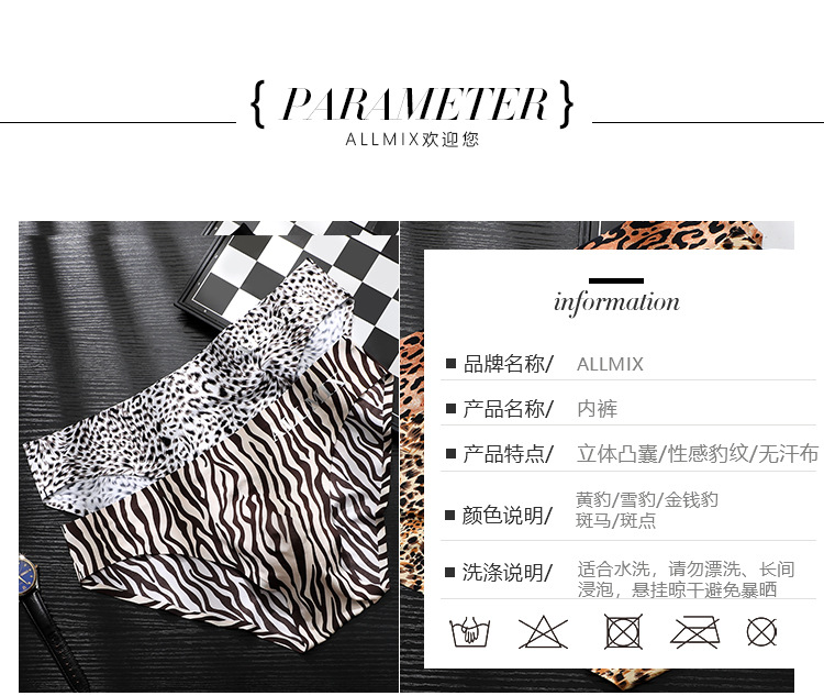 대외 무역 국경 남성 3D Convex 가방 섹시한 가방 달걀 편지 레오파드 무늬 아이스 실크 속옷 브리프 반바지 머리스토어 가기