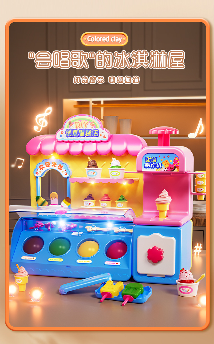 같은 어린이 아이스크림 가게 장난감 컬러 진흙 아이스크림 기계 플라스틱 금형 도구 세트 생일 선물의 소리를 흔들어스토어 가기