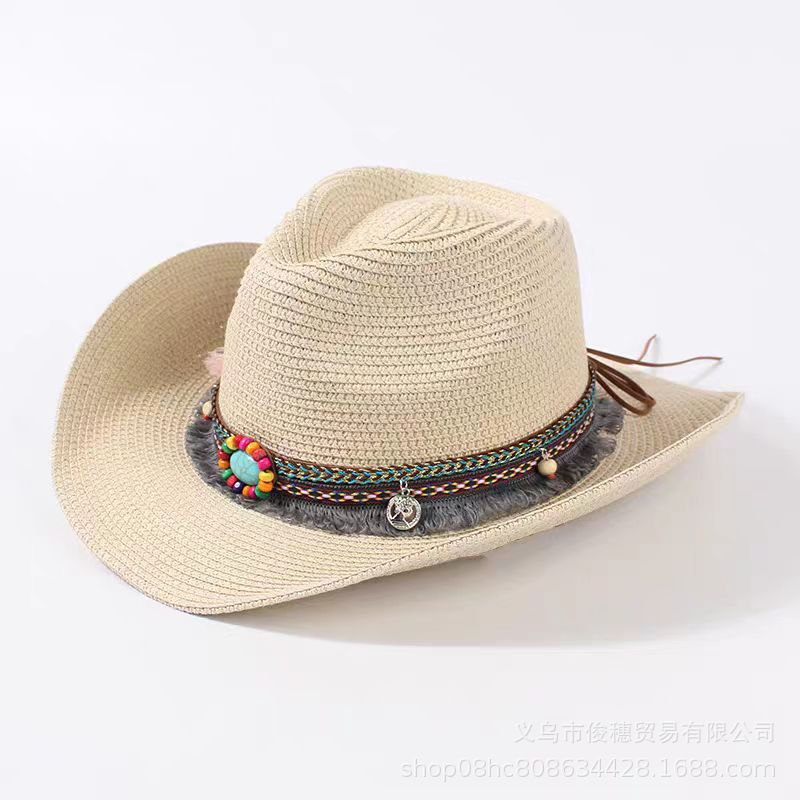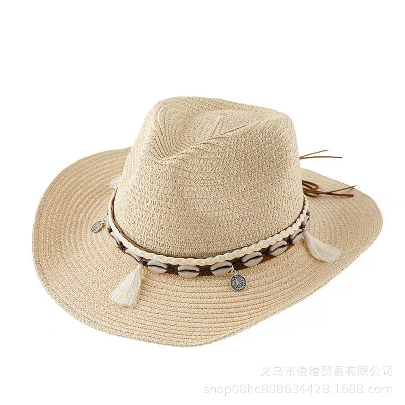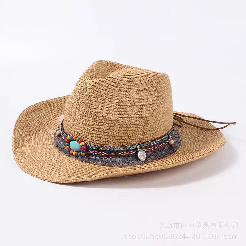 패션 나이트 야외 스타일 웨스턴 빅 남성용 차양 카우보이 등산 타이드 밀짚 모자 여성 모자 브림 유럽과 미국의 햇살 모자