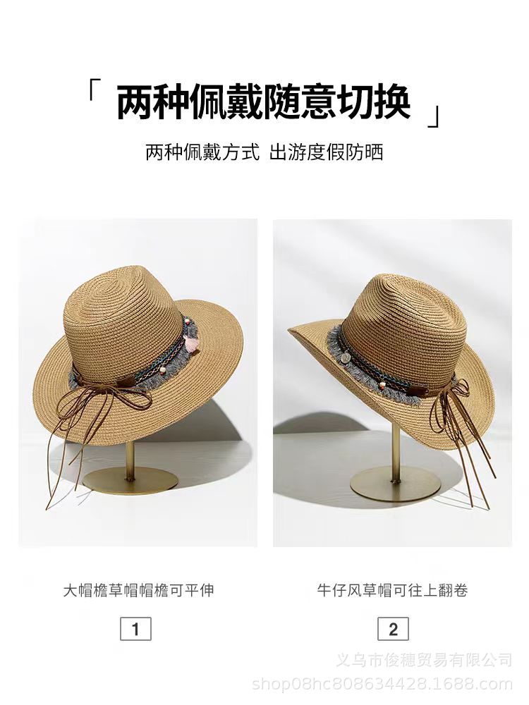 패션 나이트 야외 스타일 웨스턴 빅 남성용 차양 카우보이 등산 타이드 밀짚 모자 여성 모자 브림 유럽과 미국의 햇살 모자스토어 가기