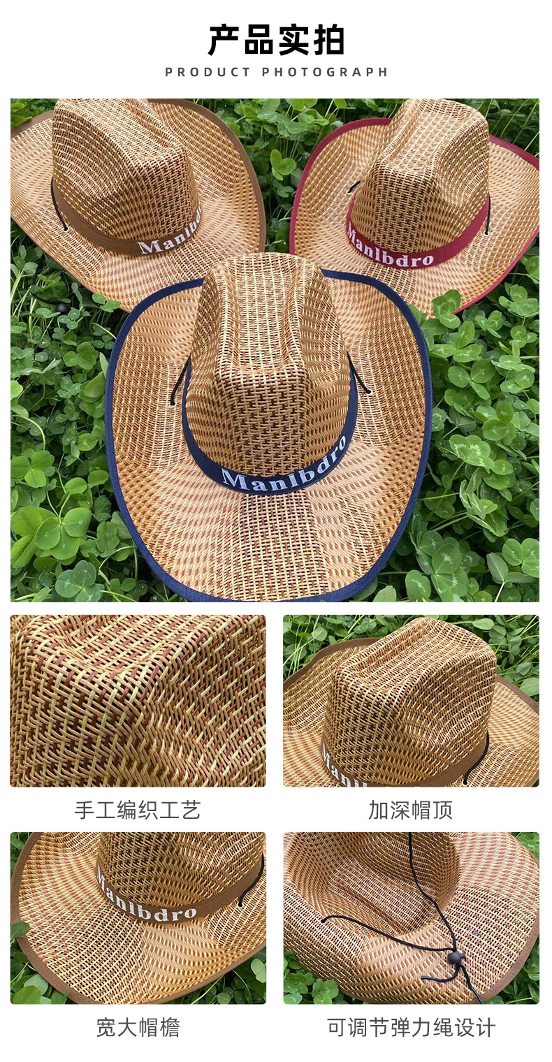• 카우보이 밀짚 모자 3 색 무작위 머리