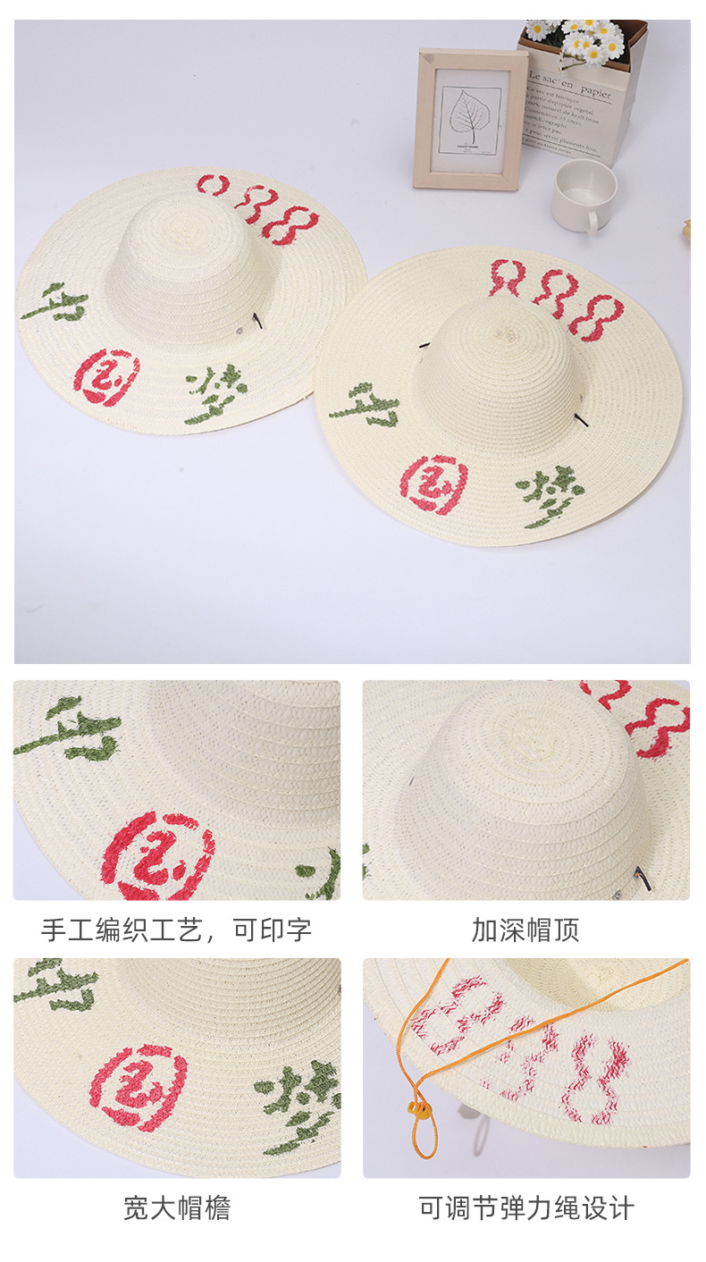 여름 남성과 여성의 자외선 차단제 모자 농산물 밀짚 모자 도매 인쇄 가능한 노동 보호 용품 제조업체 차양 대형 처마 짠 모자