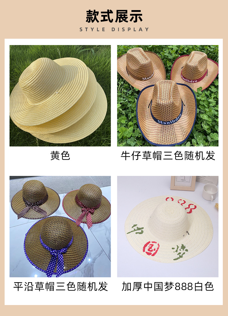 여름 남성과 여성의 자외선 차단제 모자 농산물 밀짚 모자 도매 인쇄 가능한 노동 보호 용품 제조업체 차양 대형 처마 짠 모자스토어 가기