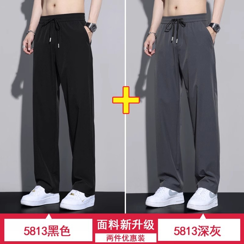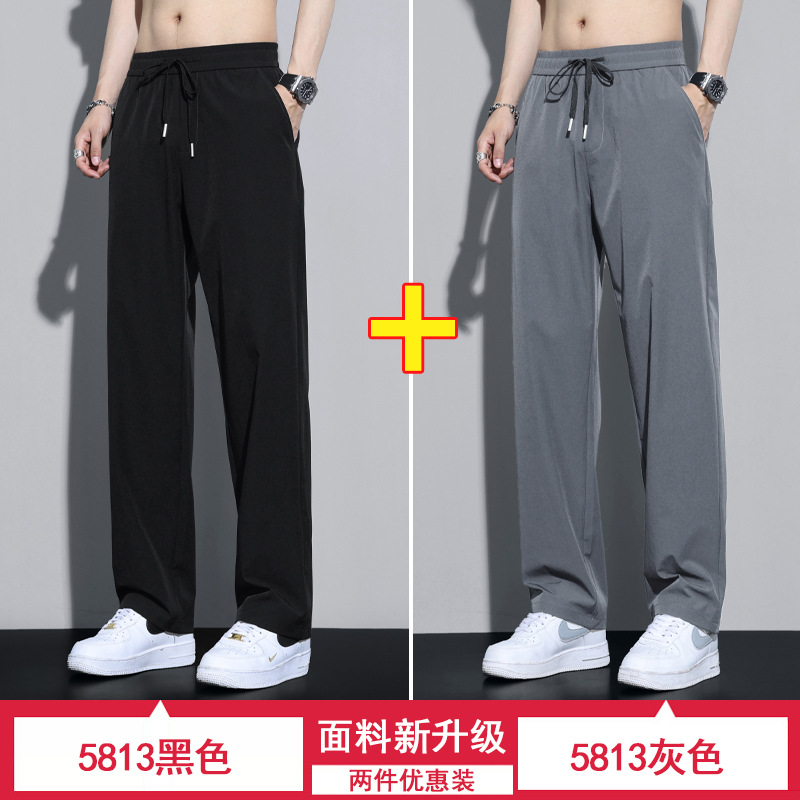 NASA 아이스 실크 바지 남자 여름 얇은 느슨한 스트레이트 바지 빠른 건조 스포츠 레저 여름