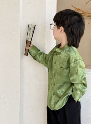 남아용 중국풍 정장 2025 봄 가을 신상 중국풍 레트로 블랙 그린 당복 어린이 정장 도매스토어 가기