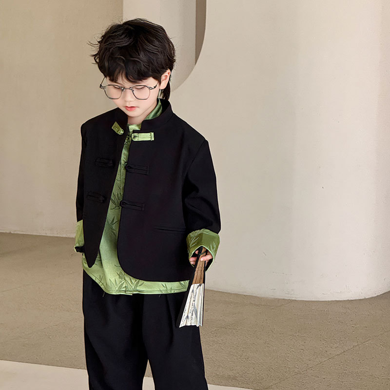 남아용 중국풍 정장 2025 봄 가을 신상 중국풍 레트로 블랙 그린 당복 어린이 정장 도매